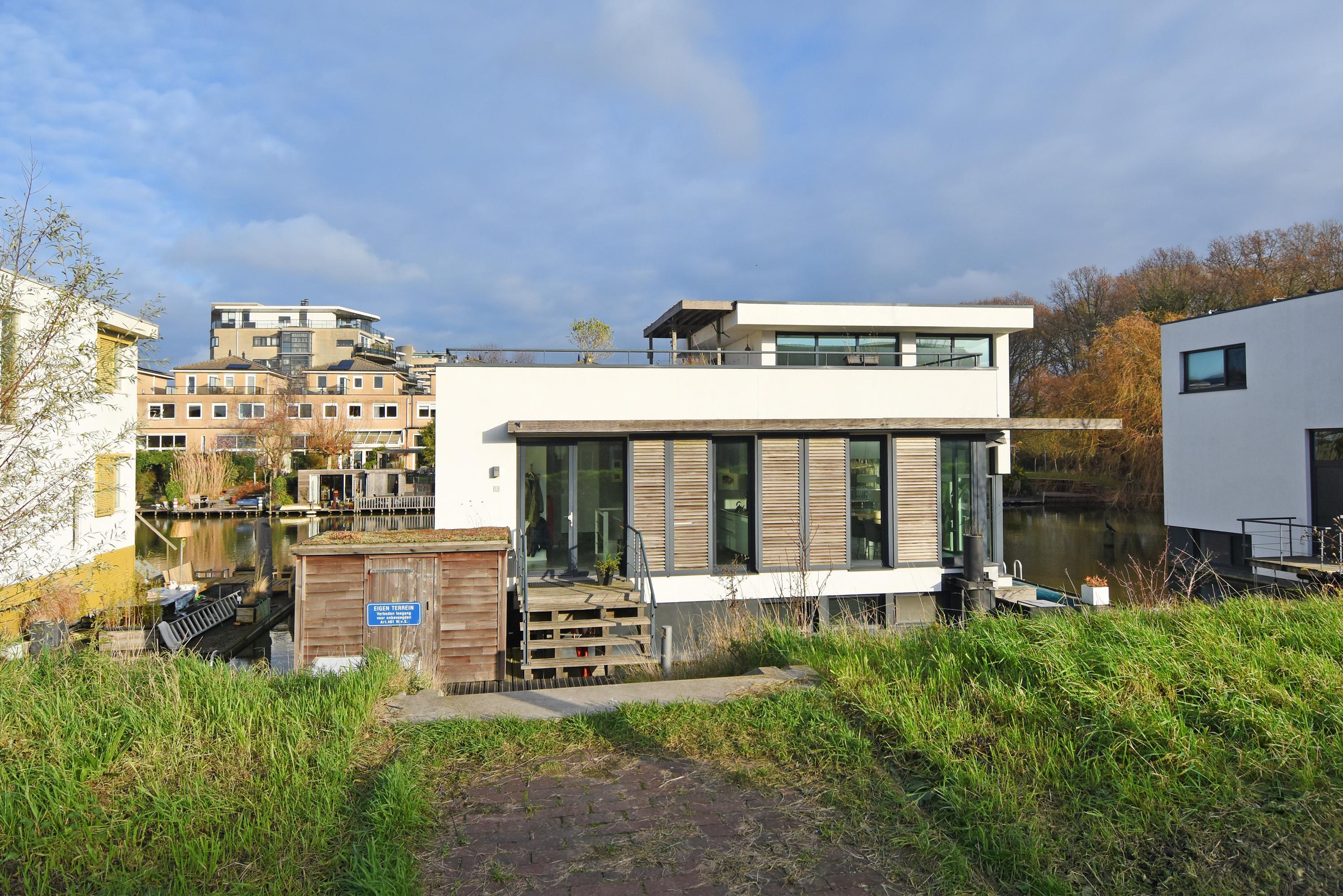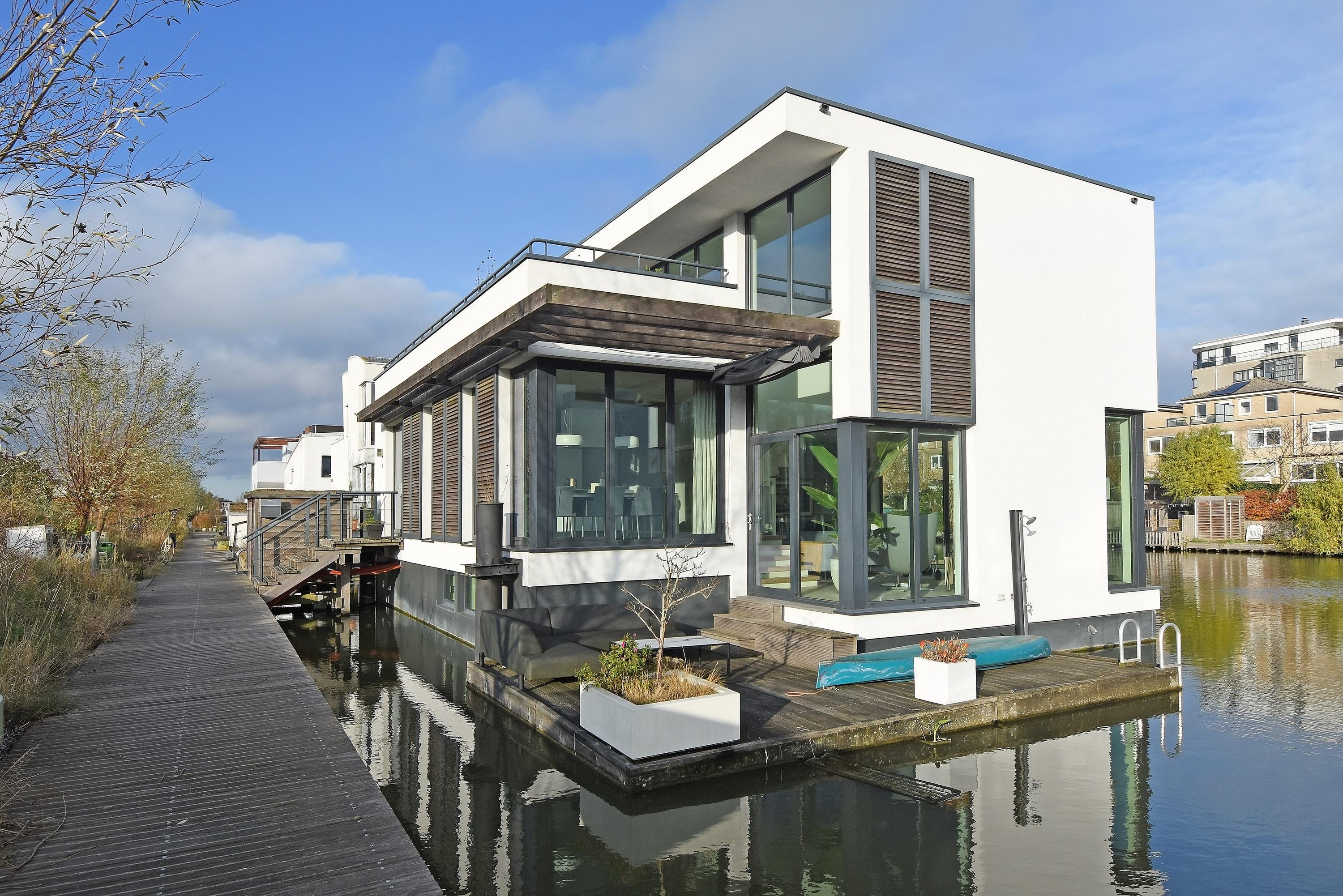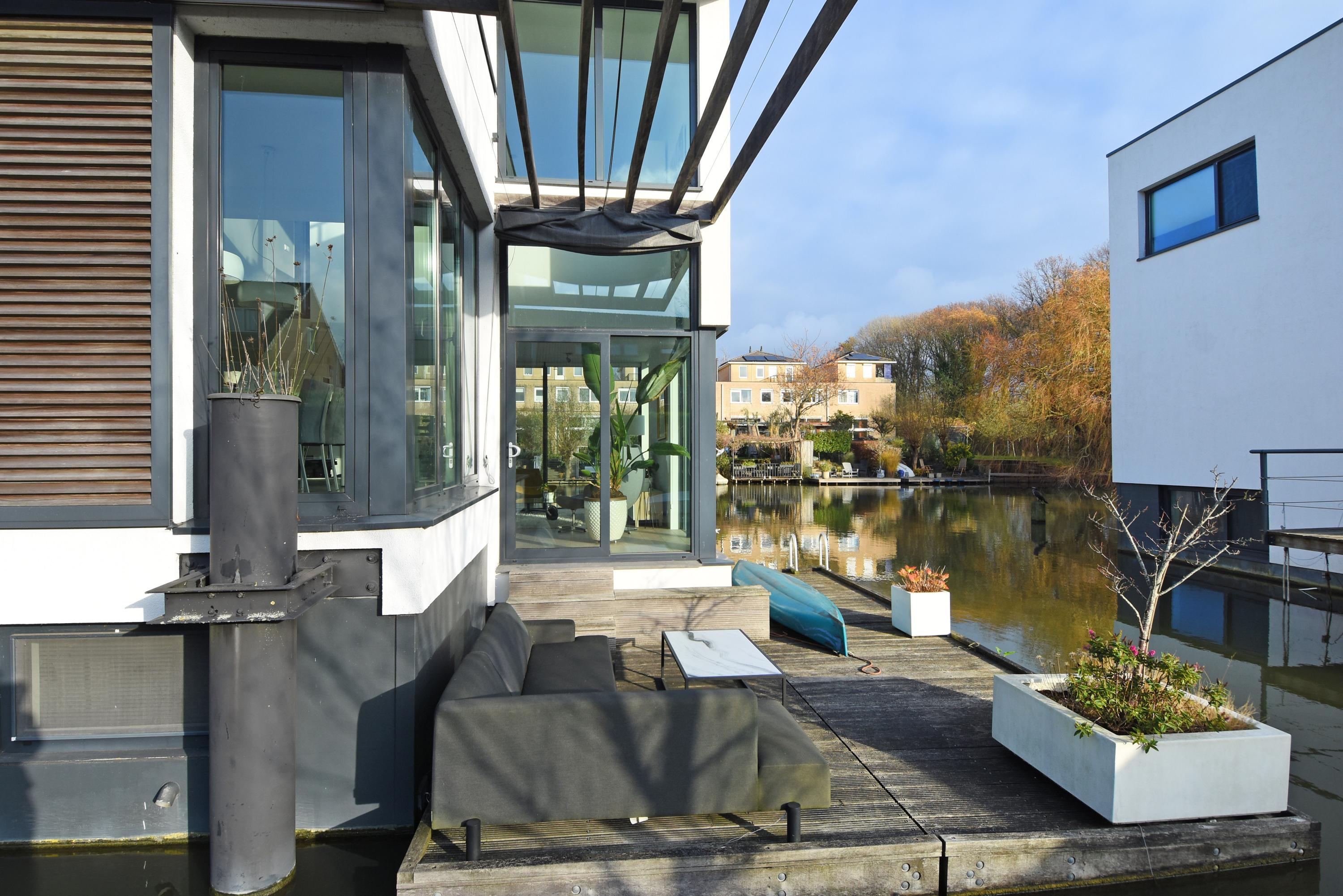 This charming, spacious and energy-efficient floating home is situated in a special location on the water, surrounded by peace and greenery. The property has a luxurious appearance, is well maintained and very practically laid out.