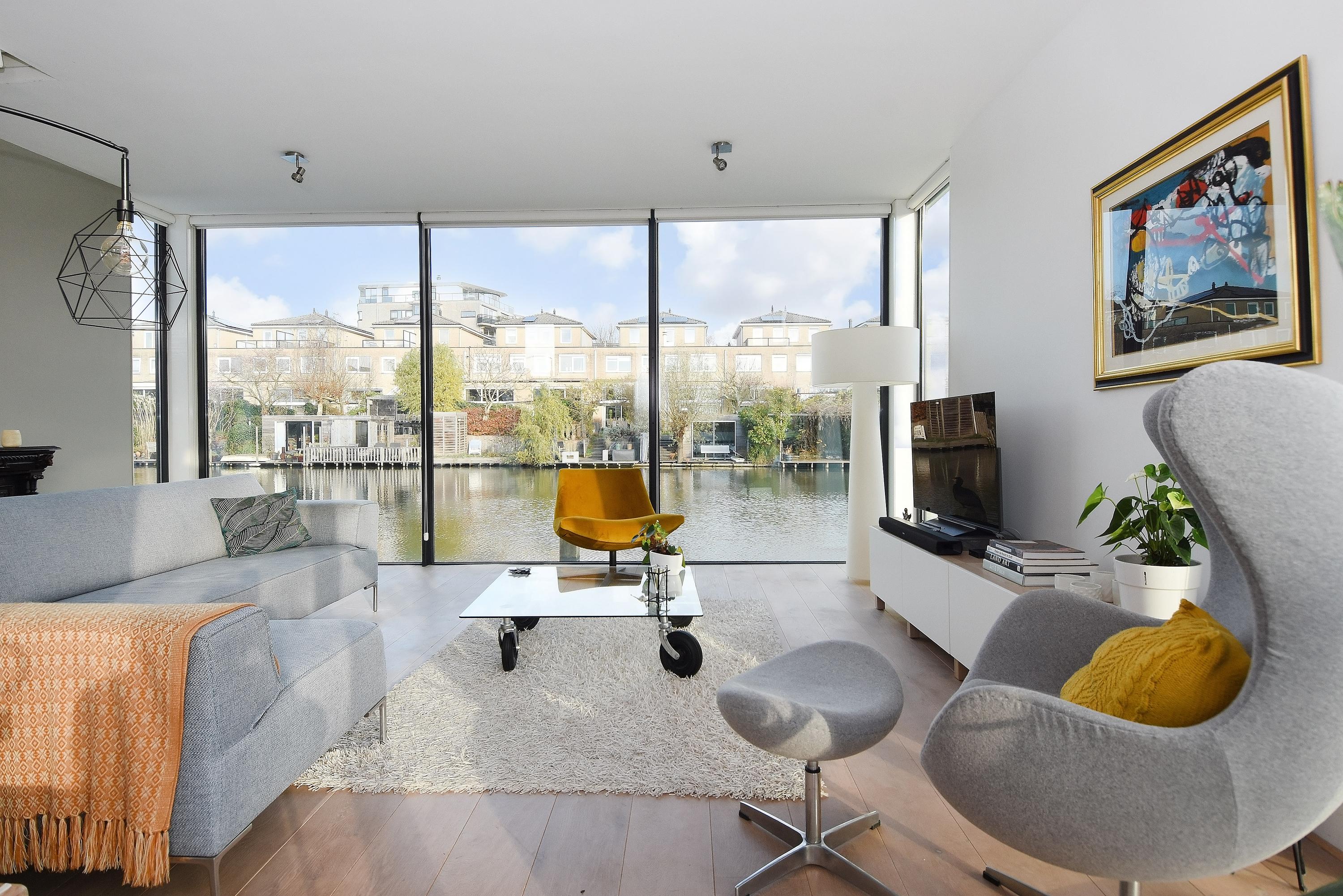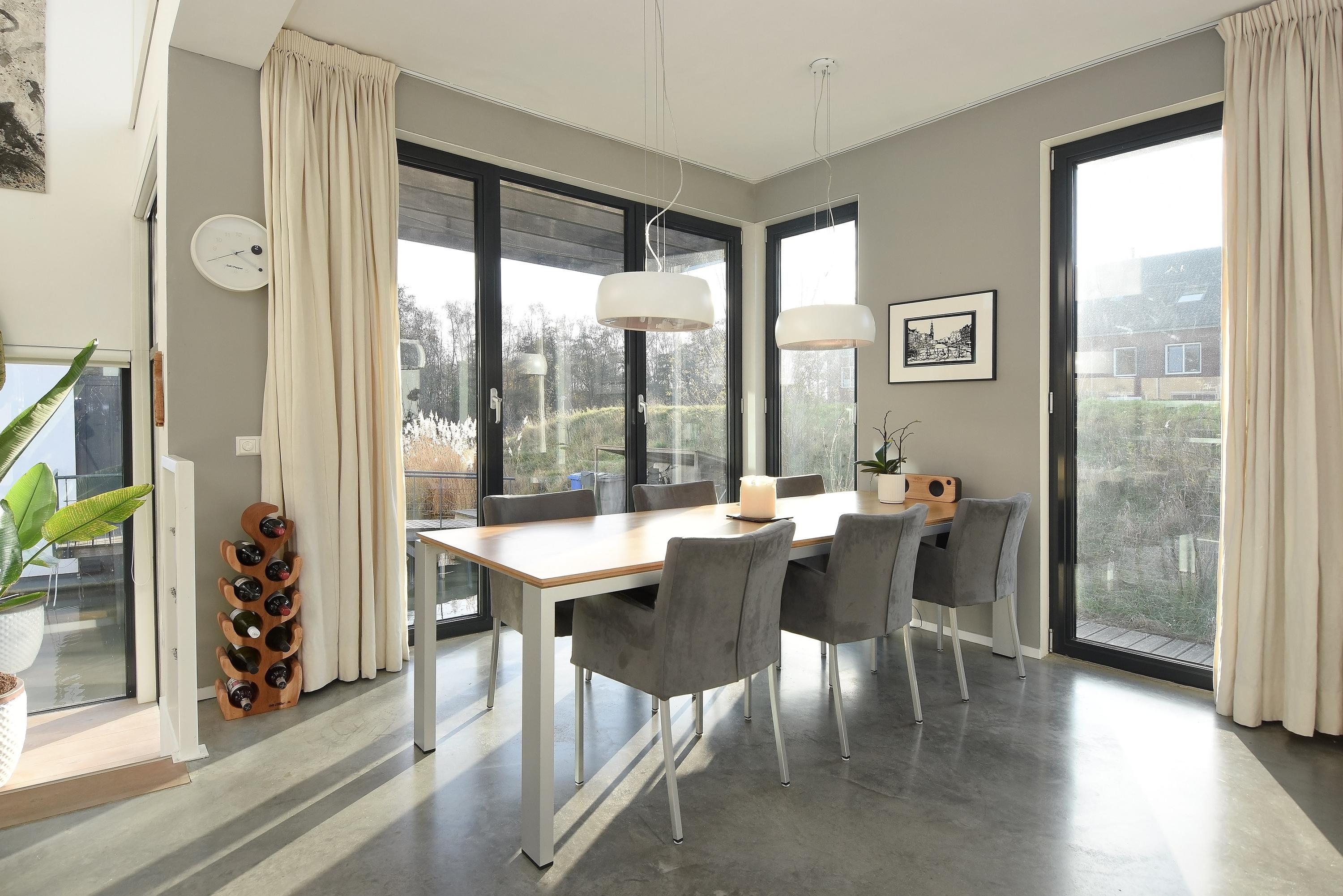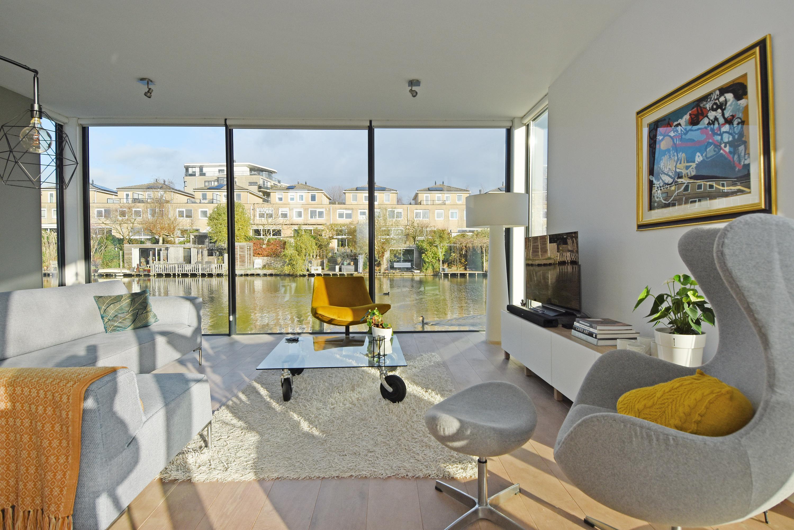 This charming, spacious and energy-efficient floating home is situated in a special location on the water, surrounded by peace and greenery. The property has a luxurious appearance, is well maintained and very practically laid out.