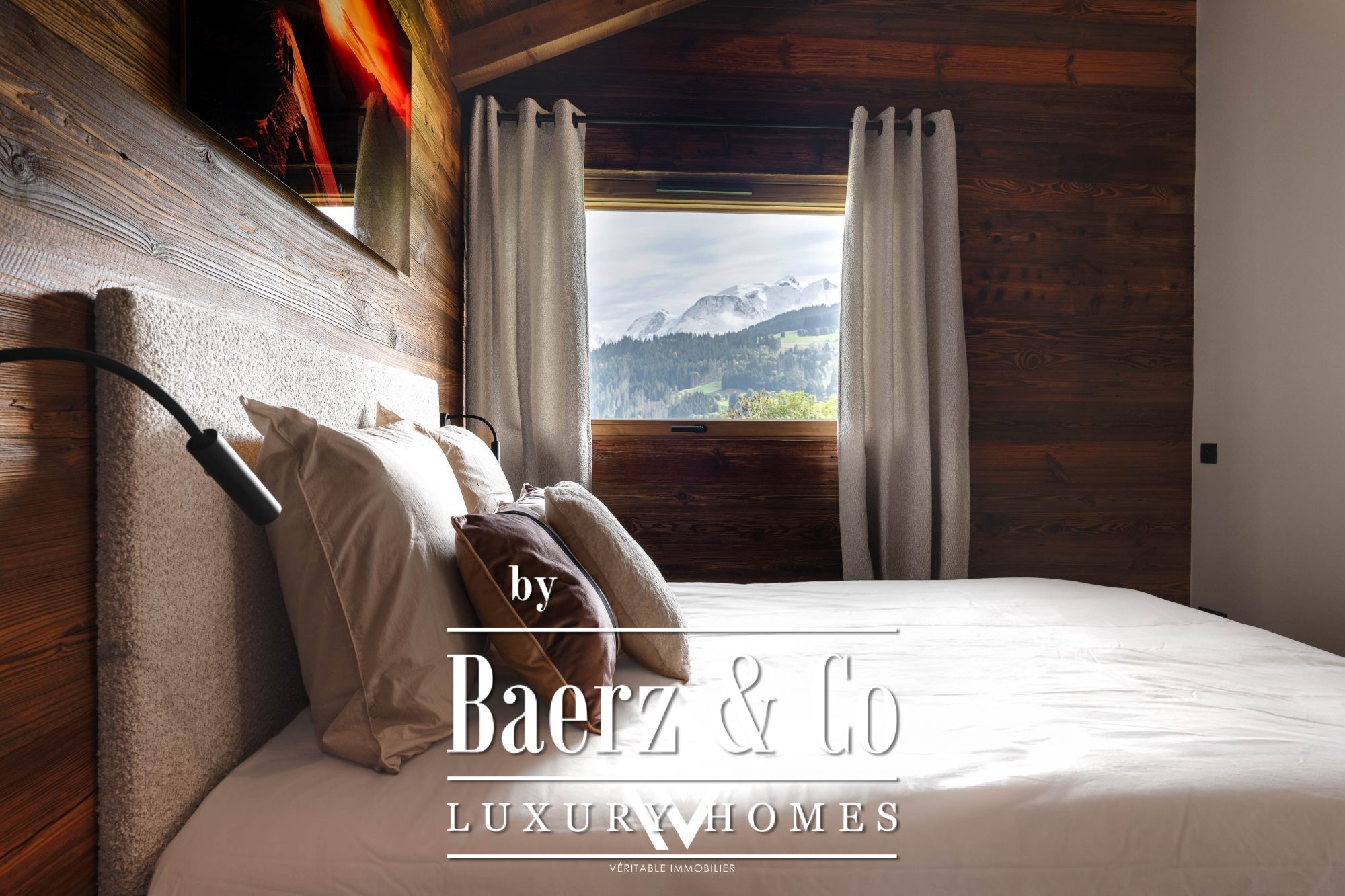 A garage completes this chalet with refined finishes and high-quality construction.