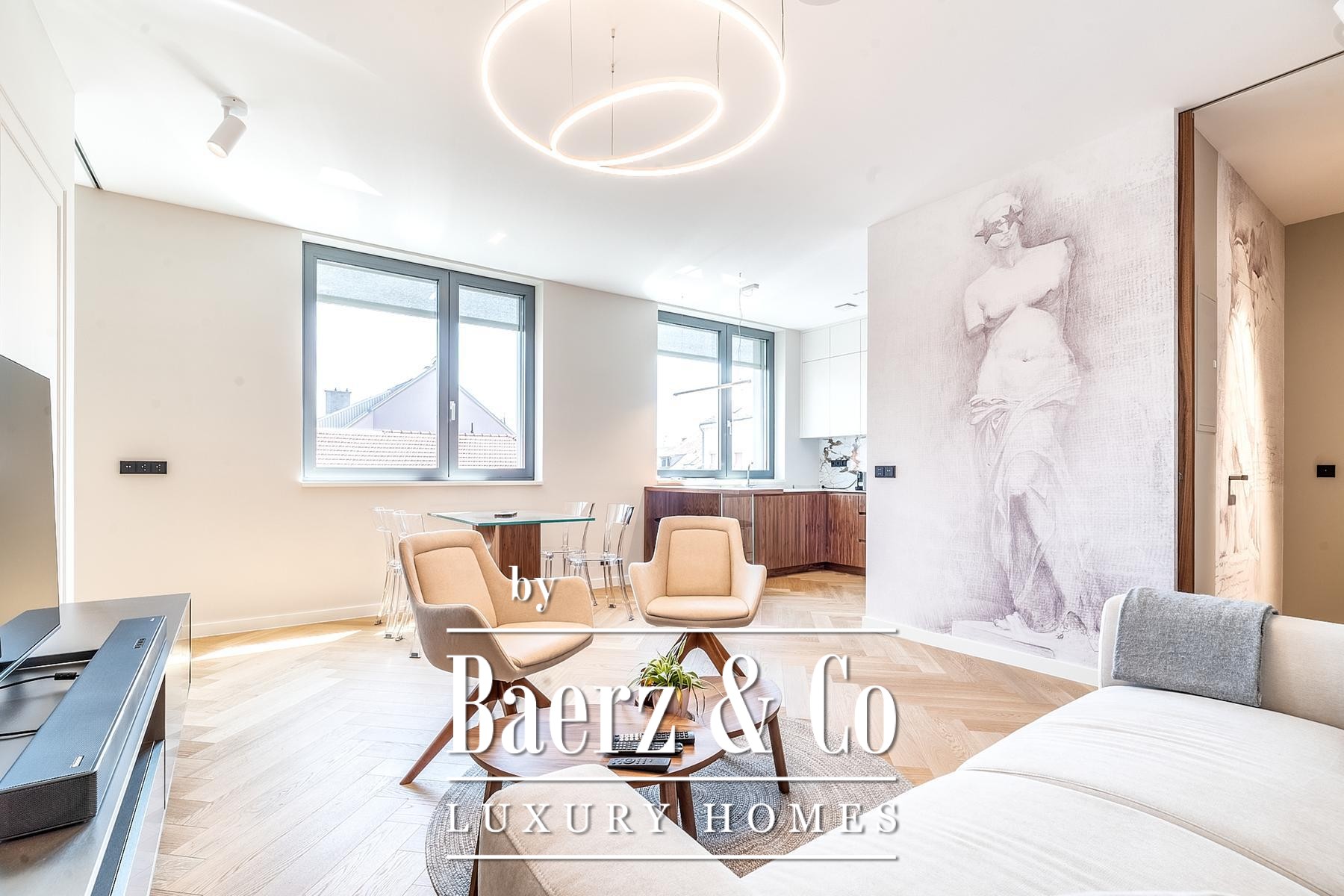 Apartment Donji Grad invites a refined perspective on city living. This modern three-room apartment, with a total calculated area of 94 m², is situated on the third floor of a contemporary building completed in 2024. Timeless architecture frames unobstructed daylight, quietly animating each of the two bedrooms, both with en-suite bathrooms, while a guest toilet enhances privacy for residents and guests alike.