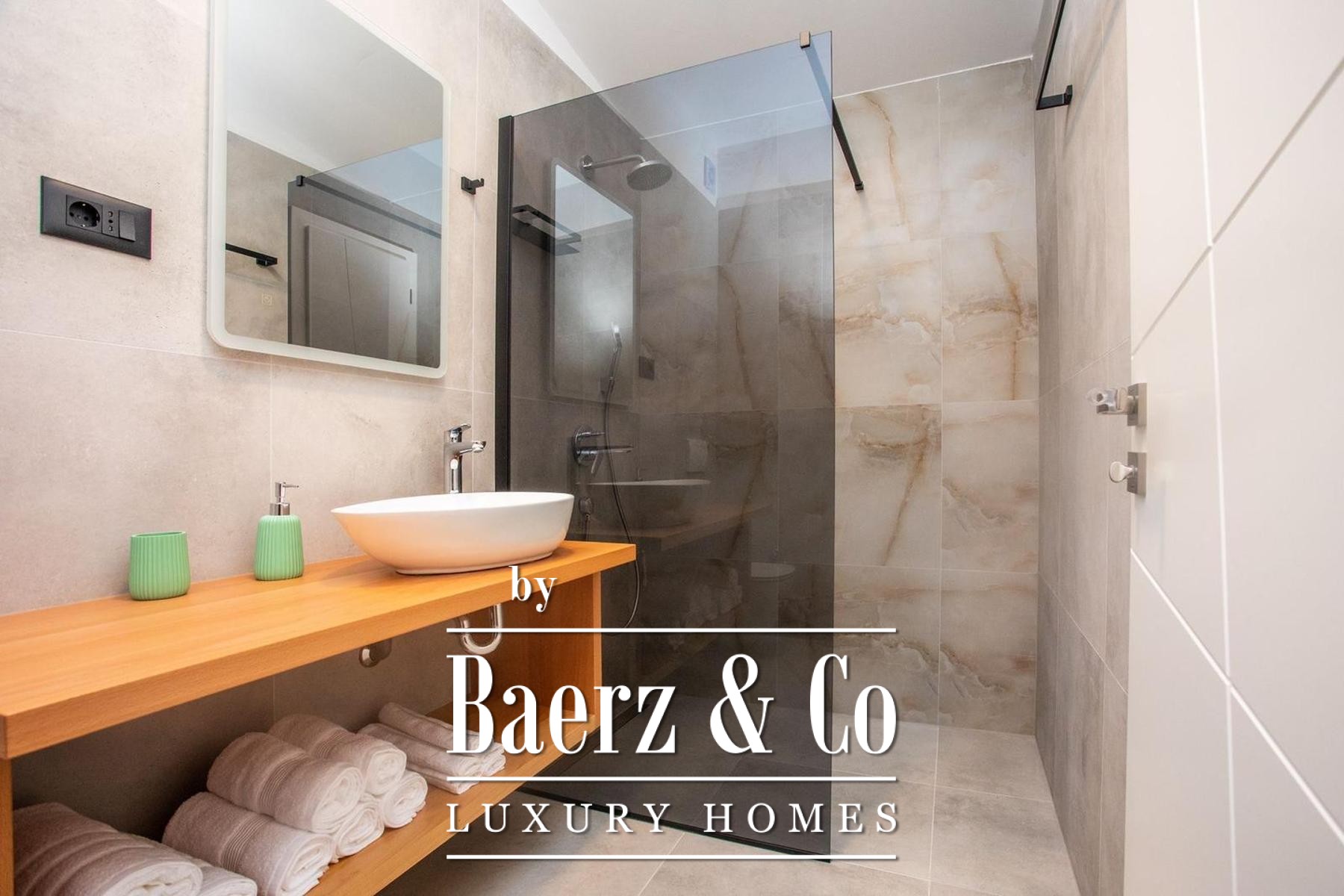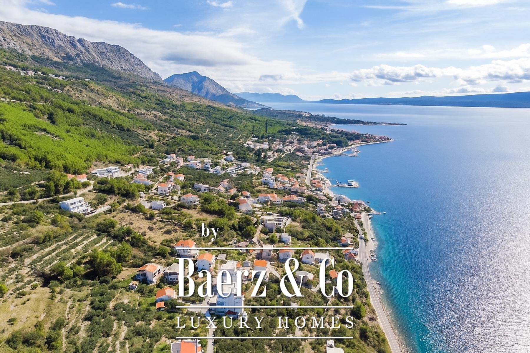 A modern luxury villa, newly built, located in Dugi Rat - Jesenice, just 300 meters in a straight line (1.4 km via a wide asphalt road) from the Adriatic Highway. Set on a plot of 814 m², this property stands out for its contemporary architecture, spectacular panoramic views of the sea and islands, and complete privacy - the villa is fully shielded from view and isolated from external noise, offering peace, comfort, and discretion.The total net usable area is 275 m², including 196 m² of enclosed living space, 110 m² of covered terraces, and an additional 40 m² sun deck by the pool.