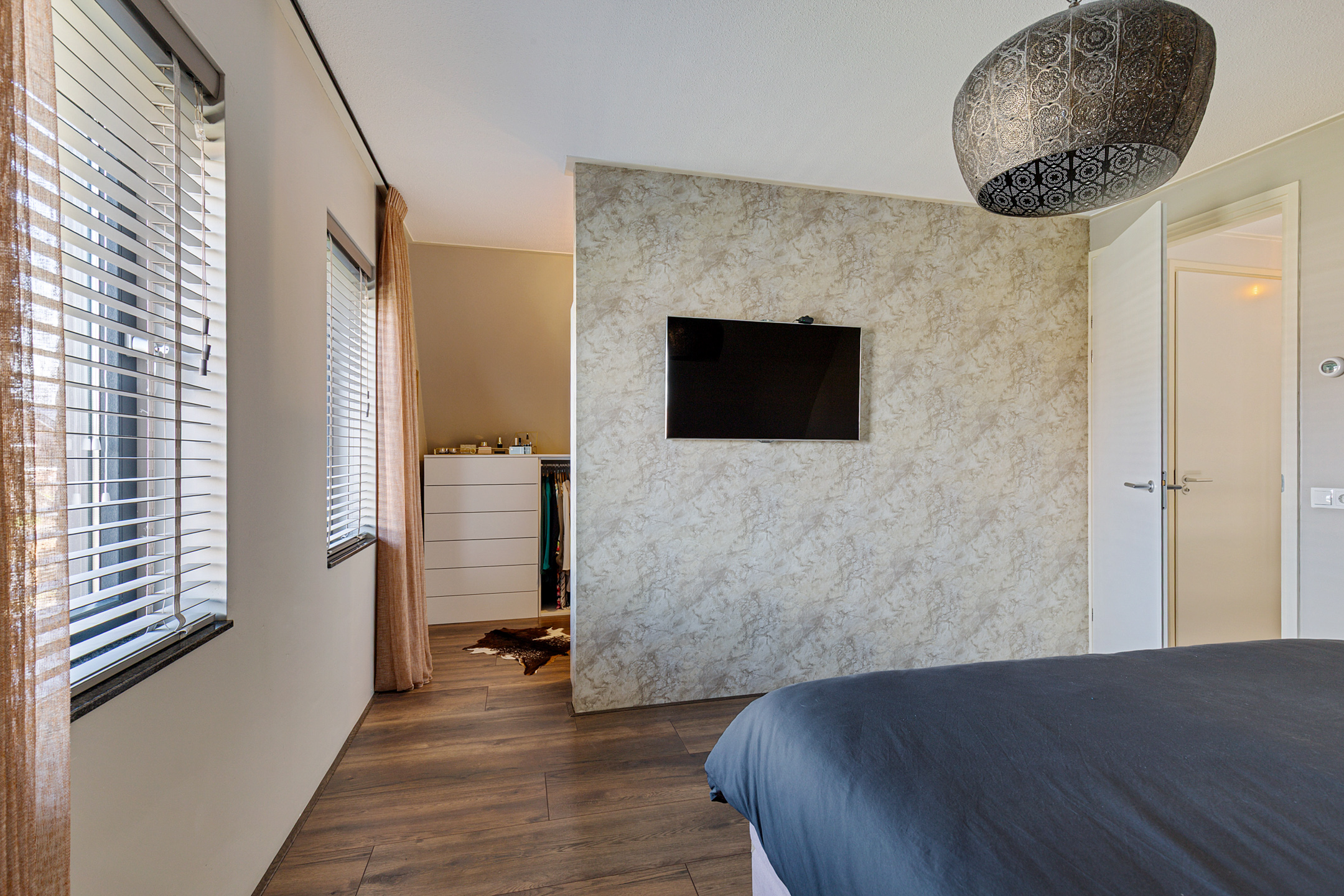 Set on the edge of the elegant new residential district of Franeker-Zuid, this striking detached villa (2023) enjoys a prime location directly on open water. A residence where refinement, comfort, and design converge, executed with uncompromising attention to detail. Nothing has been spared: energy-neutral living, low-maintenance exteriors, contemporary tilt-and-turn windows, underfloor heating and cooling, luxurious façade finishes in a timeless palette, an architectural design with a bold modern risalit, sleek plastered walls, and a master suite with walk-in dressing room. The bespoke kitchen showcases premium craftsmanship, while the year-round garden room extends the living space seamlessly outdoors. A professionally landscaped garden with an extra-deep hardwood jetty completes this remarkable waterfront estate.
