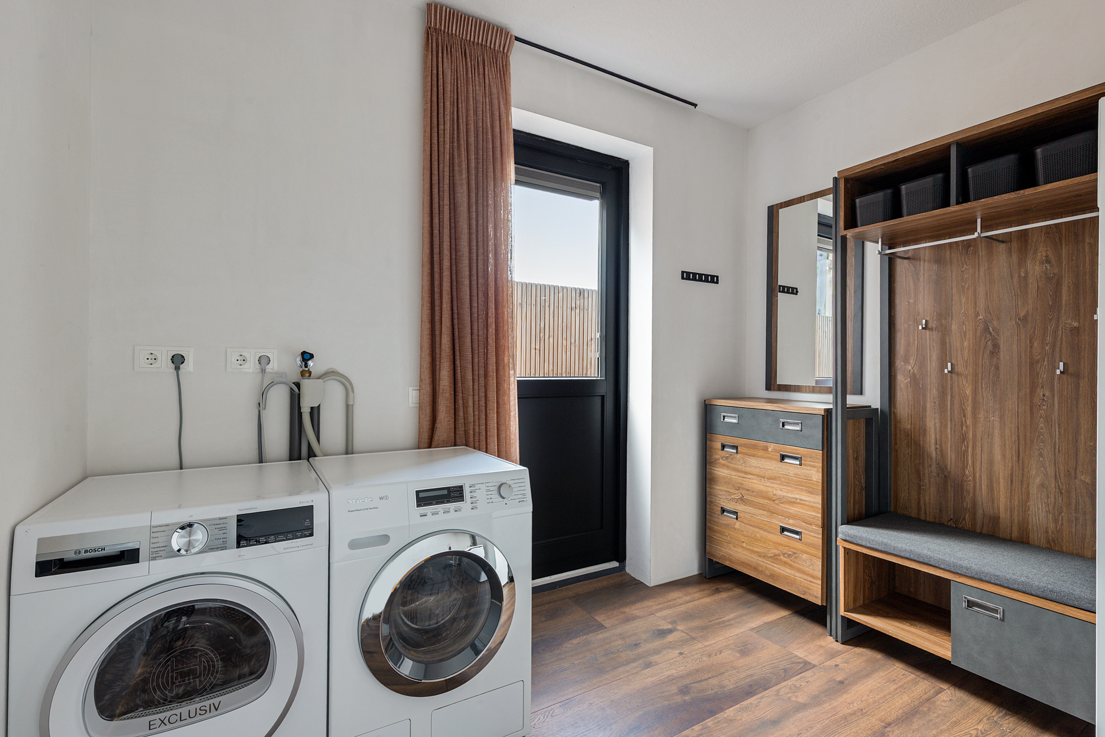 At the rear, the villa adjoins a spacious, partly insulated wooden storage unit – ideal for bicycles, garden equipment and water sports essentials.
