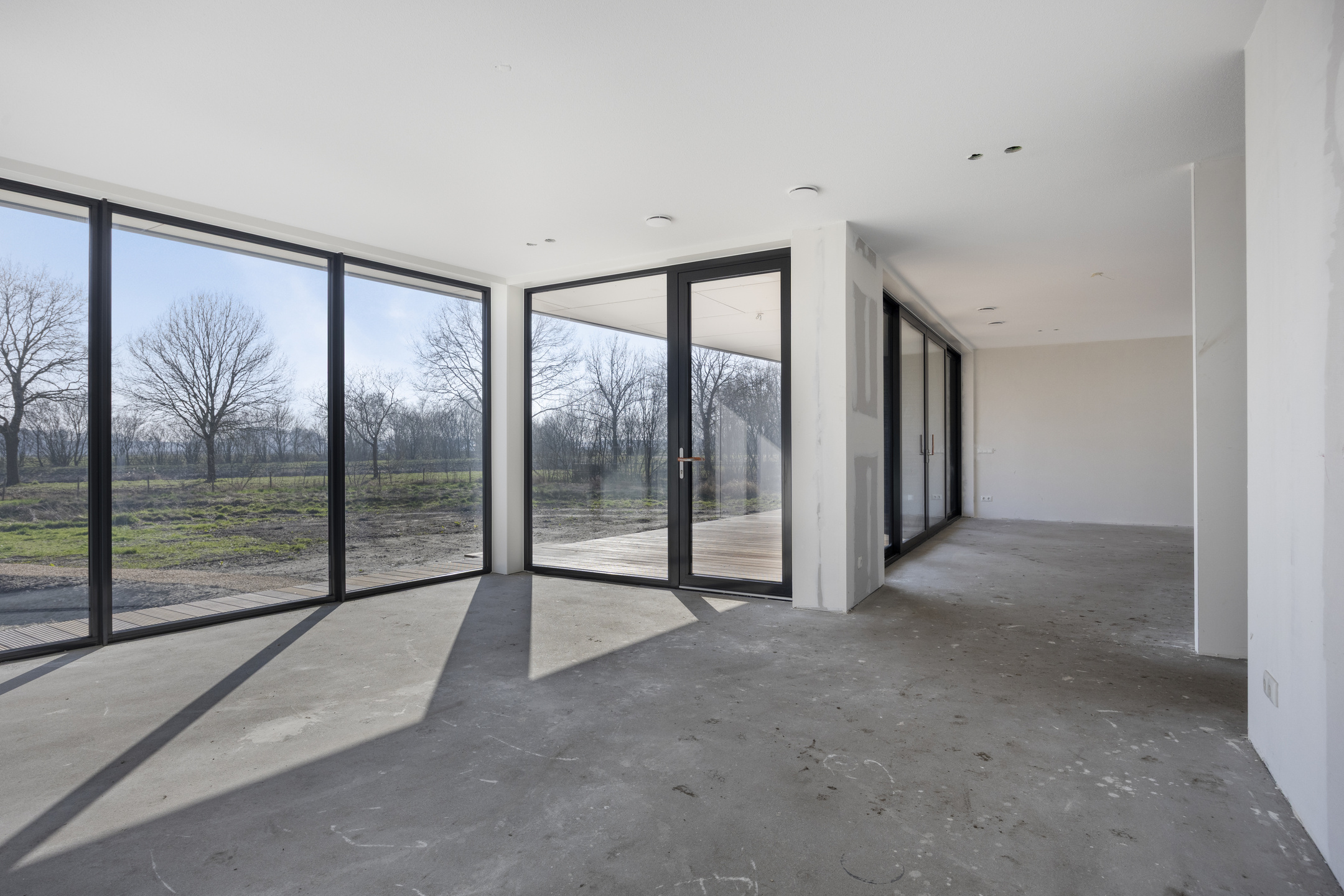 Beautiful, wide living room approximately 101m² (including kitchen) with a width of no less than 12 meters. This amazing space with lots of glass at the rear offers plenty of living space and a phenomenal view. A sliding door provides access to a large terrace with a veranda.