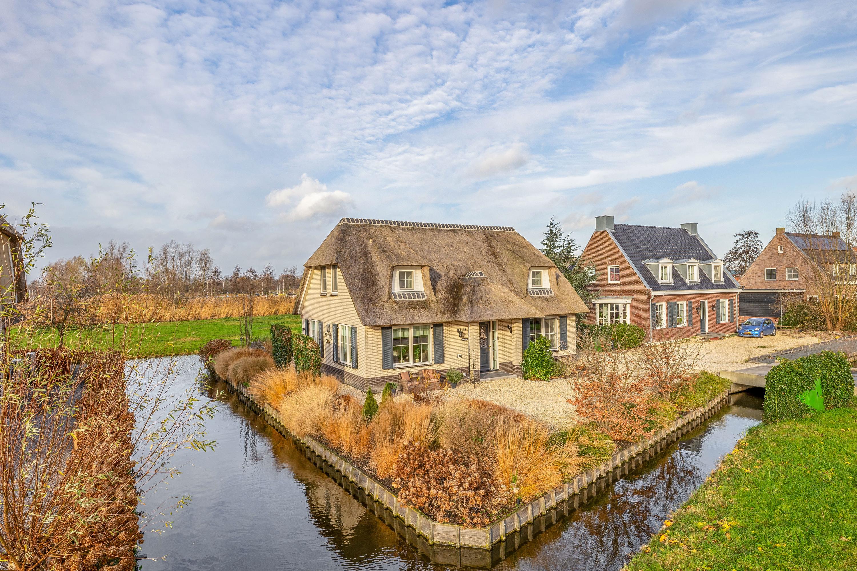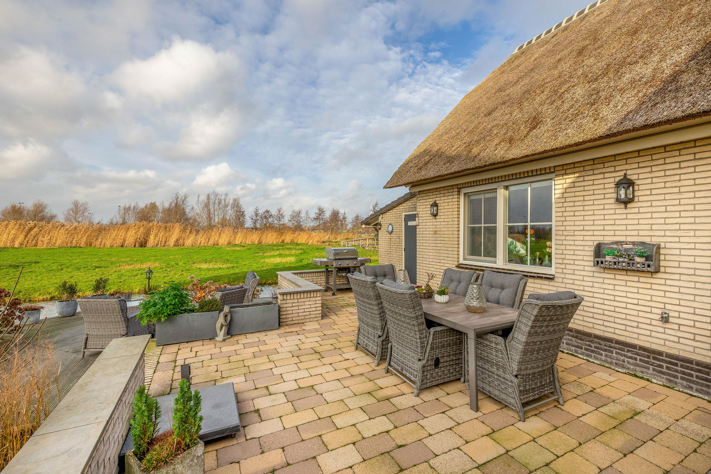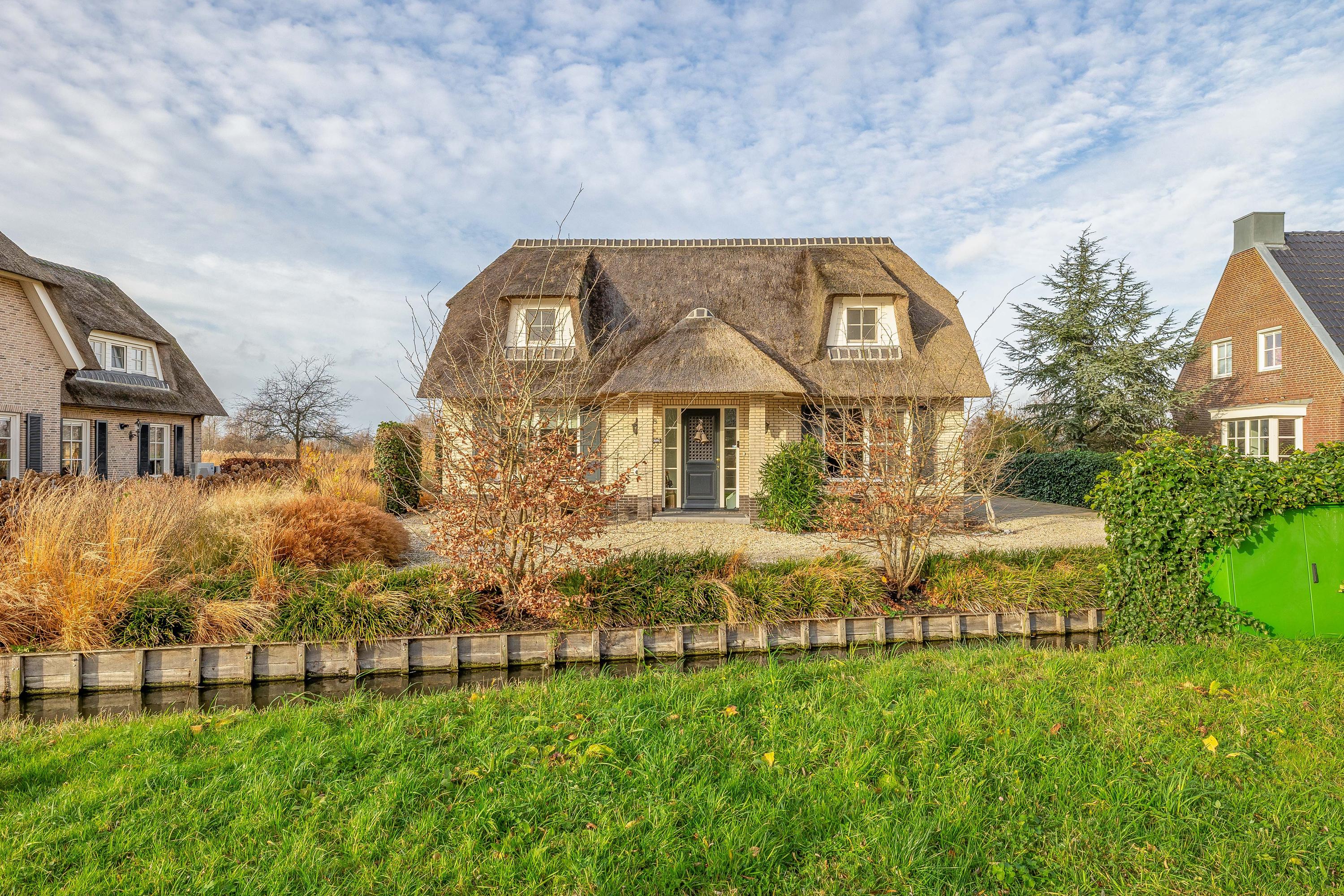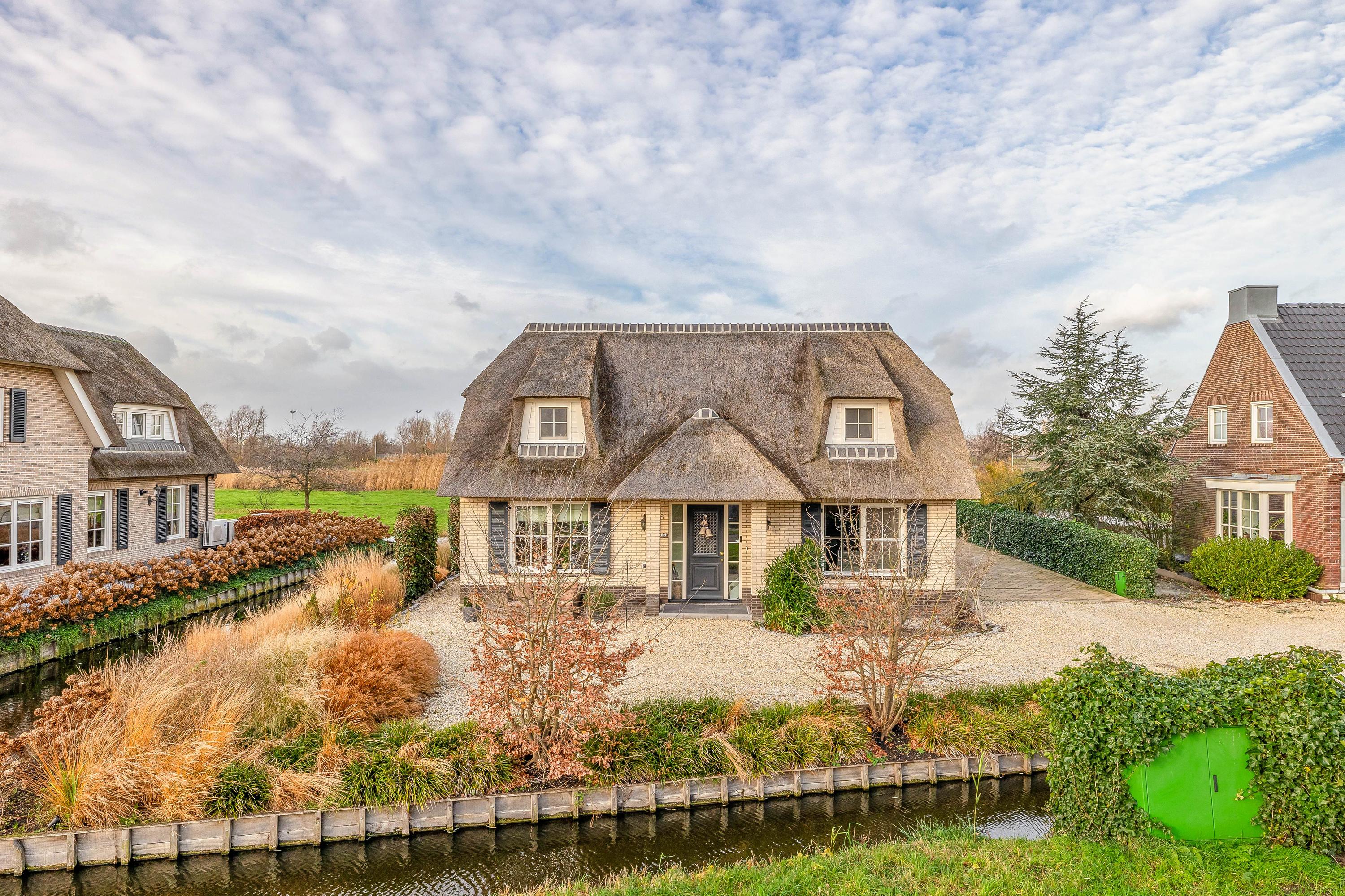 What immediately stands out upon arrival is the attractive thatched roof, the charming façade and the beautifully landscaped front garden. The property is located on a dead-end street, surrounded by peace, greenery and sweeping views over the meadows. Yet you are surprisingly central here: the historic city centre of Gouda, the train station and the main roads towards the A12 and A20 motorways are all just minutes away. This makes the home ideally suited for families who want to live rurally with the conveniences of the city nearby, or for those who wish to live on one level with space for home care or guests.