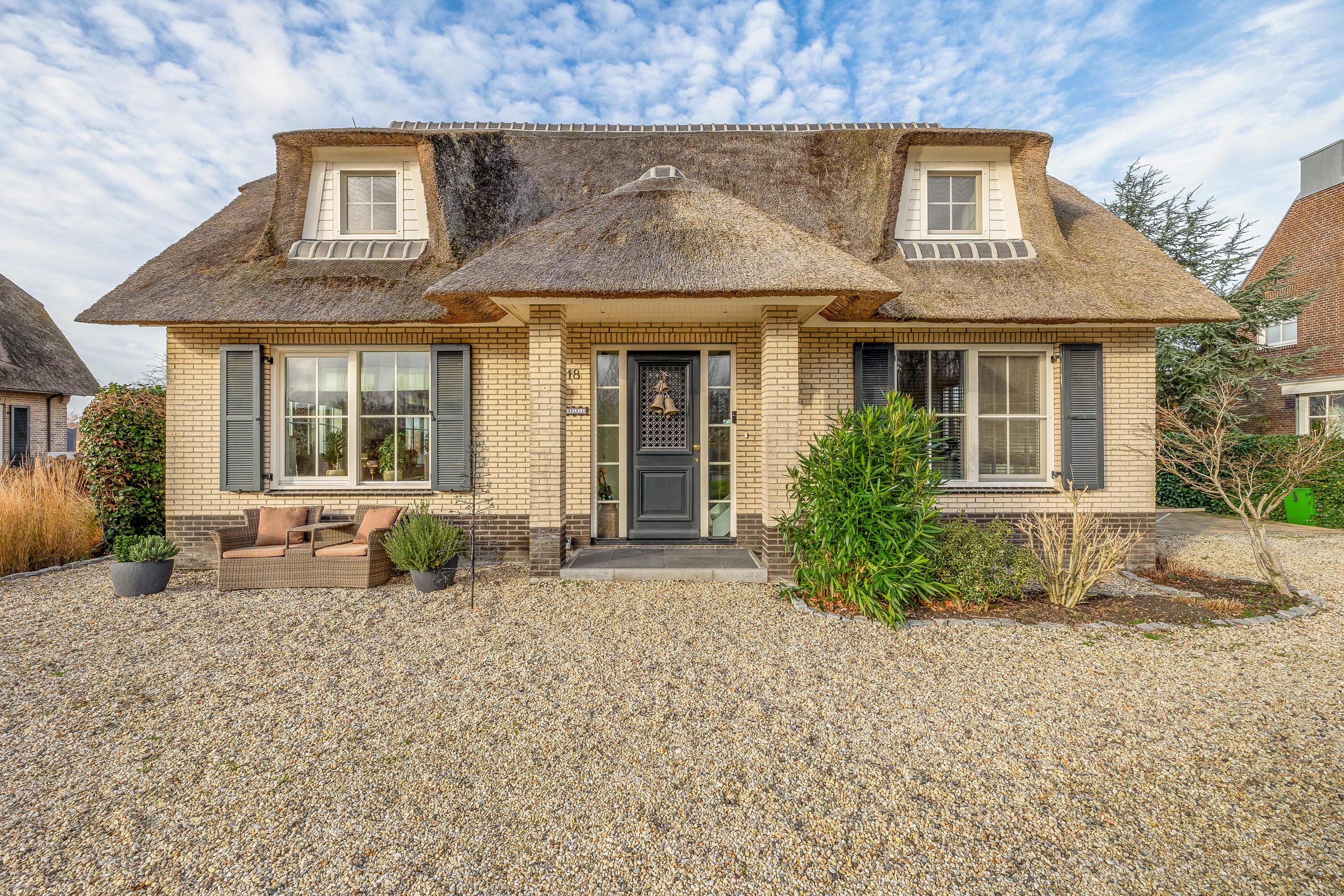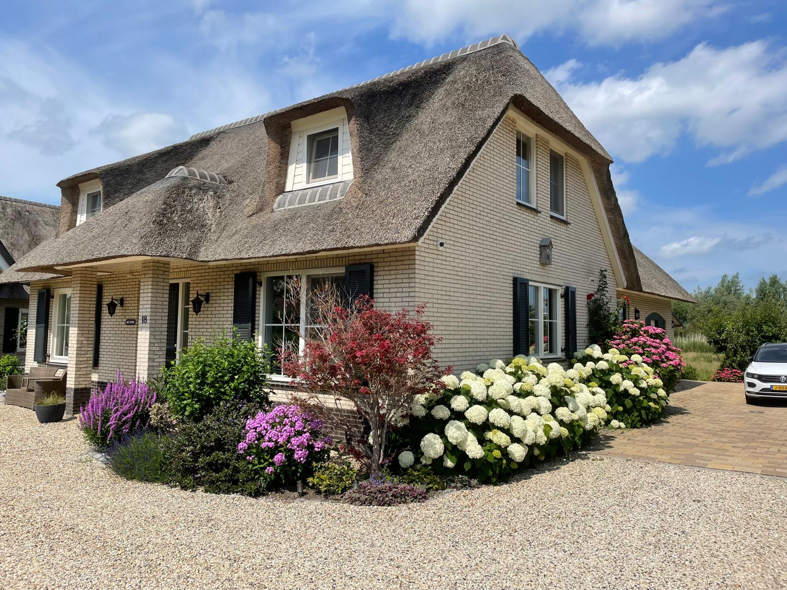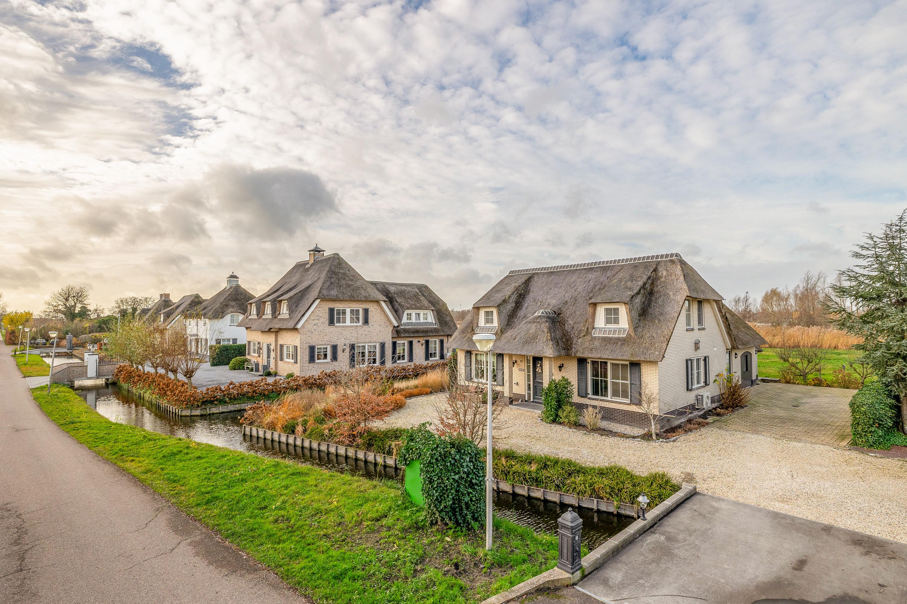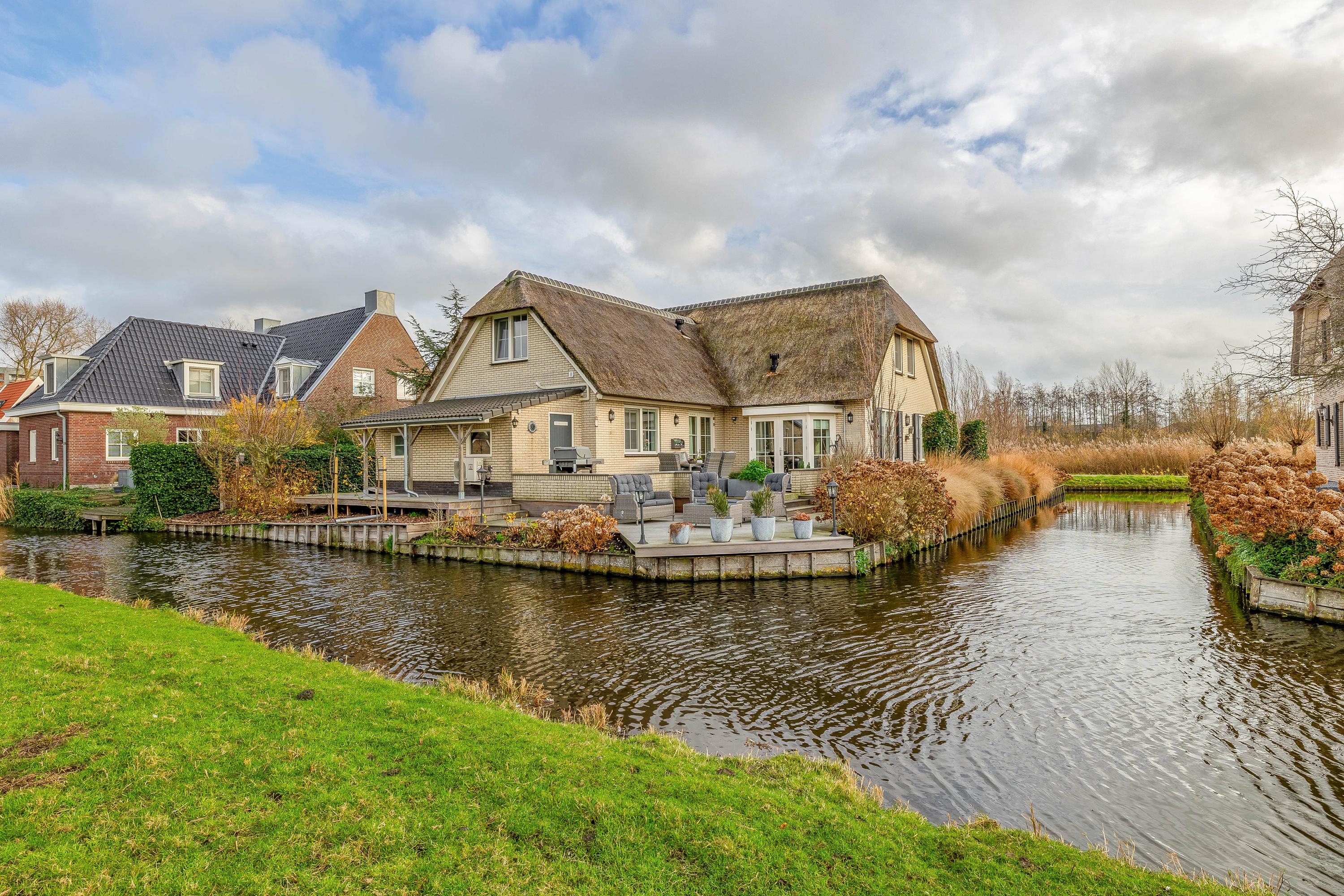 What immediately stands out upon arrival is the attractive thatched roof, the charming façade and the beautifully landscaped front garden. The property is located on a dead-end street, surrounded by peace, greenery and sweeping views over the meadows. Yet you are surprisingly central here: the historic city centre of Gouda, the train station and the main roads towards the A12 and A20 motorways are all just minutes away. This makes the home ideally suited for families who want to live rurally with the conveniences of the city nearby, or for those who wish to live on one level with space for home care or guests.