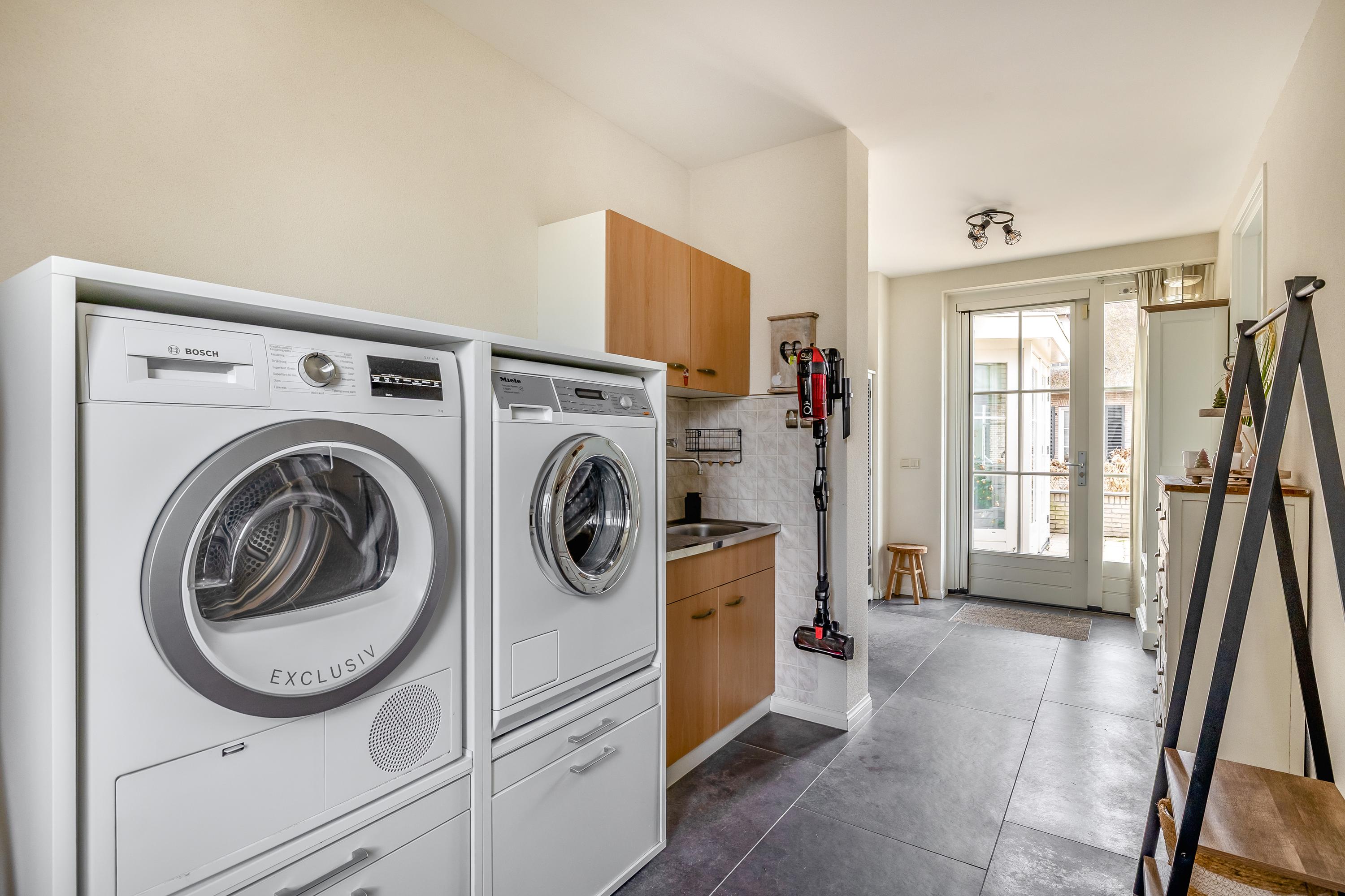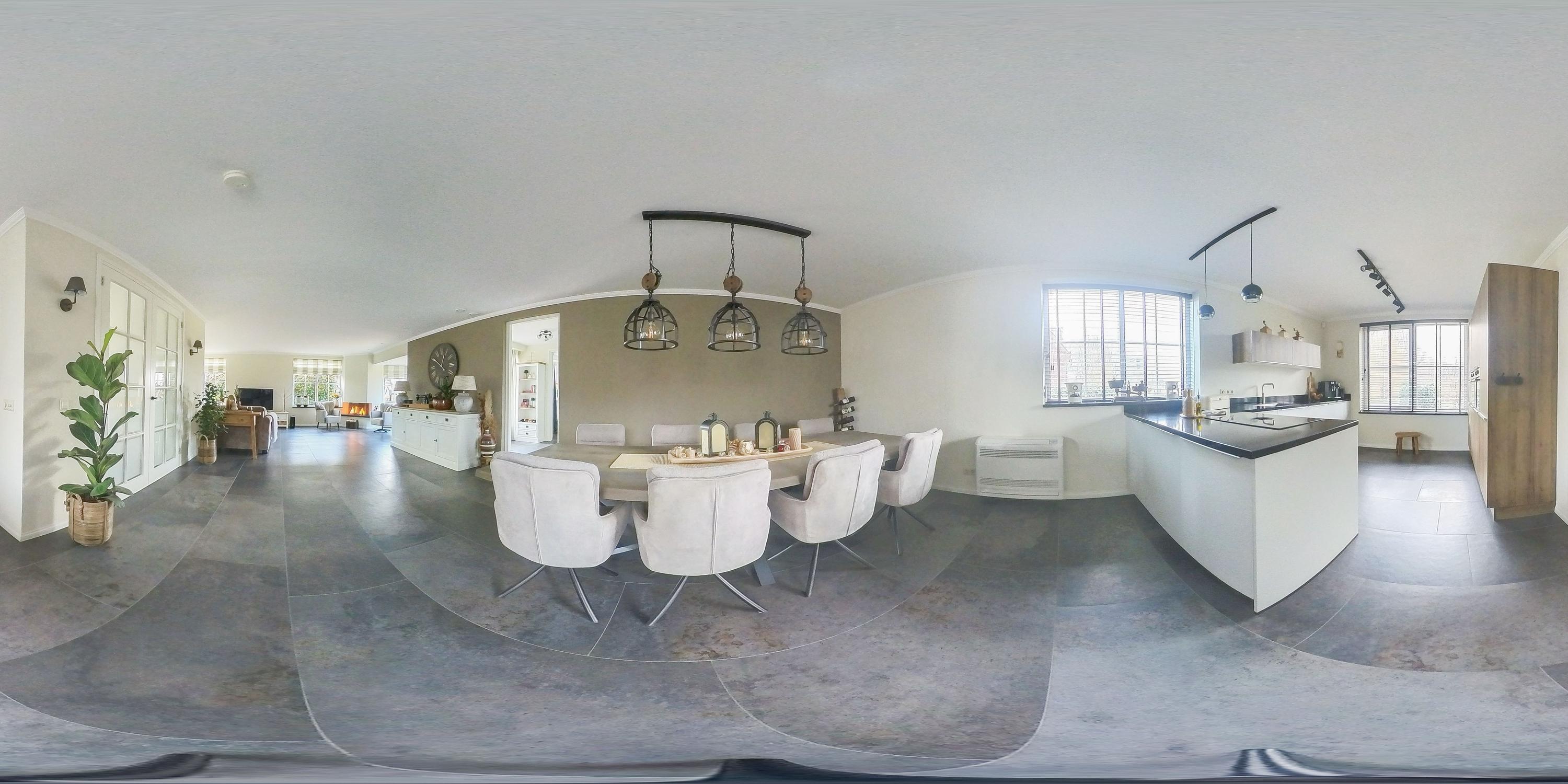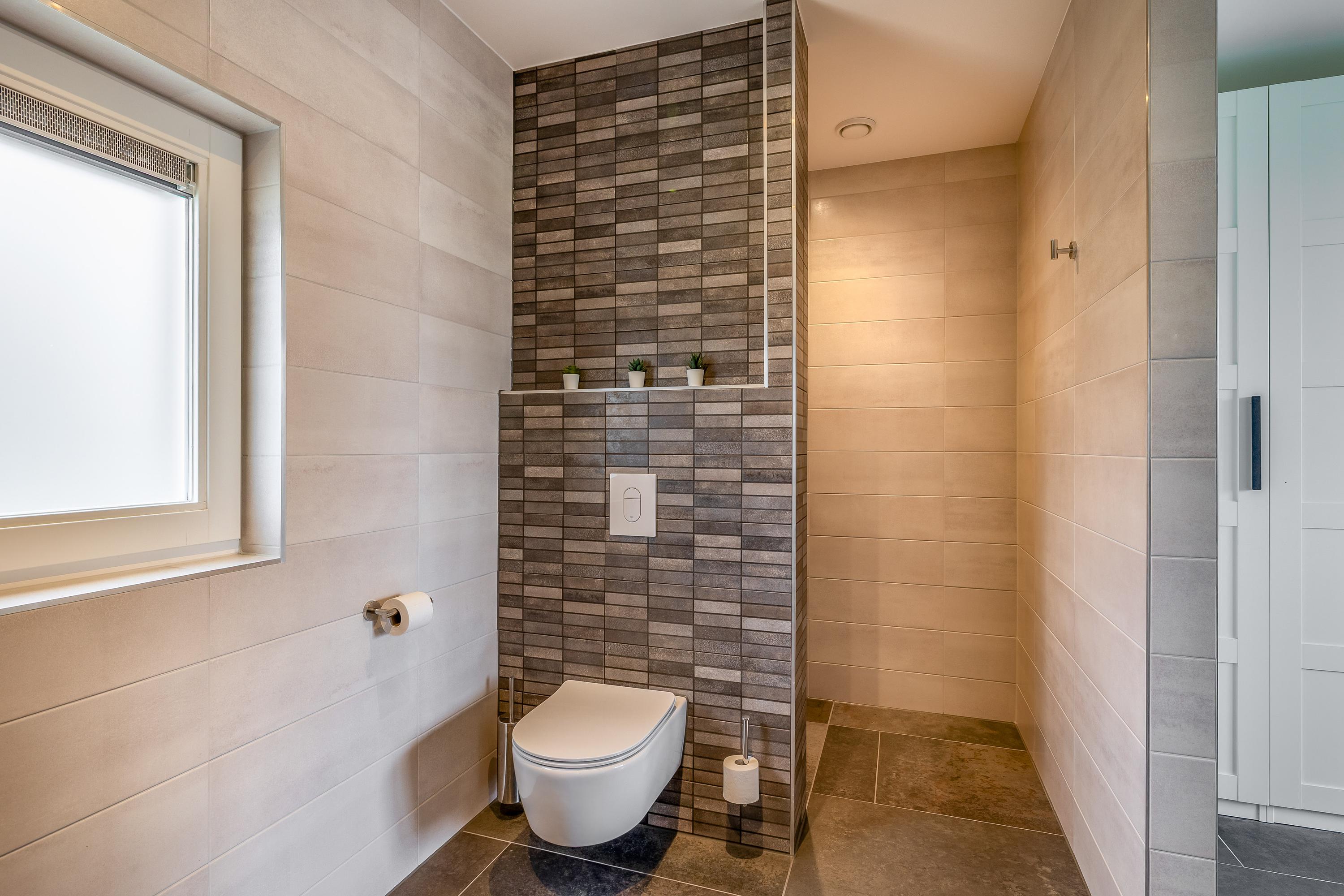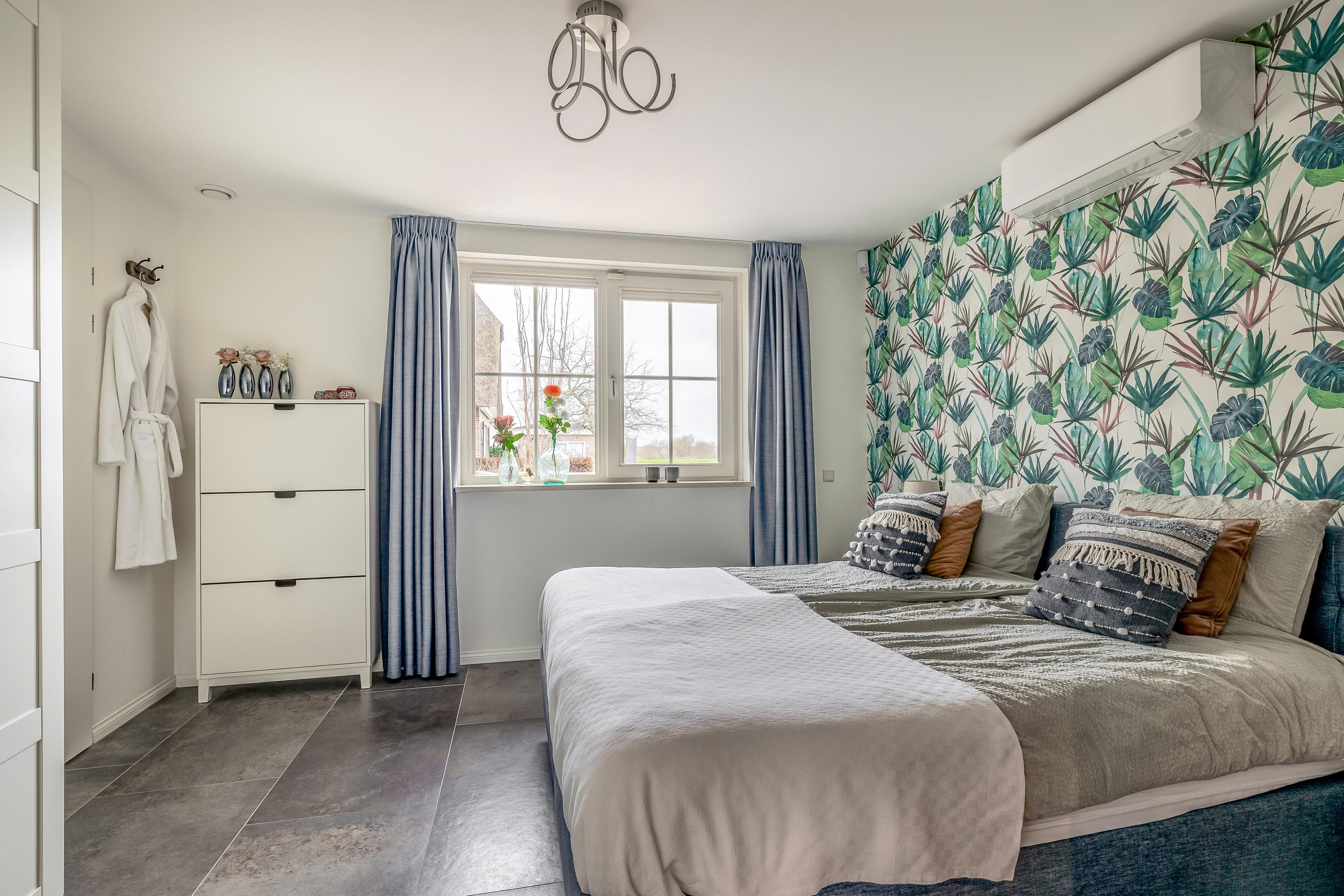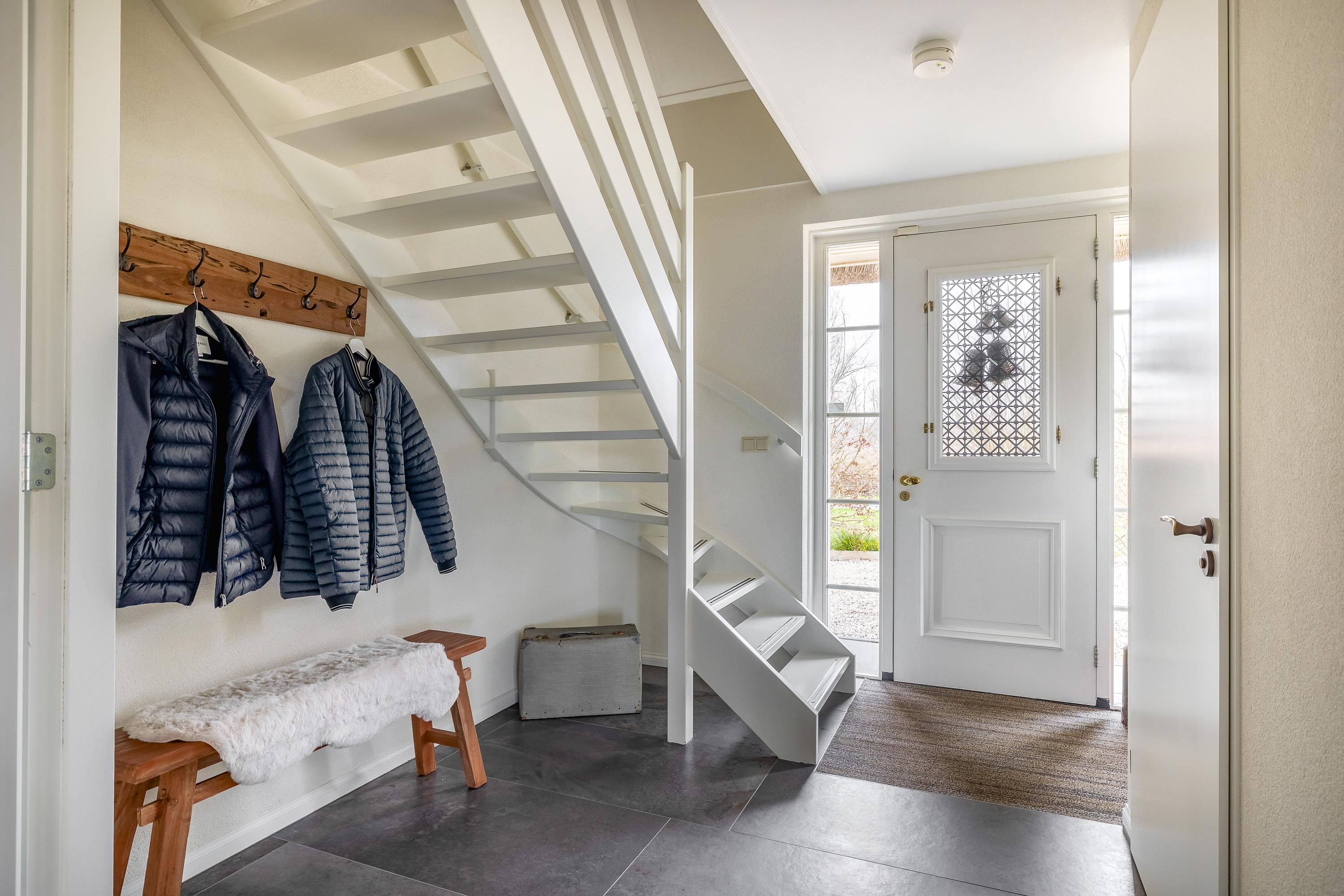 Through the stylish entrance you enter a spacious hallway with a renovated floating toilet and washbasin. Double doors lead to the very generous living area, which was completely renovated in 2022. The living space consists of a luxury open-plan kitchen, dining area and sitting area with bay window and French doors opening onto the terrace. The modern kitchen is fully equipped: an induction hob with Bora extraction, two identical combination ovens, a large refrigerator and freezer, dishwasher, Quooker and a composite worktop. In the utility room you will find connections for a washing machine and dryer, as well as a door to the outside. Thanks to the large windows and the bay window with French doors, daylight floods in abundantly. The atmospheric gas fireplace and recessed spotlights complete the picture. Also on the ground floor is a spacious bedroom with custom-made wardrobes and a luxury en-suite bathroom (2022) with walk-in shower, floating toilet, washbasin unit and designer radiator. This makes single-level living possible without sacrificing comfort.
