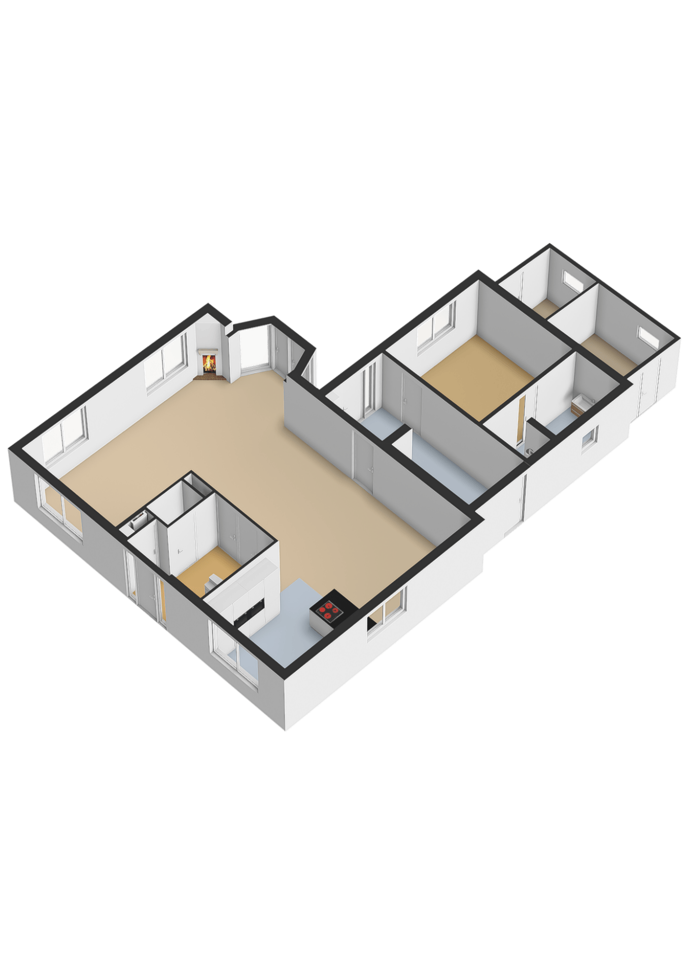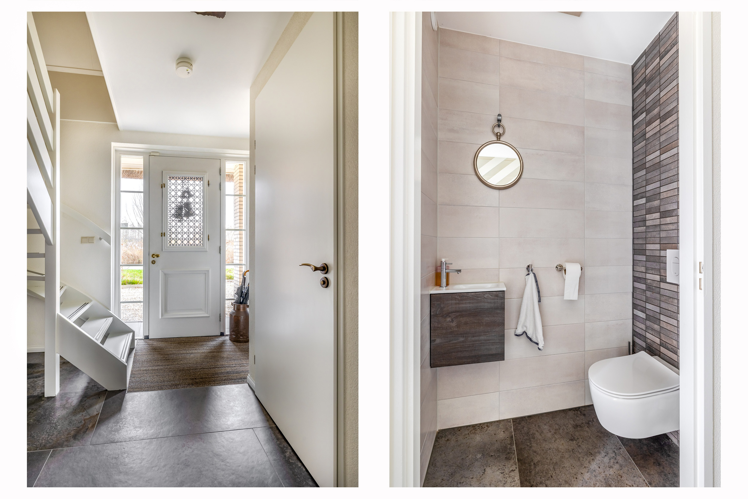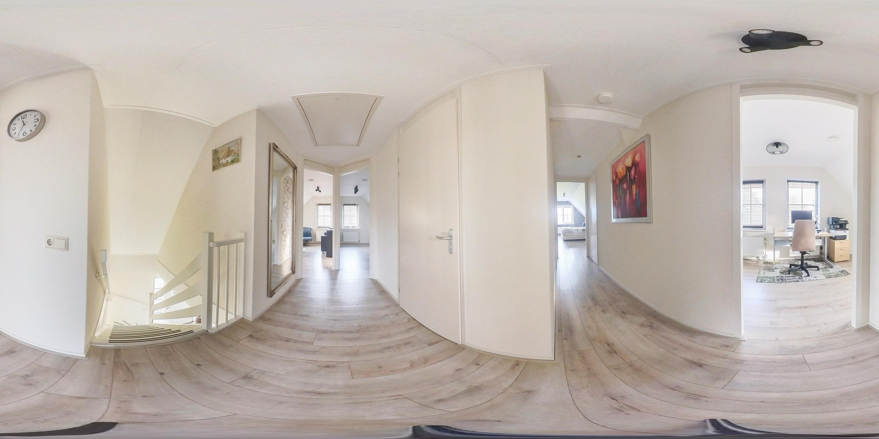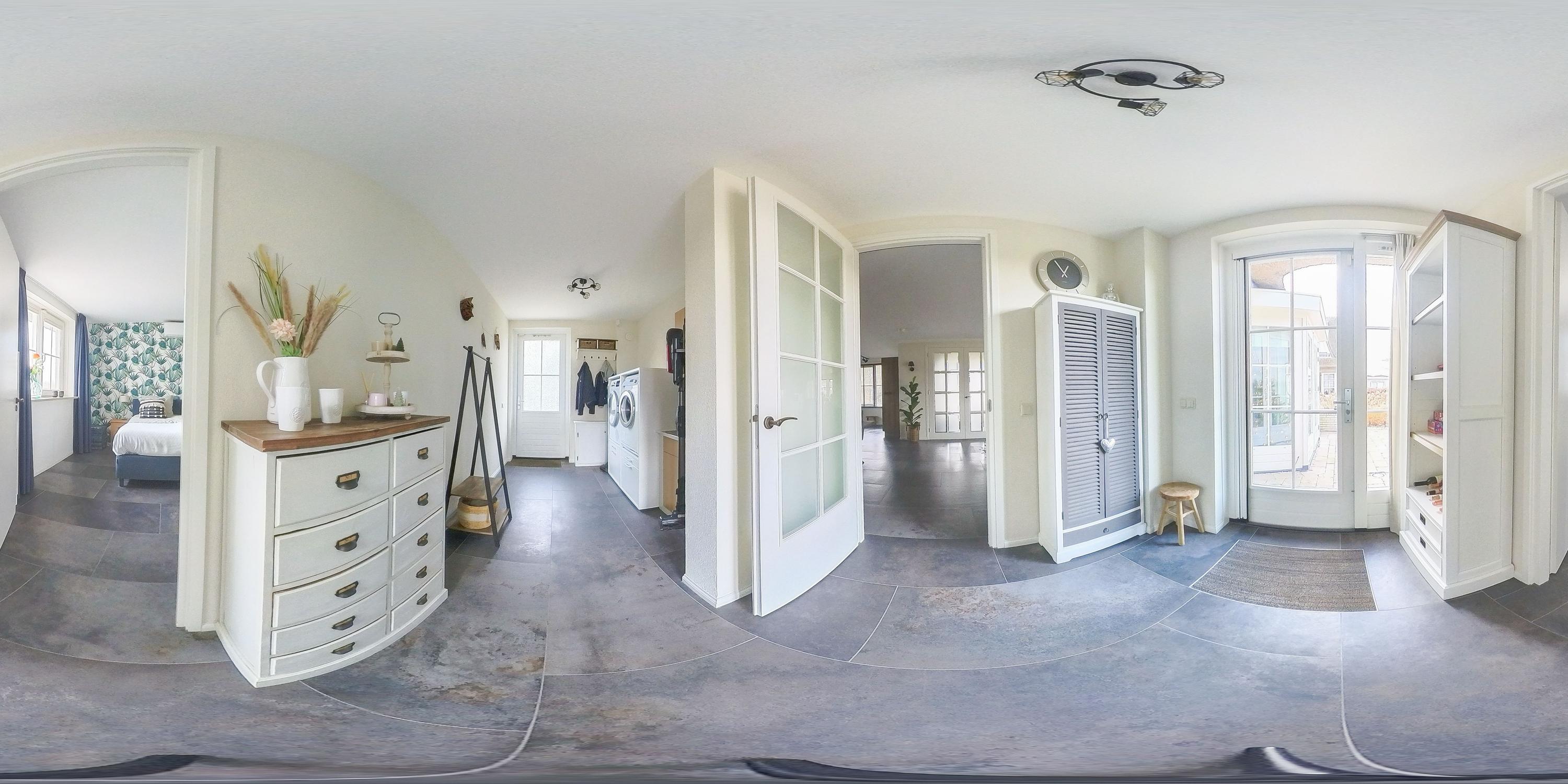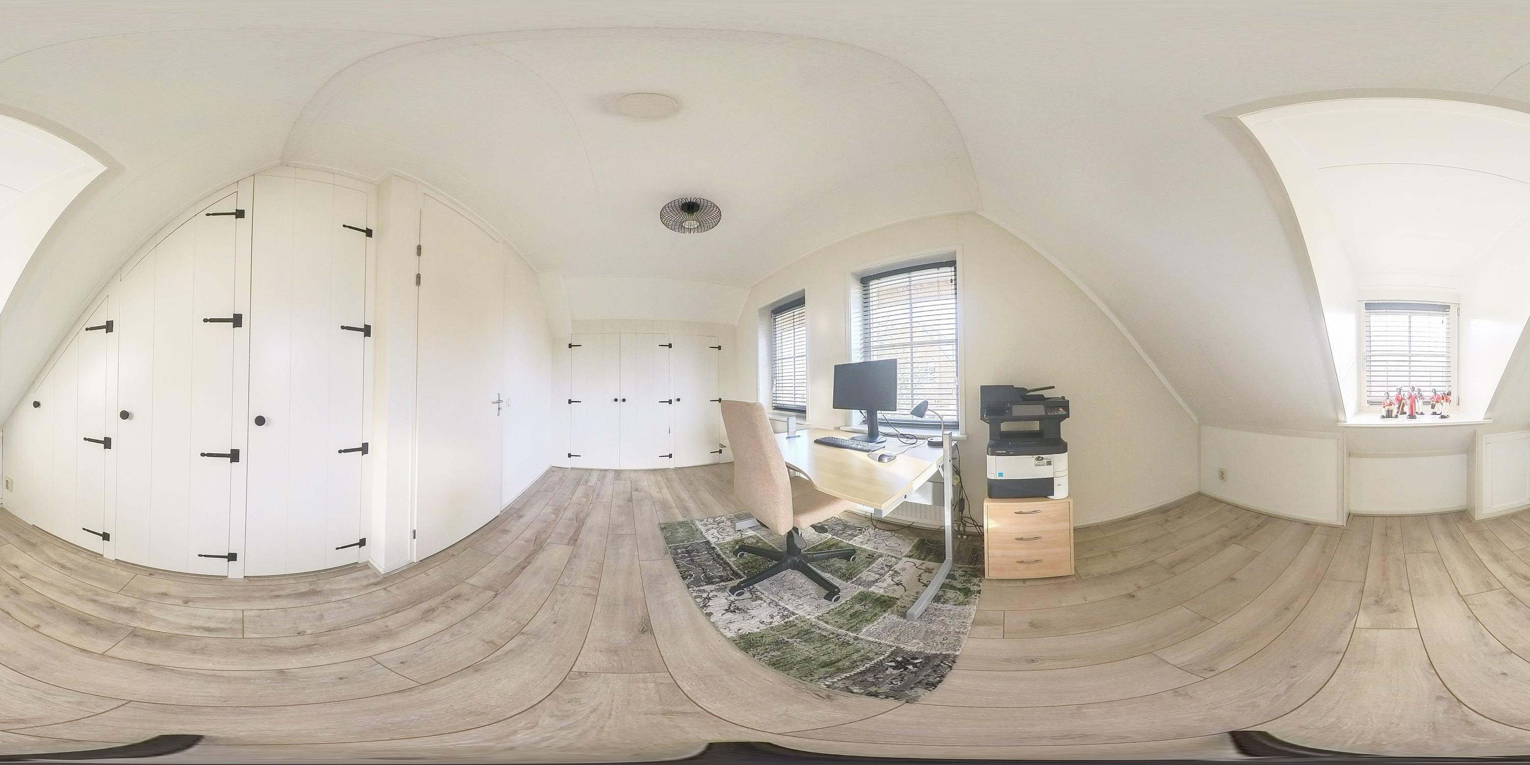 Through the stylish entrance you enter a spacious hallway with a renovated floating toilet and washbasin. Double doors lead to the very generous living area, which was completely renovated in 2022. The living space consists of a luxury open-plan kitchen, dining area and sitting area with bay window and French doors opening onto the terrace. The modern kitchen is fully equipped: an induction hob with Bora extraction, two identical combination ovens, a large refrigerator and freezer, dishwasher, Quooker and a composite worktop. In the utility room you will find connections for a washing machine and dryer, as well as a door to the outside. Thanks to the large windows and the bay window with French doors, daylight floods in abundantly. The atmospheric gas fireplace and recessed spotlights complete the picture. Also on the ground floor is a spacious bedroom with custom-made wardrobes and a luxury en-suite bathroom (2022) with walk-in shower, floating toilet, washbasin unit and designer radiator. This makes single-level living possible without sacrificing comfort.