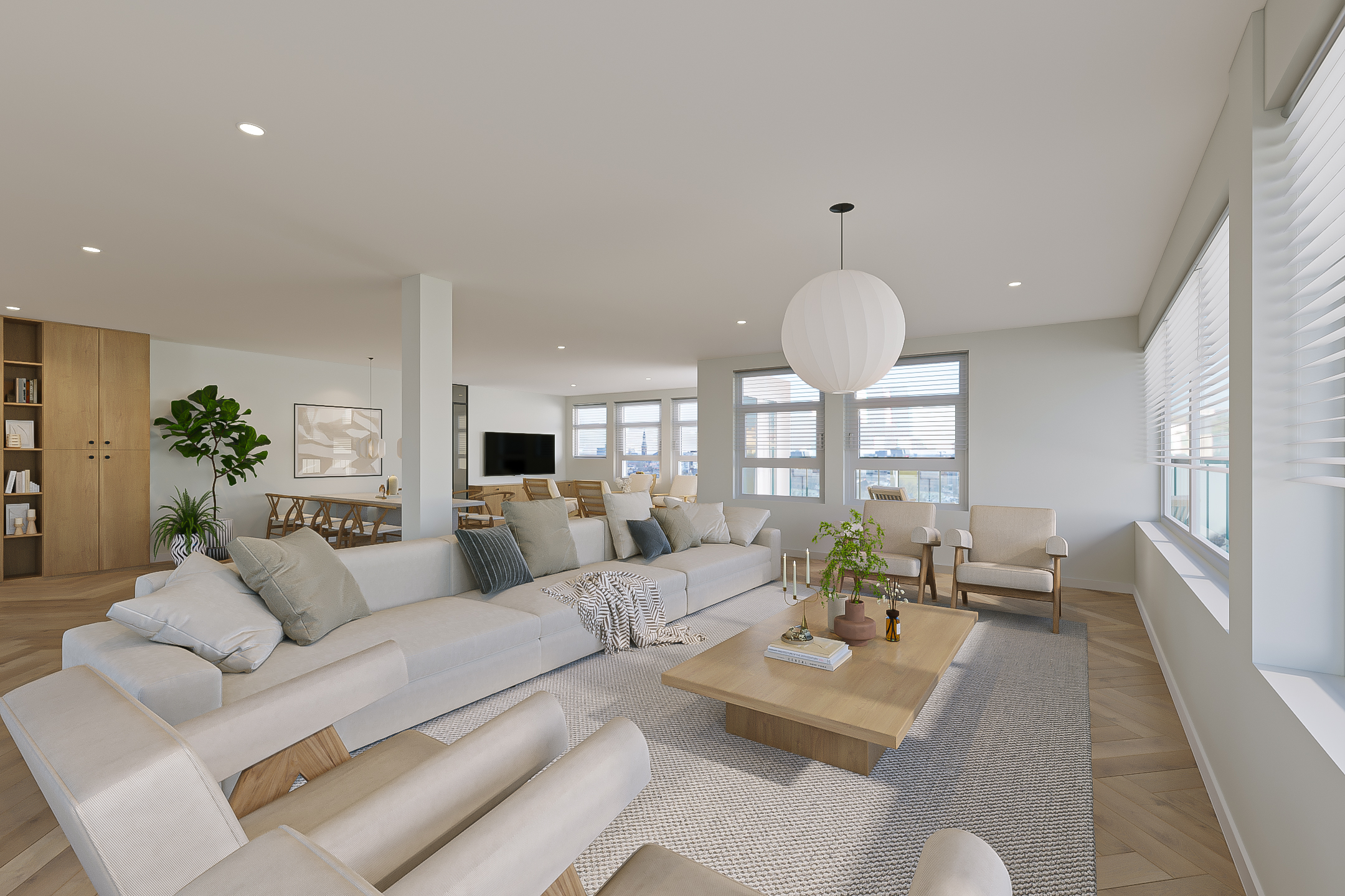 Penthouse Groningen is a rare residence offering refined urban living at the edge of the city’s historic heart. This exclusive penthouse provides 263 m² of living space, where floor-to-ceiling views extend over the Verbindingskanaal, the Zuiderhaven, and the tree-lined Praediniussingel. The property’s distinctive design, achieved by uniting two penthouses, creates a spacious layout with four bedrooms and two bathrooms, including features such as a whirlpool, sauna, and steam cabin.
