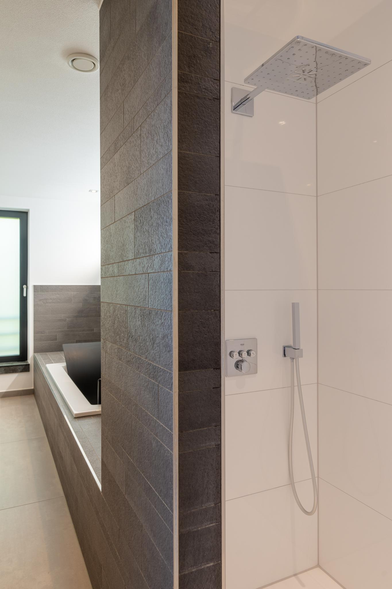 Generous distribution hall to the various living areas and access door to the side of the house. Fully tiled toilet room with free-hanging toilet, urinal, and design fountain. Laundry chute to the laundry room below. Via the double glass pivot doors, access to the living room. The playfully arranged living room is divided into various interconnected open spaces. At the front, a large panoramic window offers a view over "Douve Weien," with the lines of the Heuvelland visible in the distance. Centrally located in the living room is the fireplace with a gas fire, and from the spacious dining room, the sun terrace at the front is accessible. At the front, with access to the living room, the office space is situated. At the garden side, there is a cozy sitting area with access to the garden through large glass sections. Fully oriented towards the garden, the beautiful living kitchen is located, where indoor and outdoor spaces can merge by opening the large glass sections. The high-quality kitchen installation in wall and island configuration features granite worktops and the following "Miele" built-in appliances: microwave, steam oven, convection oven, refrigerator, freezer, dishwasher, stainless steel extractor hood, and induction cooktops (Smeg) with gas wok burner (Smeg). The entire living floor is finished with natural stone flooring with underfloor heating.