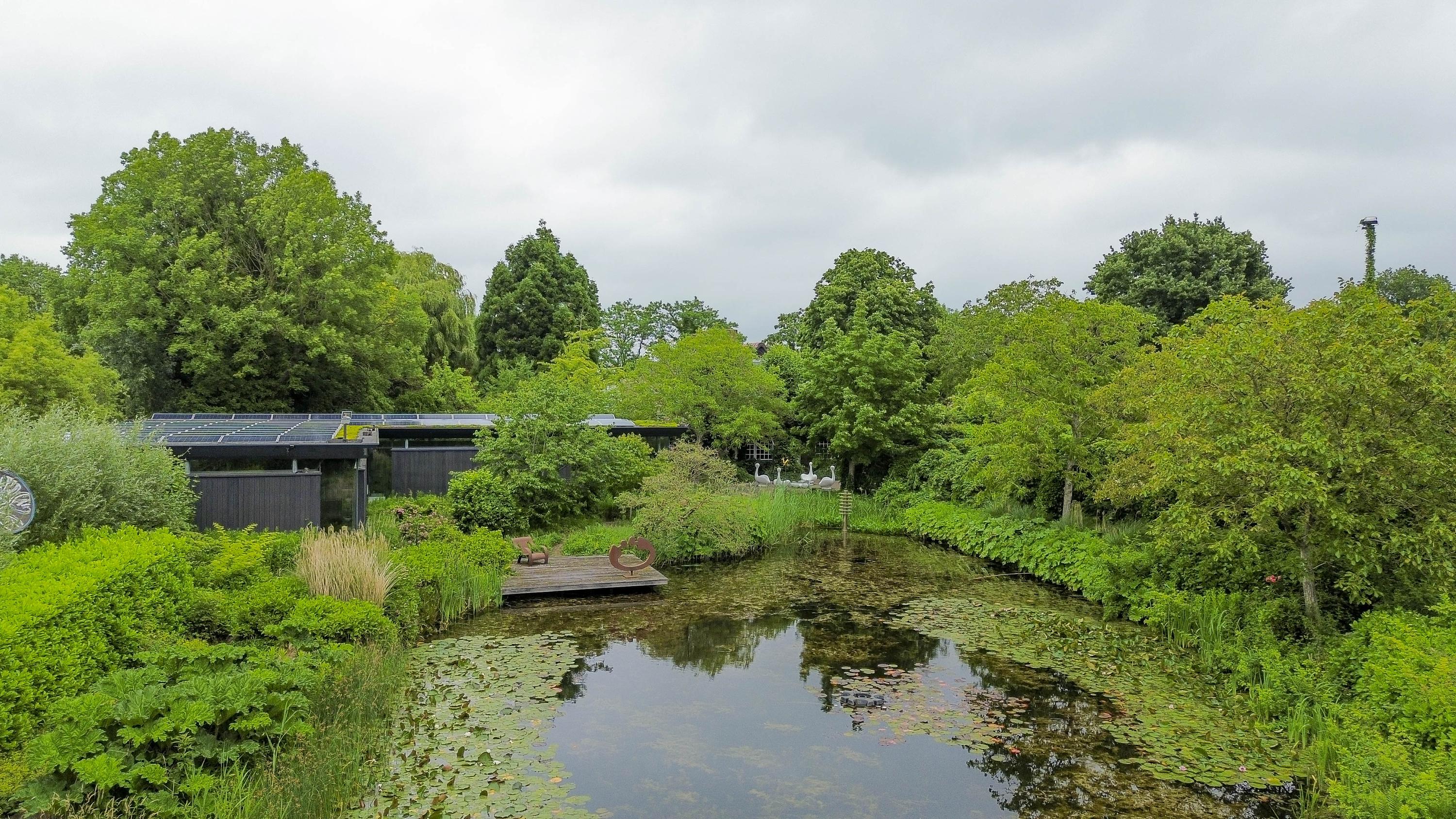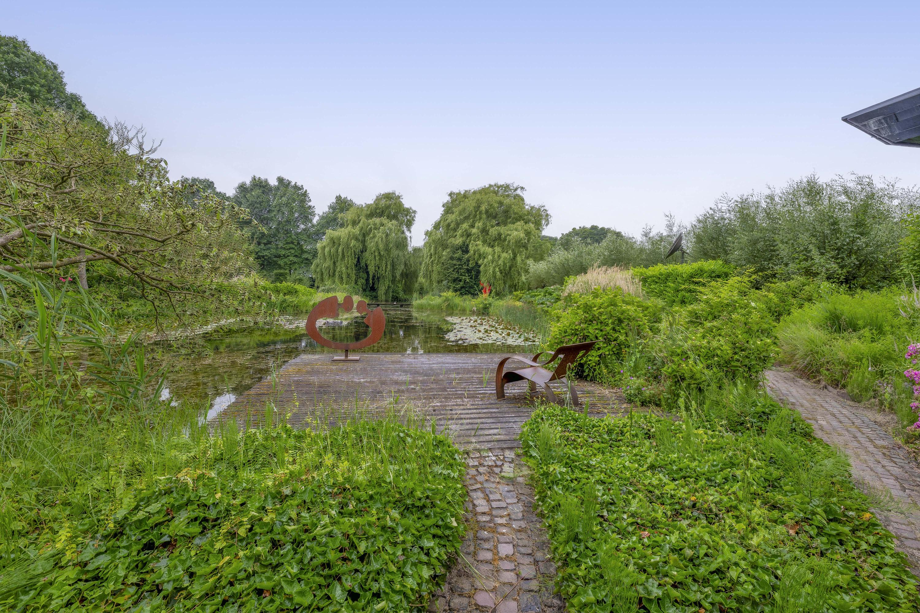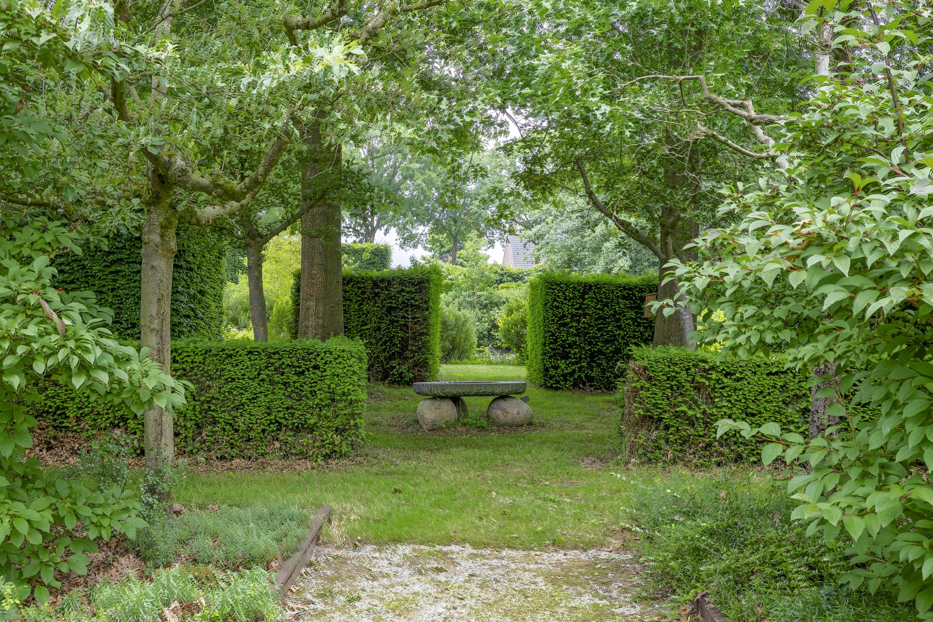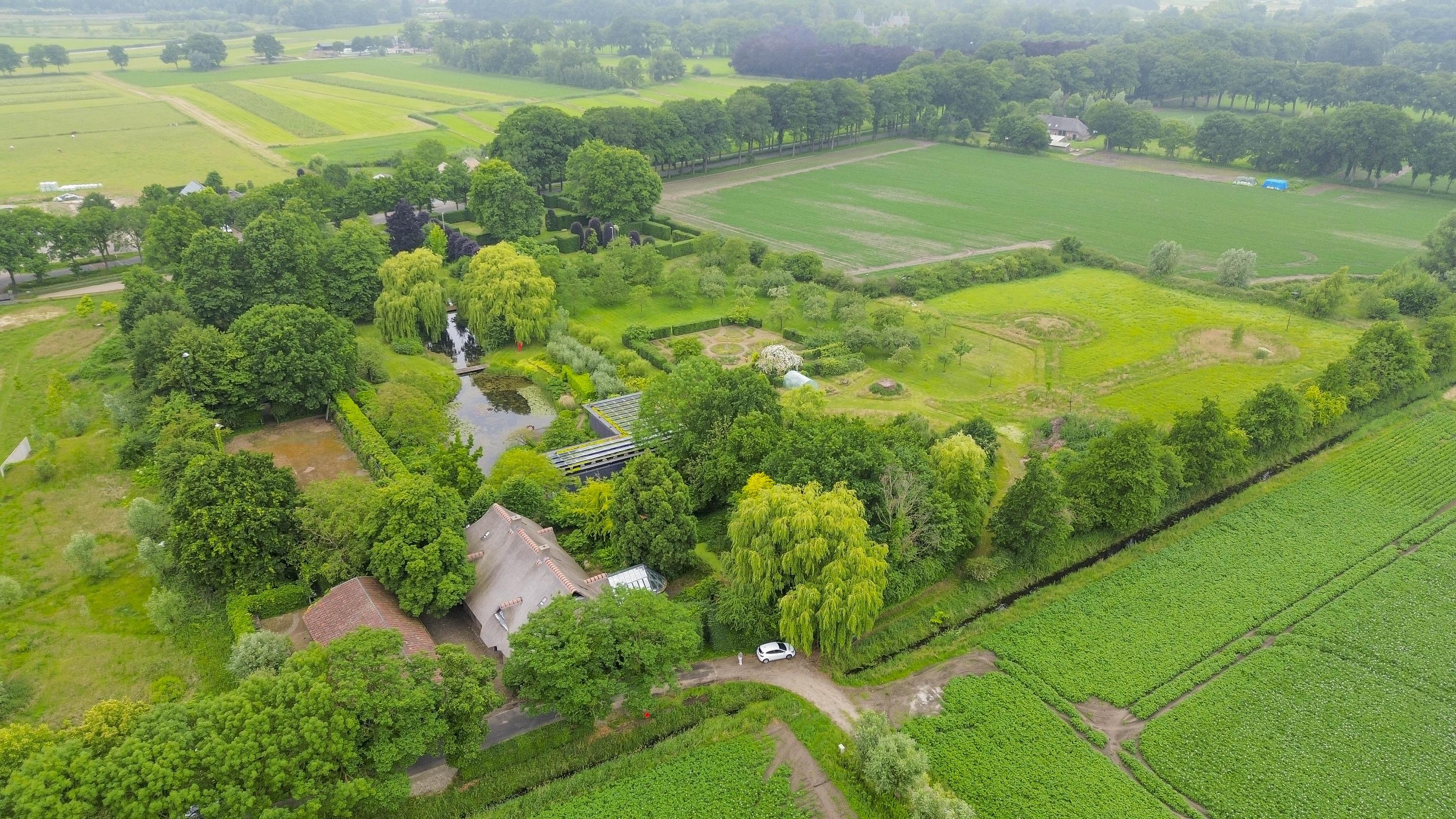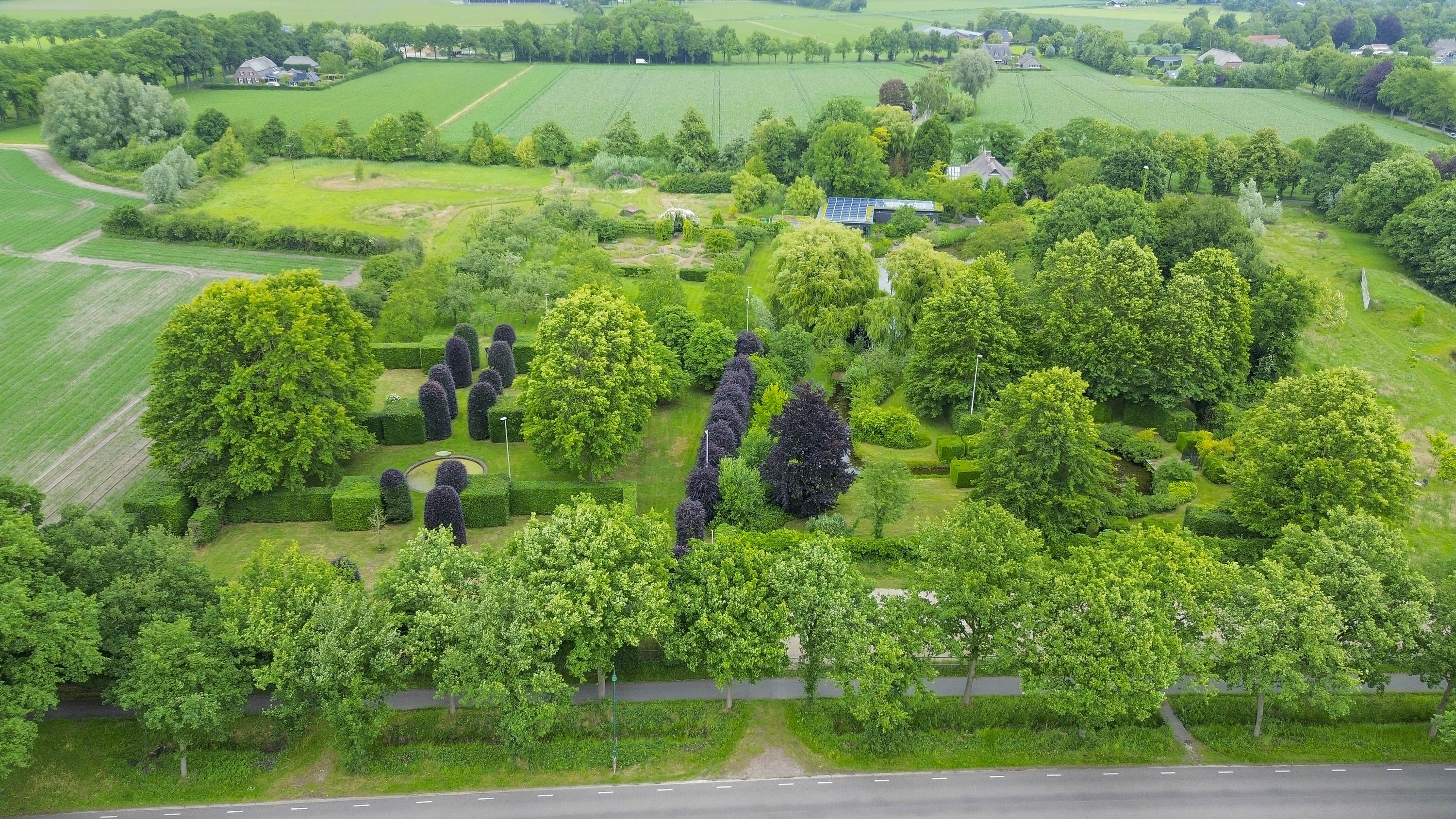 of the garden – a soothing spectacle that impresses all year round. Explore the garden via various paths and discover something new around every corner: from stately hedges to shady trees, a herb garden, a field of sunflowers with a stork's nest and a helicopter tip, and various borders. Enjoy the lawn, a beautiful willow lane, apple tree lane, water features, pear arbour, wisteria arbour and playful borders that together create an idyllic atmosphere.