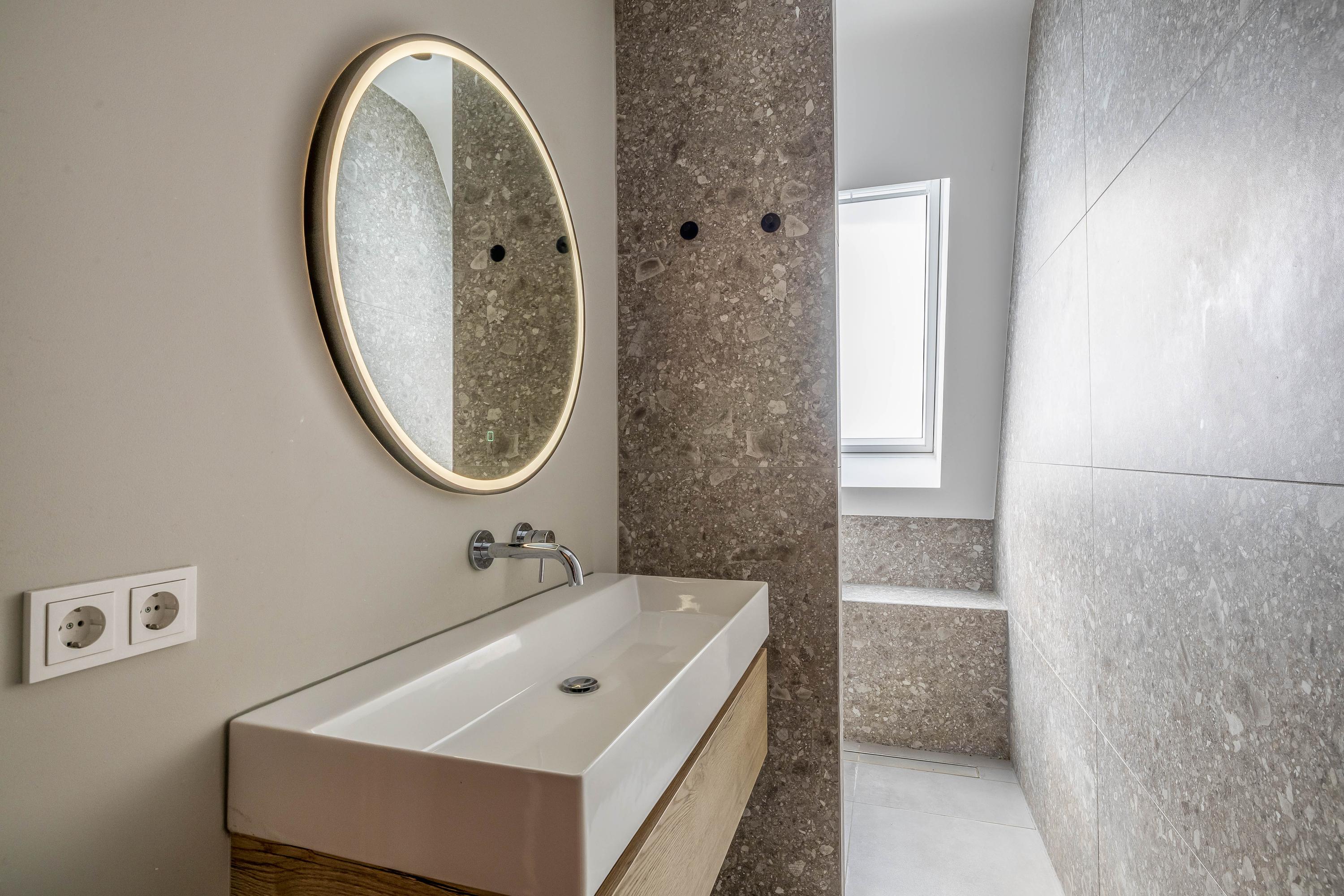The first floor is reached via a spacious landing with a mezzanine, inviting you to discover the three bedrooms. The expansive master bedroom with a walk-in closet also offers direct access to a luxurious, private bathroom. On the other side of this floor, there is a separate toilet, various storage spaces, and a second stylish bathroom. Here, every family member or guest finds the room and comfort they deserve.
