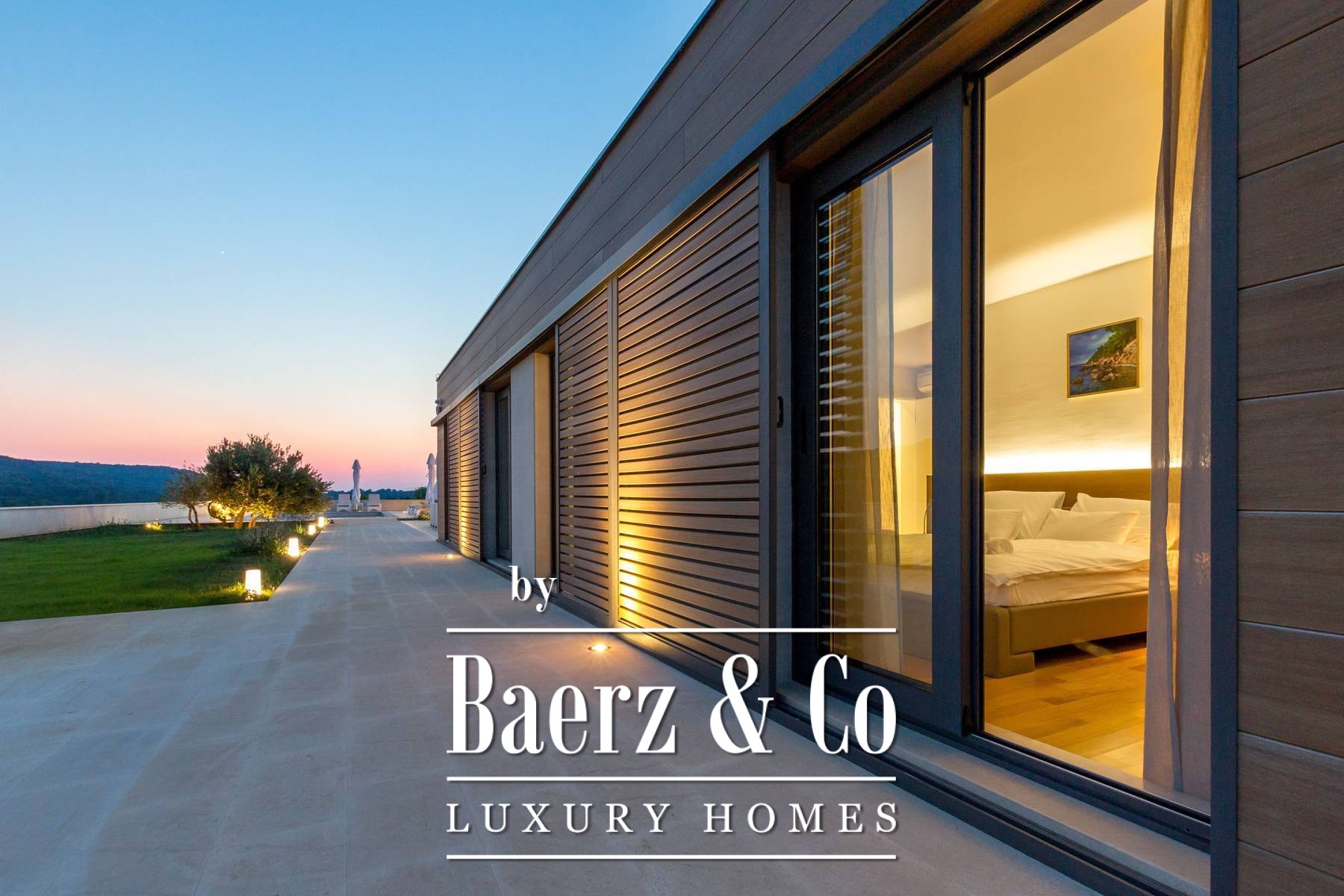 This amazing villa was built in 2014 and is located in a secluded location in the village of Zastražišće on the island of Hvar. It is positioned on a plot of 33,409 m2, while the total land area is 148,083 m2. In addition to complete peace, a view of the sea and untouched nature, it also offers an outdoor pool, tennis court, barbecue, hot tub, wine cellar, sauna and gym - in short, everything you could want for complete rest and enjoyment.The ground floor of the building consists of a living room, a kitchen with a dining room,