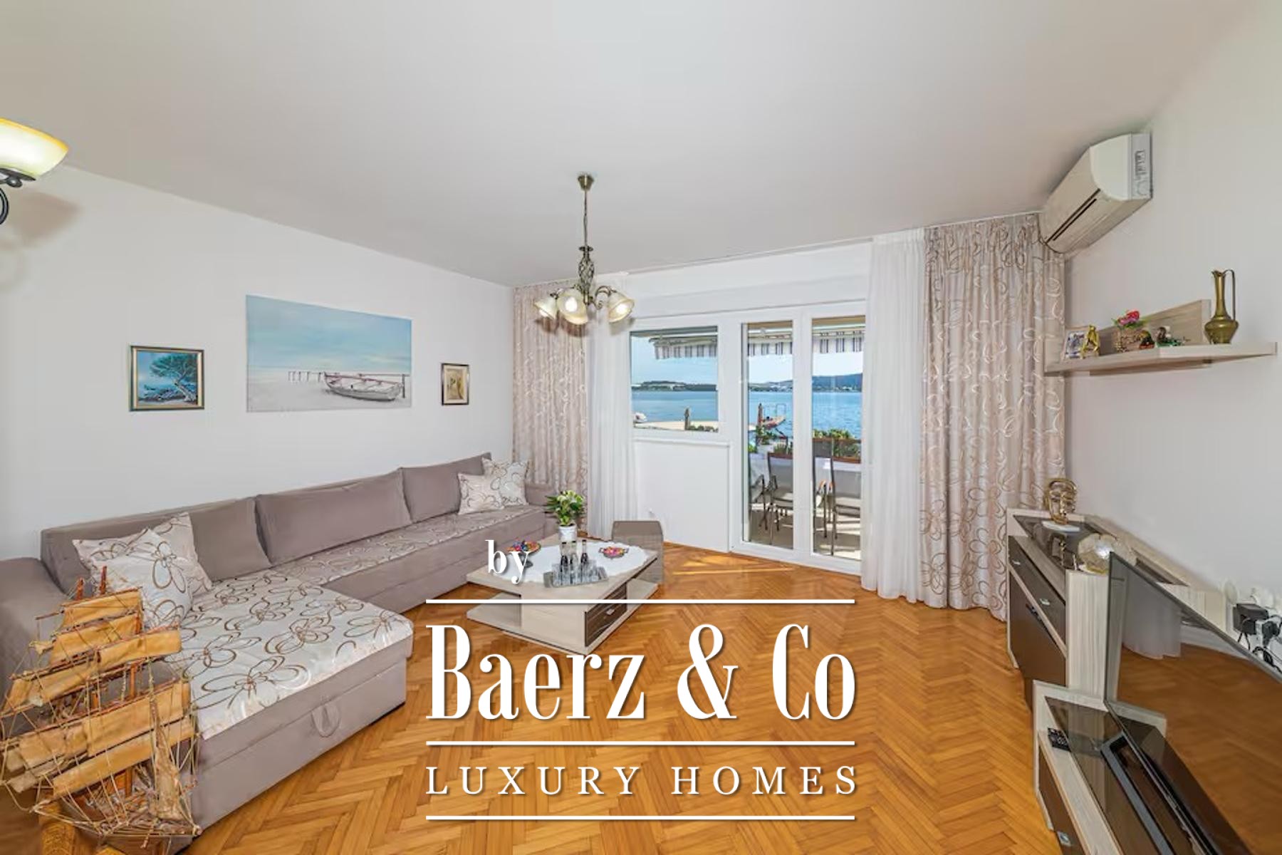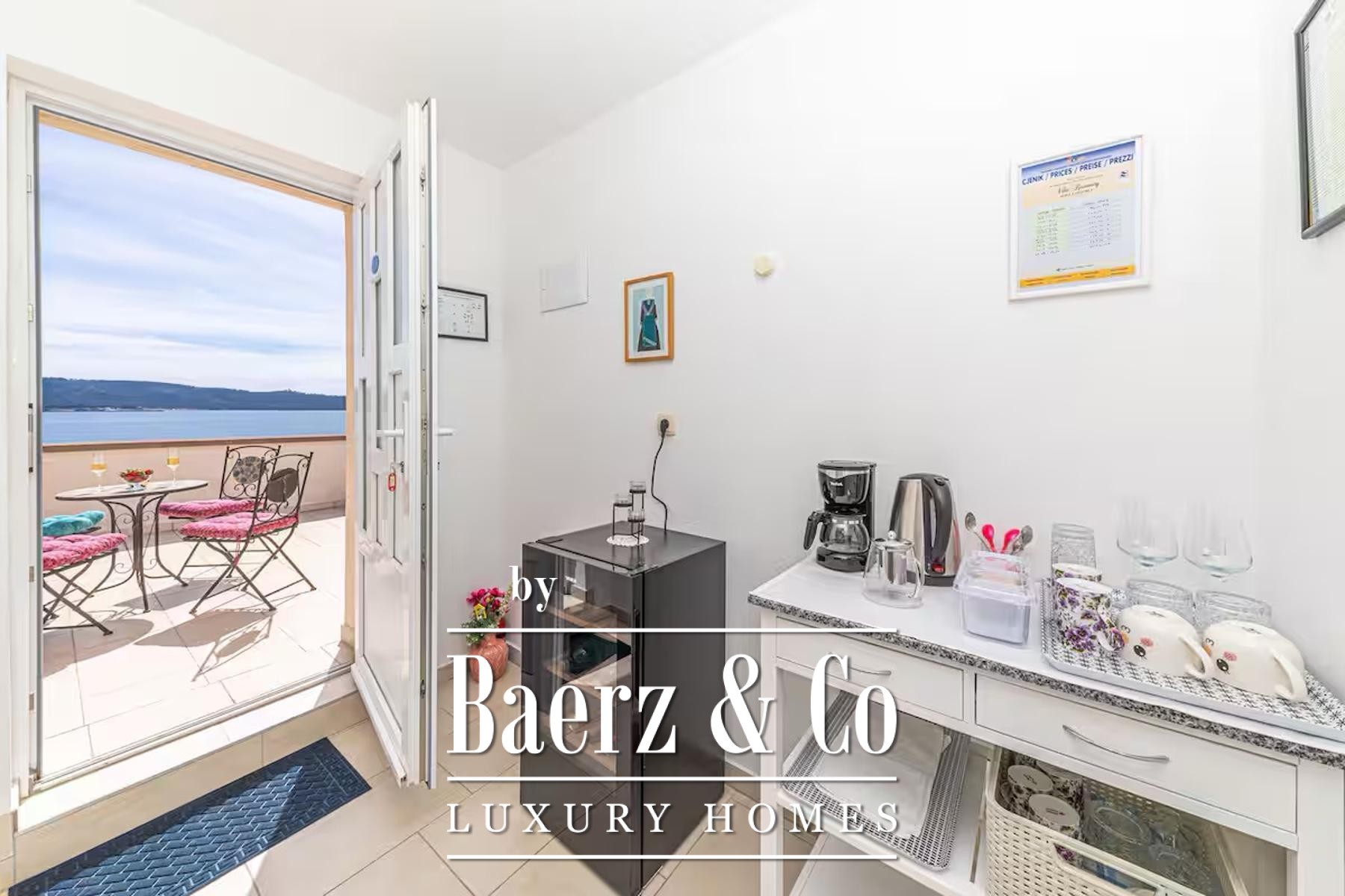 Kaštel Sućurac, a beautiful house with a private pool in the first row to the sea.It is located on a fenced plot of 739 m2 and is divided into four floors.In the basement there is a garage with a parking space, a storage room and an air-conditioned section with fitness equipment, table tennis and billiards.The ground floor has three bedrooms, two bathrooms, a kitchen with a dining room, a living room and a spacious terrace with outdoor furniture for socializing.On the first floor of the building there is a two-bedroom apartment of 88 m2 in the unfinished