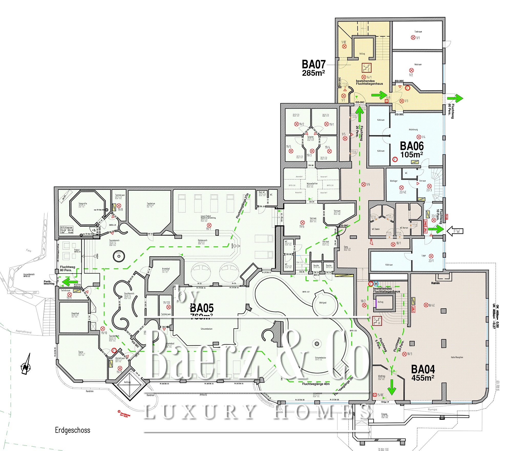 The existing building comprises a former 4-star superior hotel, currently closed, with a solid structure including extensive technical and storage areas, two stairwells, and three elevators. Facilities such as a wellness area, an indoor pool, a beauty and fitness space, and a substantial restaurant with a professional kitchen create a versatile platform for future-oriented concepts.