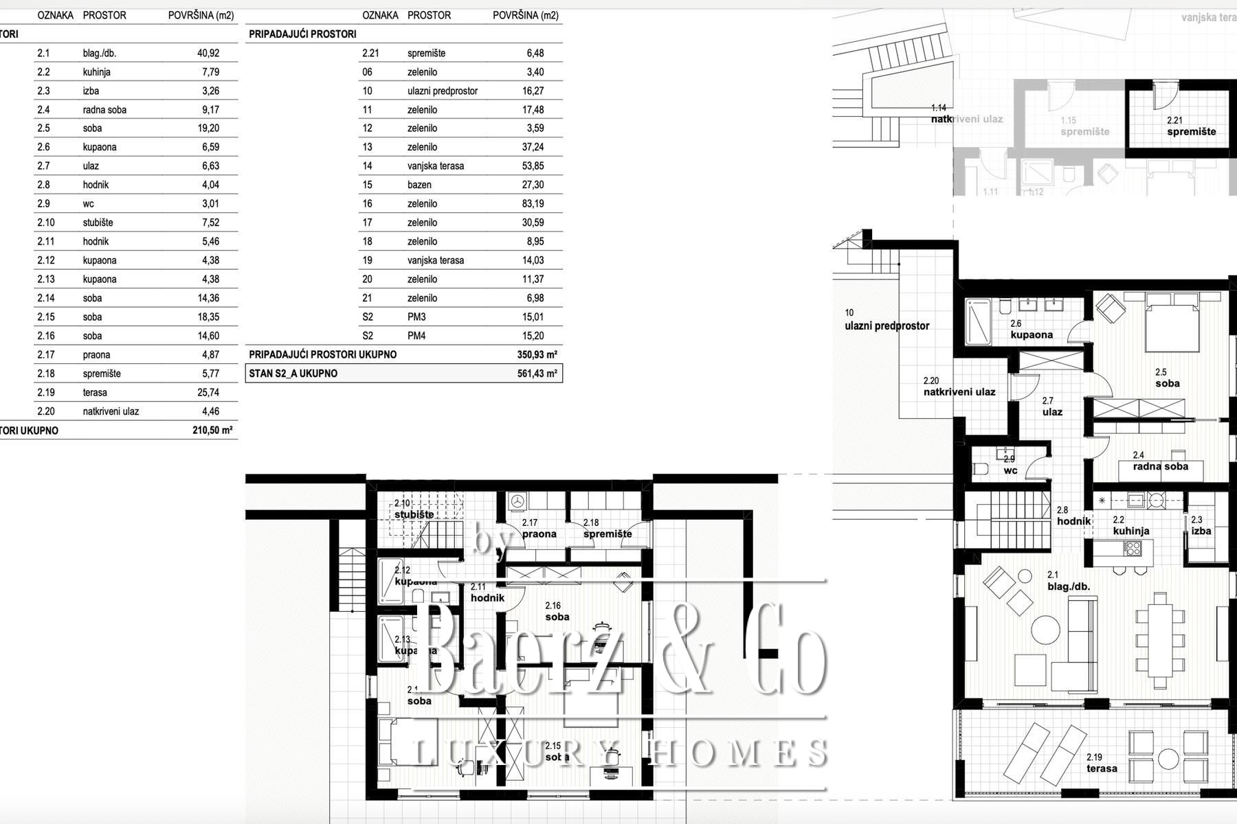 This apartment Kostrena unfolds across 251.58 m² in an elegant new building, offering a rare blend of contemporary architecture and calm coastal living. Spanning two levels, the residence reveals five discreetly structured bedrooms and five bathrooms, with each space shaped for light, privacy, and open connection to the outdoors. The main living area and dining space, totaling 40.92 m², merges seamlessly with a modern 7.79 m² kitchen, creating the heart of the home for gatherings and quiet evenings alike.