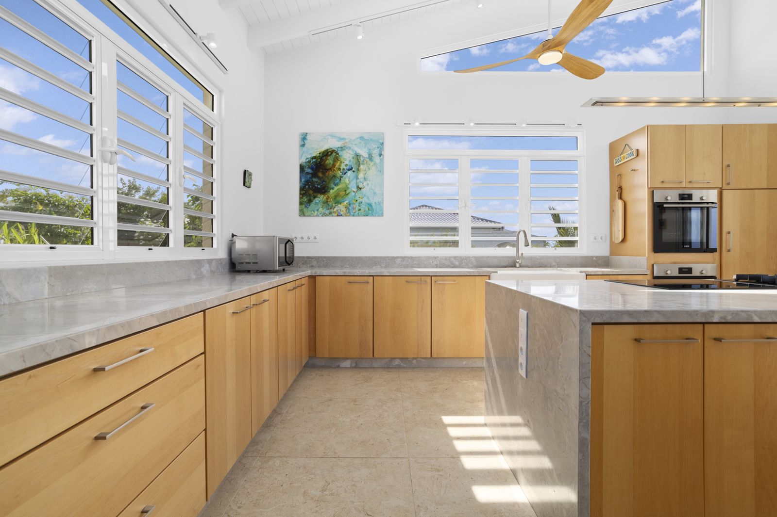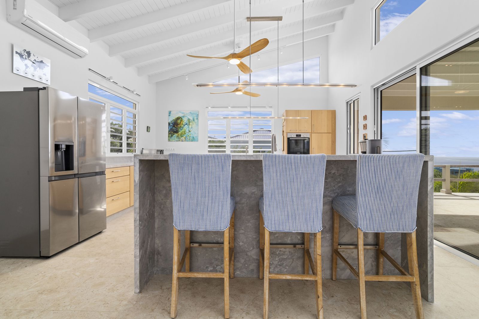 Set on a generous 2,127 m² parcel, the residence offers approximately 245 m² of modern living space designed for effortless island living.