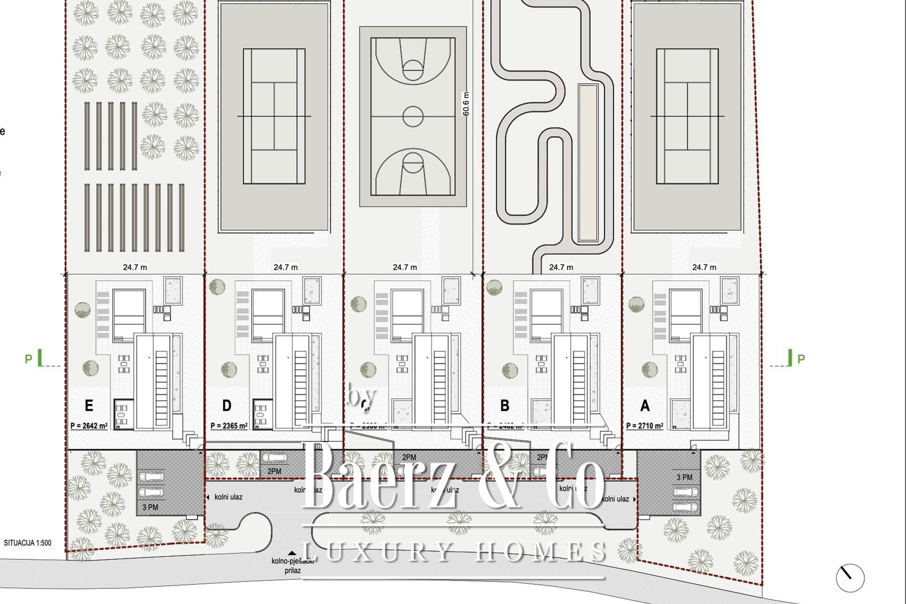 Villa Labin blends contemporary architecture with the tranquility of landscaped grounds. This villa, set across 200 m² of living space and situated on a 2,402 m² plot in Labin, offers a deliberate balance between openness and privacy, only minutes from the historic centre. The main level unfolds with a covered entrance, a wardrobe area, and a fluid open plan living room, kitchen and dining space of 65 m². Light pours into the interiors, connecting seamlessly to a 19 m² covered terrace and a further uncovered outdoor area, ideal for both quiet moments and gatherings. The villa’s ground floor integrates functional storage, a guest toilet, and a dedicated sauna and fitness area, leading to a summer kitchen and a heated swimming pool of 48 m² with a massage zone.