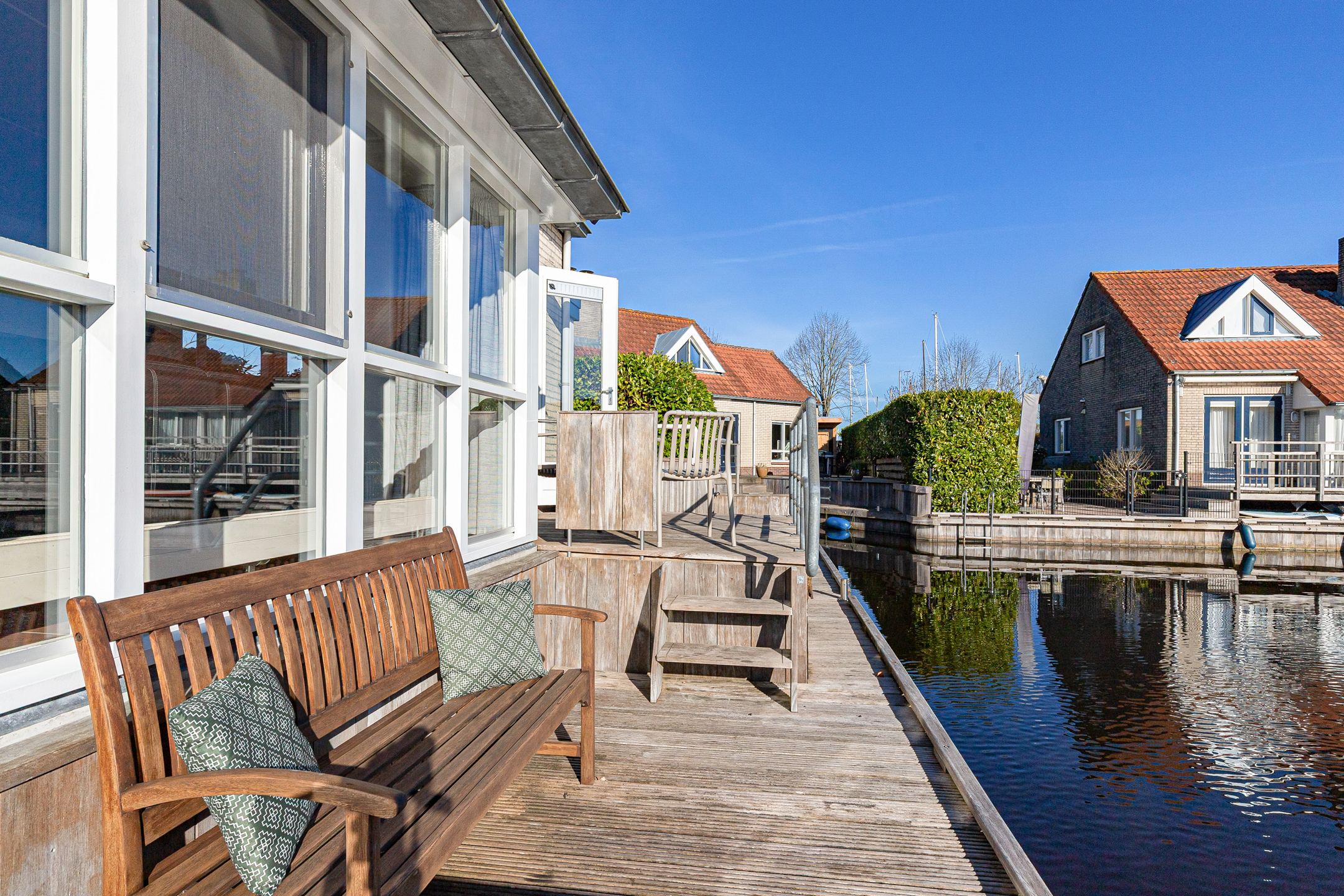 This waterfront house in Langweer captures the essence of waterside living—balancing discretion and ease with the freedom of direct water access, all in an atmosphere of understated luxury.