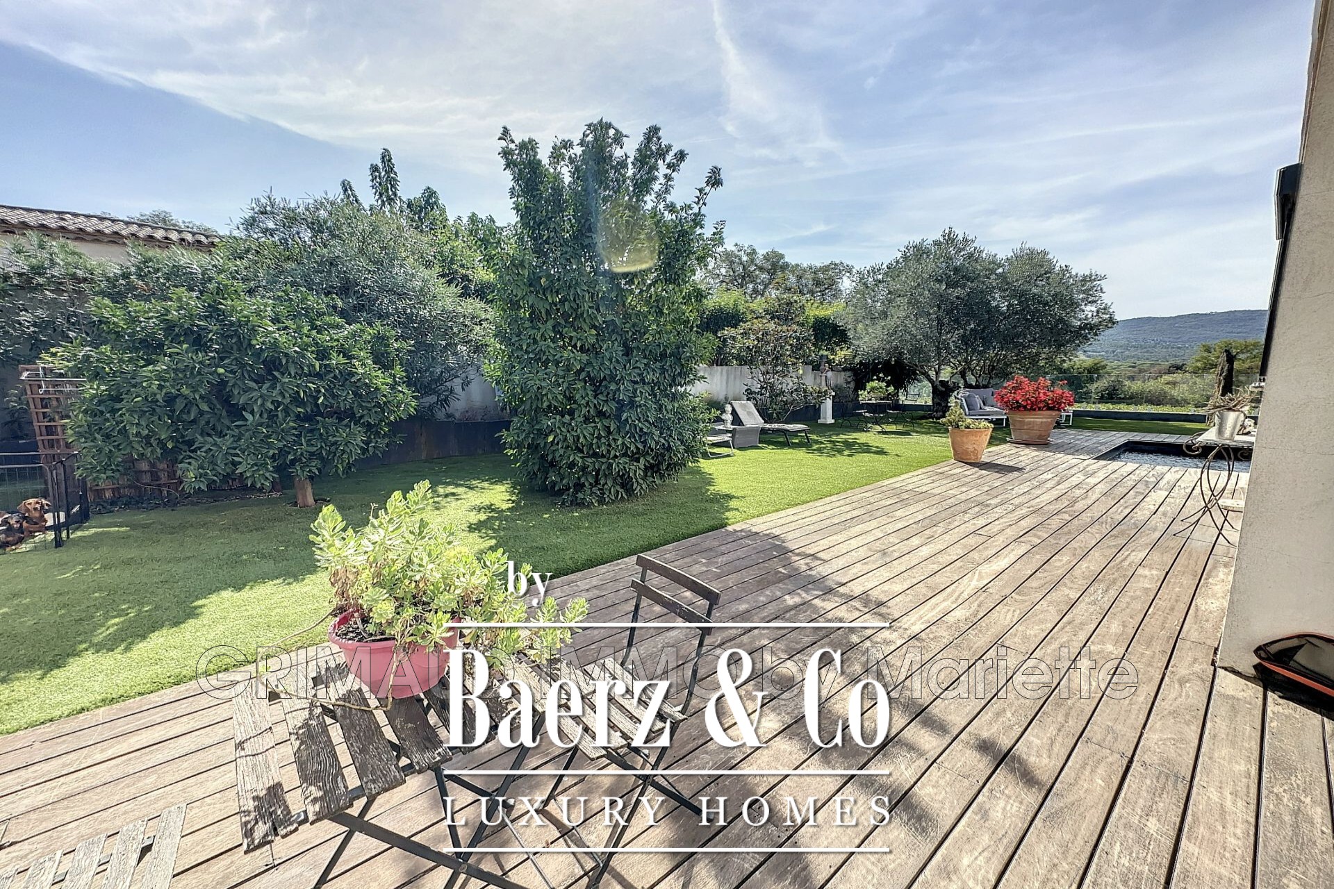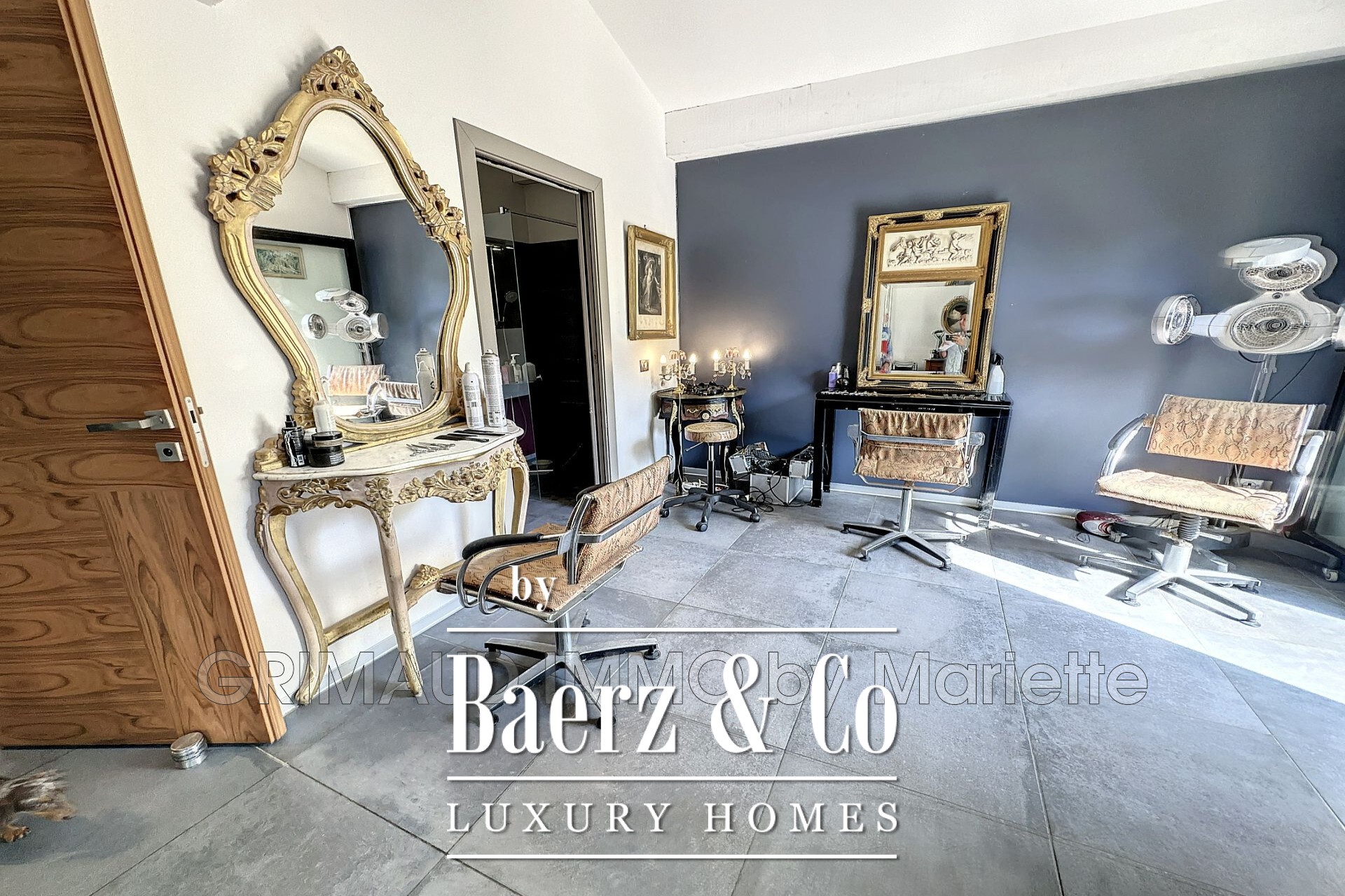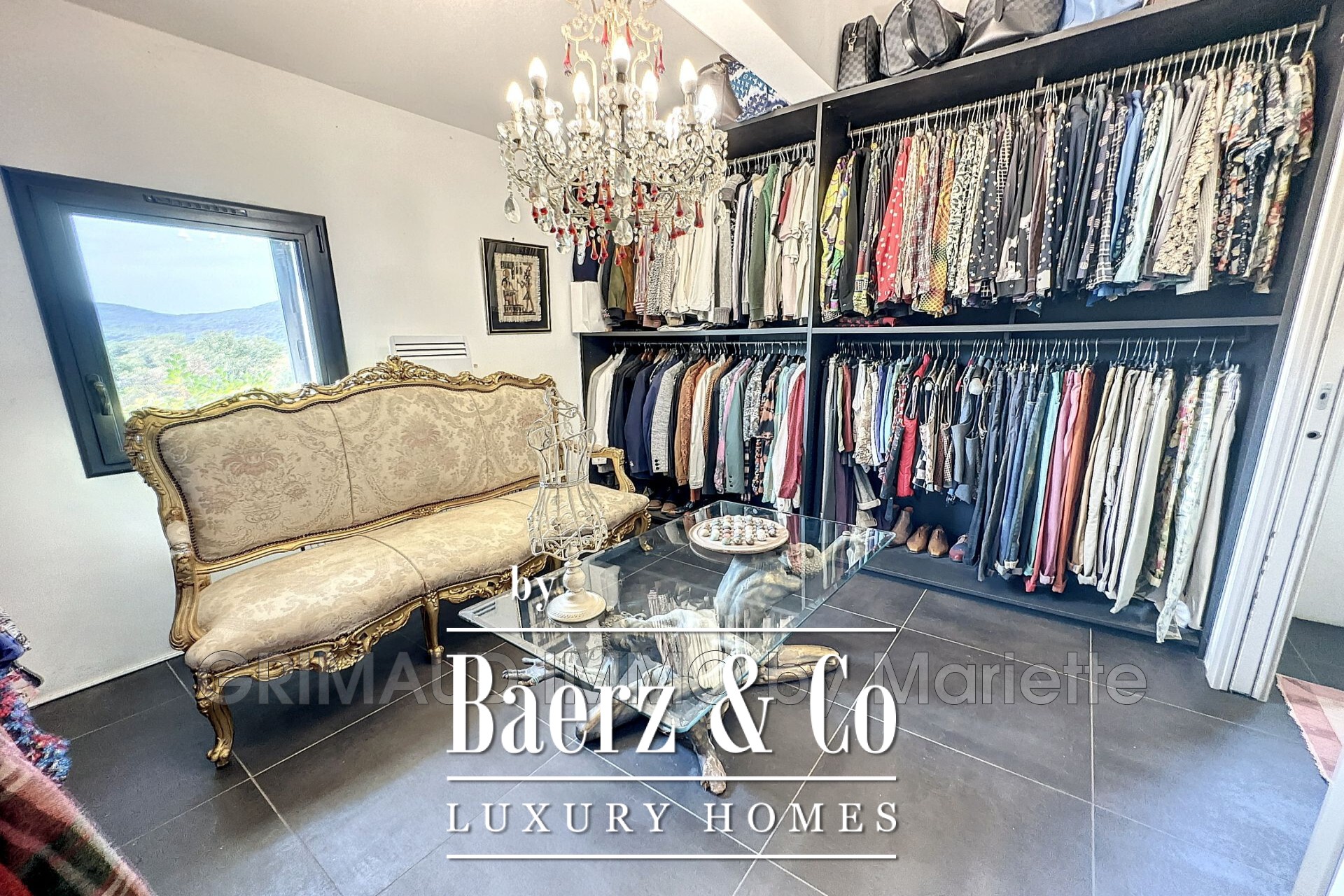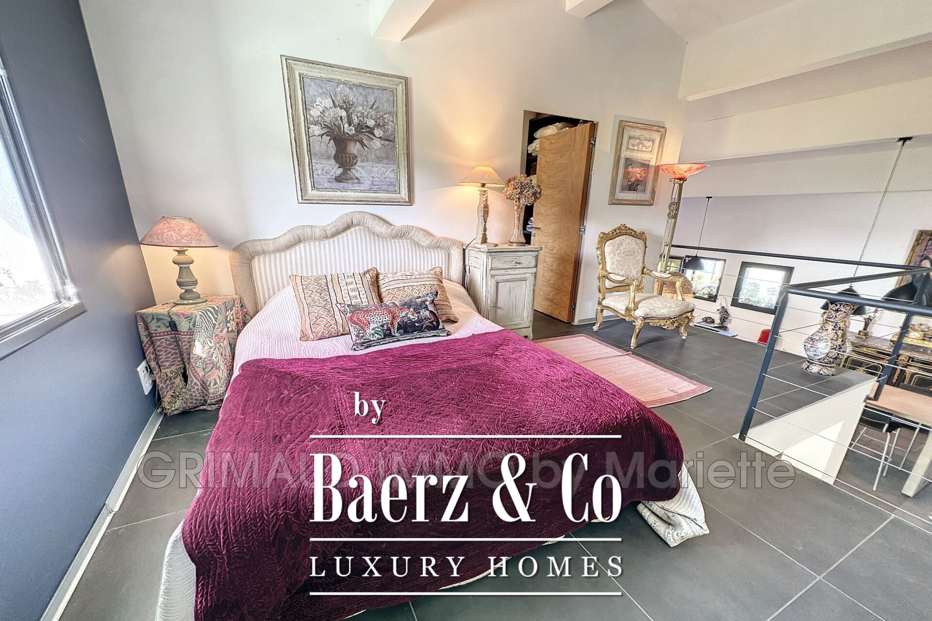 as well as a shower room with a toilet. The master suite includes its own bathroom with a toilet and a walk-in closet. Another bedroom with a mezzanine also benefits from its own shower room with a toilet. Outside, a magnificent 14-meter swimming pool awaits you, along with ample parking, a garage, and a laundry room. For more properties, visit our website: www.grimaudimmo.com