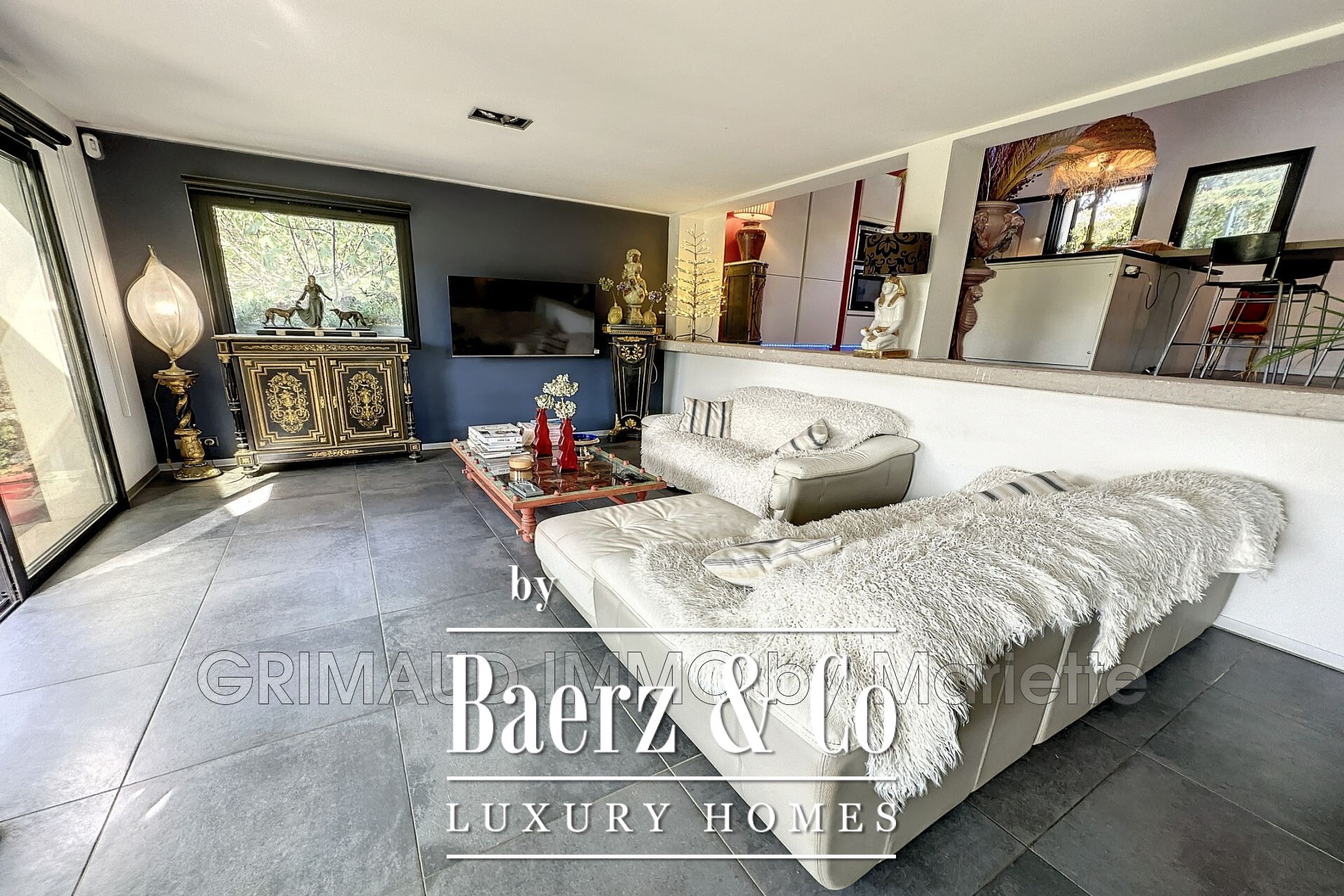 In a peaceful setting with stunning views of the vineyards, this recent villa offers 172 m² of living space on a plot of approximately 1,020 m². It features an entrance leading to a spacious, bright living room with a fully equipped open kitchen, opening onto the garden and terrace. On the mezzanine, there is an office area, a lovely bedroom currently used as a dressing room,