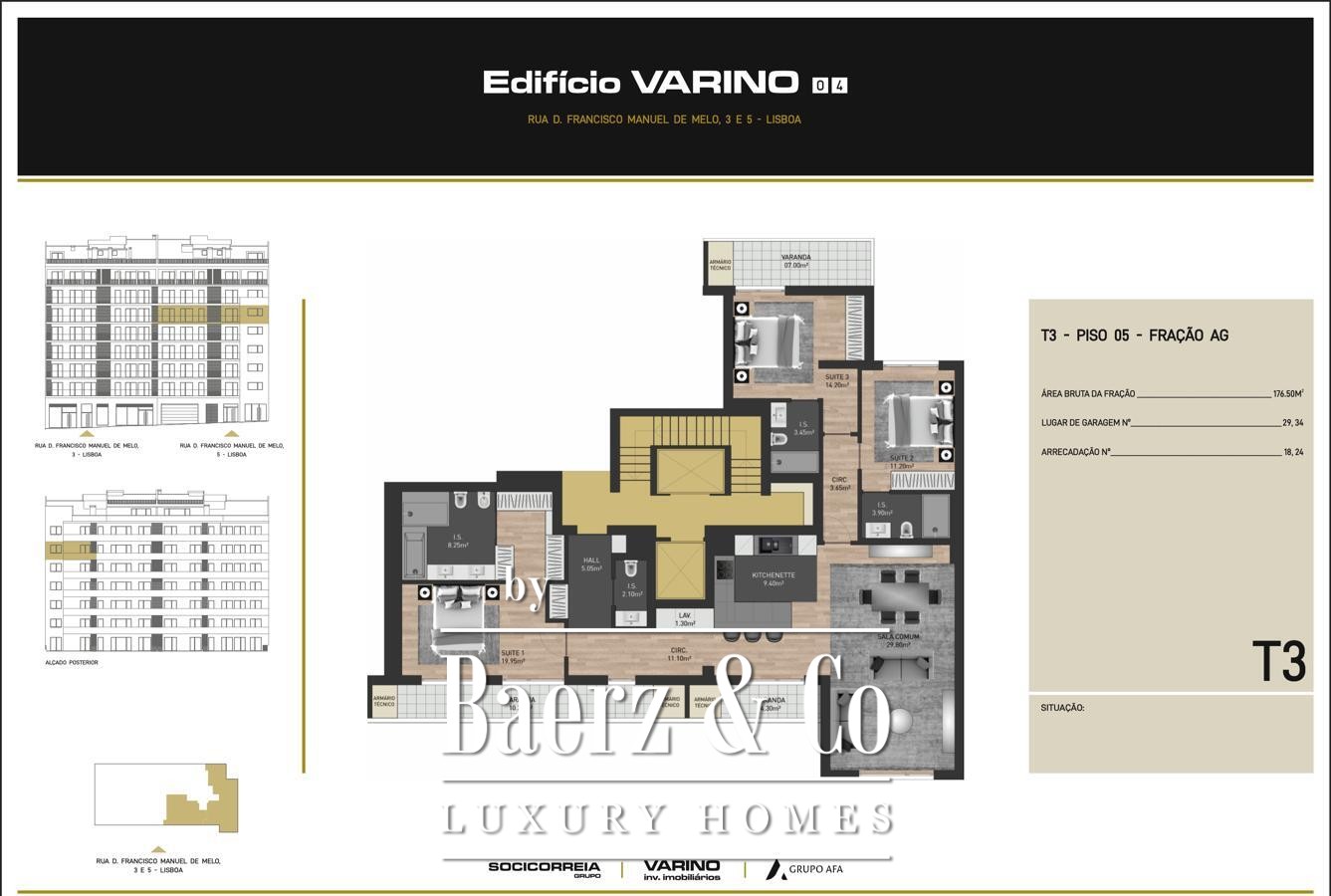 Apartment Avenidas Novas Lisbon commands an exceptional address at the heart of the city, beside the calm expanse of Eduardo VII Park. This apartment, completed in 2024, offers a distinctive three-bedroom configuration, each suite designed for comfort and privacy, spanning a gross private area of 176.5 m². The floorplan reflects thoughtful design, with a large open-plan living and kitchen area, four bathrooms and seamless transitions between spaces that invite both relaxation and social gatherings.