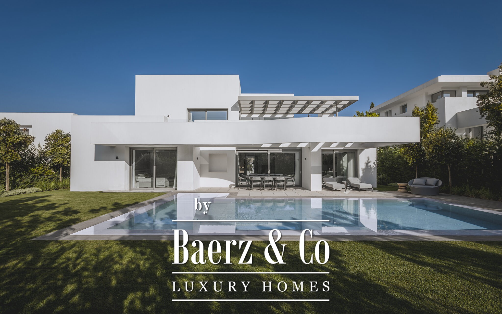 Villa Marbella in El Paraiso offers a tranquil and sophisticated setting among the Andalusian hills, surrounded by the exclusivity of a select gated community of just nine residences. This villa, with 626 m² of living space set upon an 808 m² plot, is designed for those seeking seclusion and easy proximity to Marbella, Estepona, and the coast. Villa Marbella in El Paraiso presents clean lines and generous south to southeast orientation, ensuring interiors are flooded with natural light. Floor-to-ceiling glazing connects open-plan living spaces and a sculptural, high-end German kitchen to terraces, private landscaped gardens, and a personal swimming pool. Each bedroom features en-suite bathrooms, elegant wood flooring, and muted, contemporary finishes—combining Villeroy & Boch fixtures, grey marble tiling, and thoughtful lighting. The residence privileges comfort and refinement, with amenities such as underfloor heating, hot and cold air conditioning, home automation, and a fireplace. Two covered parking spaces, intelligent movement sensors, and a multi-purpose basement—ideal for a gym or cinema—complete the offering. The surrounding El Paraiso enclave is serviced by renowned golf courses, international schools, boutiques, and fine dining, supporting a pace of life defined by discretion and access.