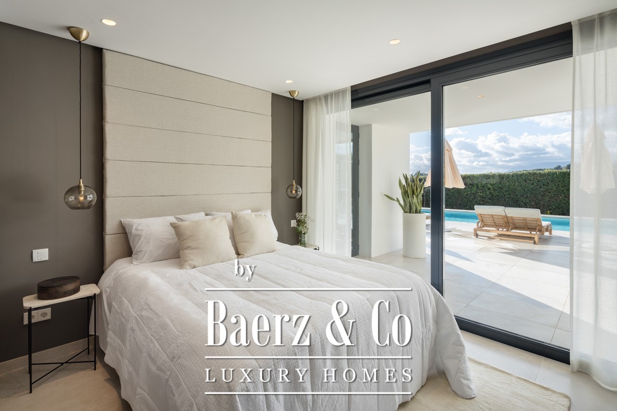 Villa Marbella Frontline Golf Nueva Andalucía embodies the rare confluence of modern design and privileged location. This contemporary six-bedroom, four-bathroom villa spans 342 m², set on a 1,090 m² plot. Sunlight fills expansive open-plan interiors, where each line and surface reflects refined sensibility. Private terraces flow outward, framing views across the golf course and surrounding mountains. The solarium, complete with jacuzzi, invites unhurried afternoons while the private pool and BBQ terrace encourage gatherings or quiet respite.