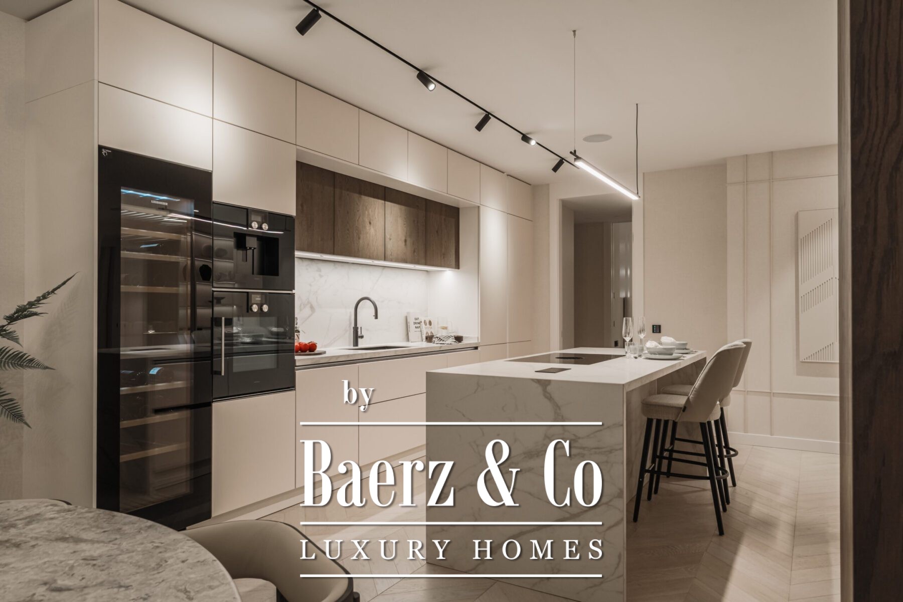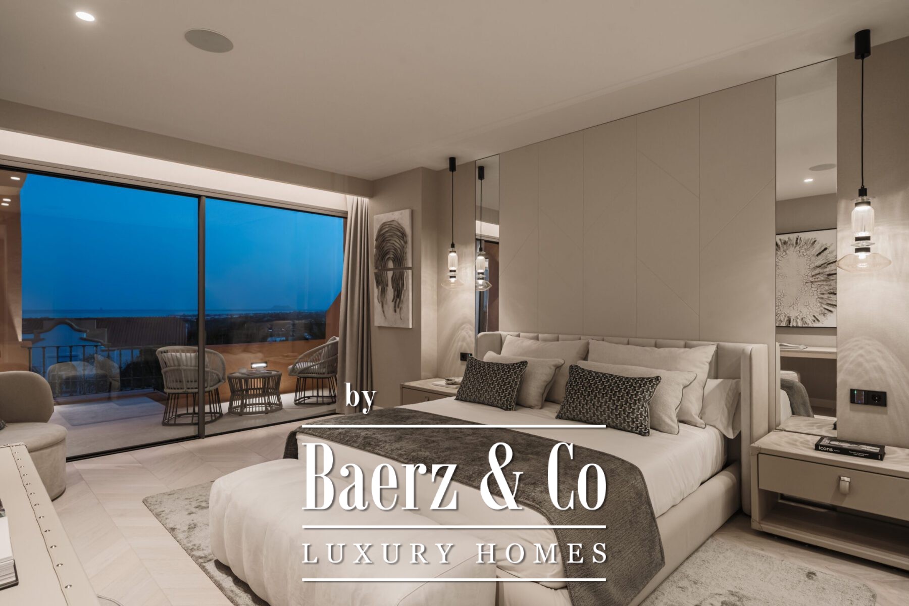 Within this secured, gated enclave with 24-hour security, the four-bedroom, four-and-a-half-bathroom home reveals refined details. Floor-to-ceiling windows illuminate the open living and dining space, seamlessly extending to a spacious terrace designed for tranquil hours or entertaining under the Marbella sky. The kitchen is appointed with Gaggenau appliances, complemented by natural oak floors and an intuitive smart home system, underlining discreet luxury and ease.
