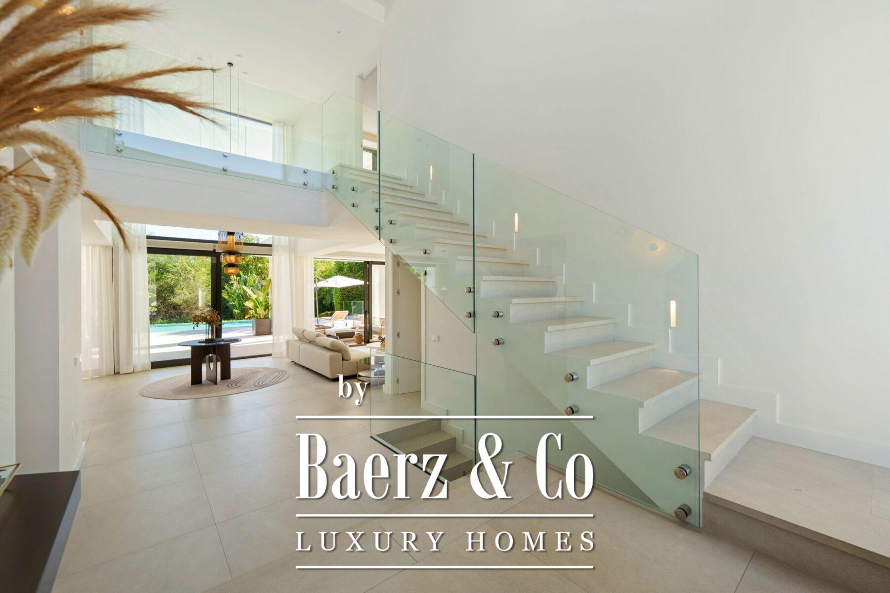 Set within a 24-hour security gated community, this villa complements its serenity with a private garage, advanced amenities, and proximity to golf, the renowned Puente Romano Hotel, and Marbella Club Hotel. The residence delivers the essence of the Marbella lifestyle, blending privacy and sophistication with rare access to both urban vitality and tranquil indulgence. For those seeking a luxury villa for sale in Marbella’s Golden Mile, this property offers a rare union of architectural clarity and luminous southern living.
