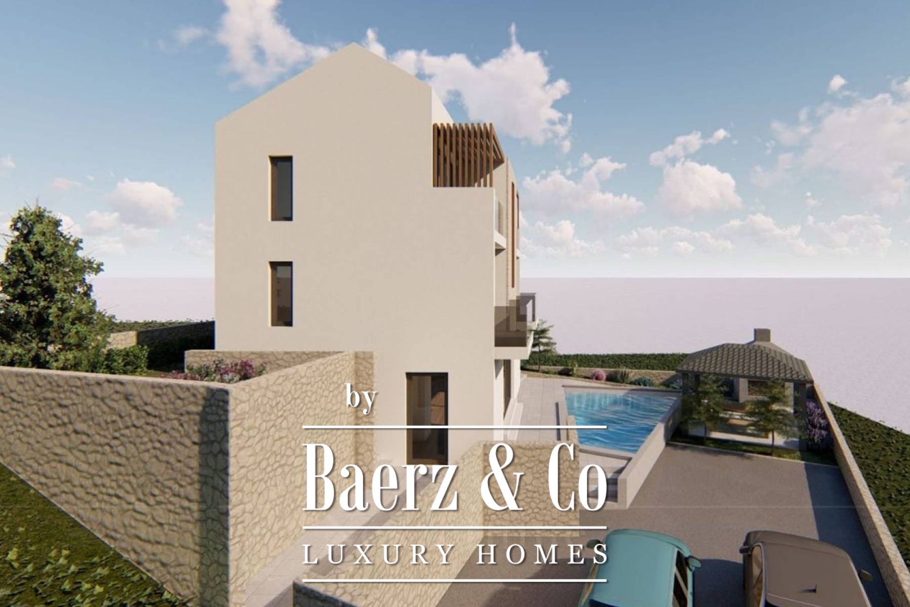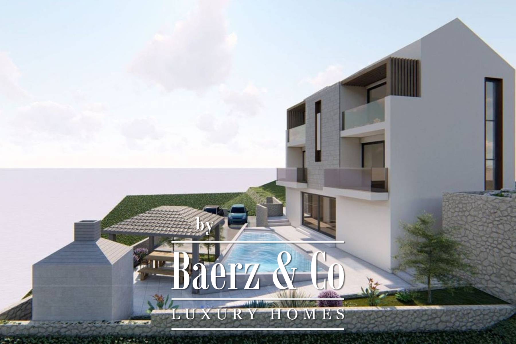 Completion is projected for the end of 2026, offering the new owner the possibility to tailor interior details to individual preferences. This luxury villa for sale in Marina, Croatia, presents a measured retreat steps from the beach, balancing privacy, contemporary design, and unfiltered sea outlooks.