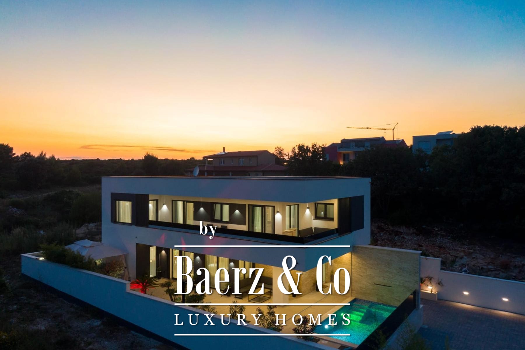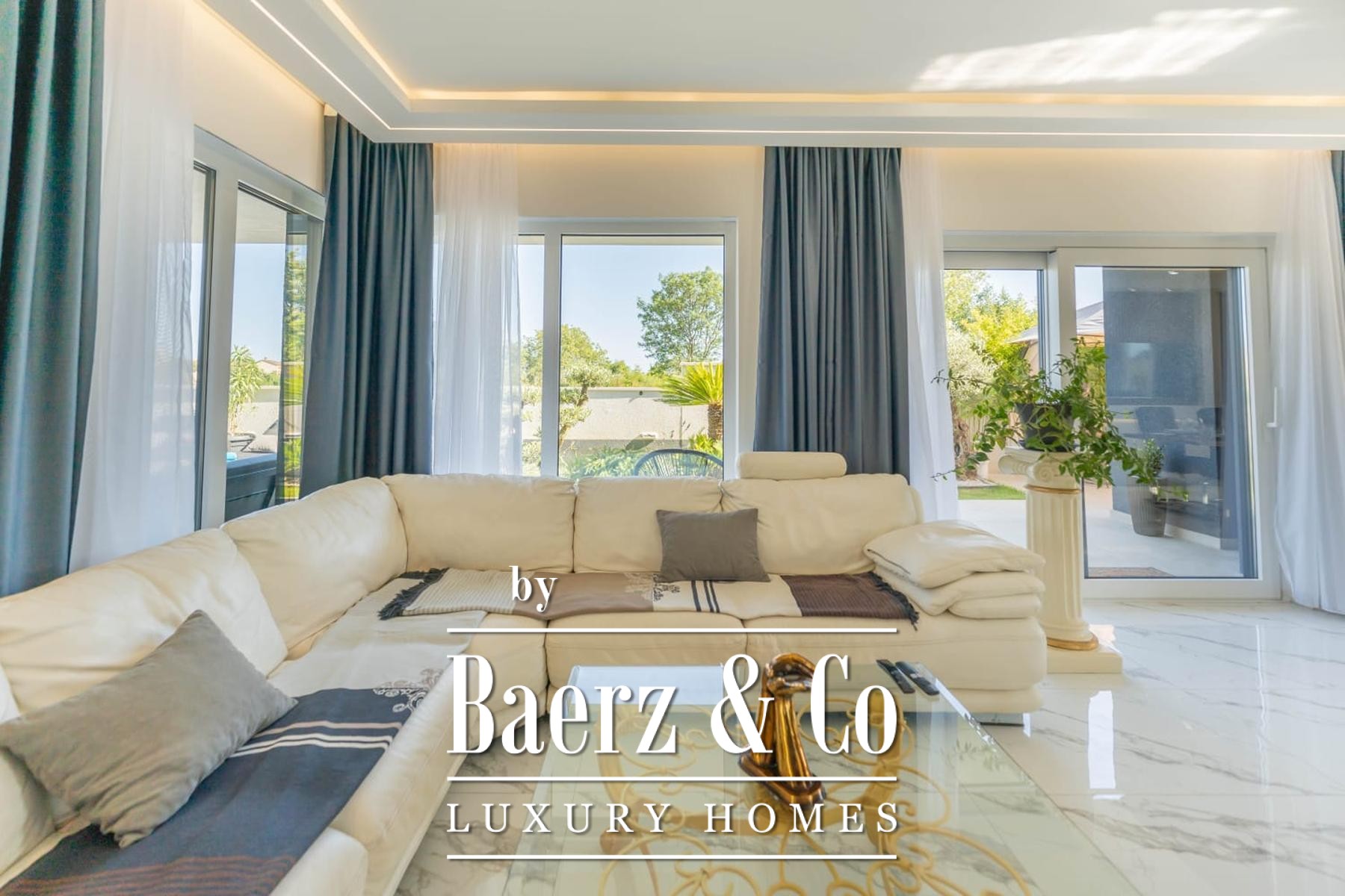 Townhouse Medulin is a contemporary villa set in one of Istria’s coveted coastal enclaves. This newly constructed residence, completed in 2024, occupies a 450 m² plot just 400 metres from the Adriatic, with a thoughtful south orientation ensuring sunlight throughout the day. The townhouse Medulin spans 200 m² across two levels, offering a seamless interplay of indoor and outdoor living. Inside, a state-of-the-art kitchen anchors the open ground floor, flowing into an expansive living space. Generous glazing invites natural light and frames views of verdant landscaping, while providing direct access to a covered terrace and an inviting pool. The outdoor space features a tranquil ambiance, complete with a stone-wall waterfall, curated tropical foliage, a summer kitchen, and barbecue area, all curated for privacy and ease.