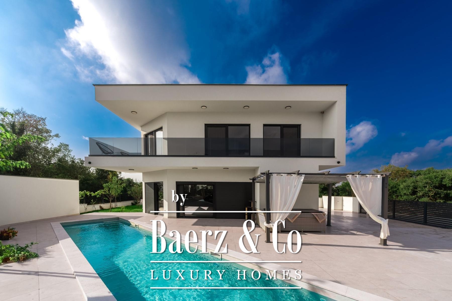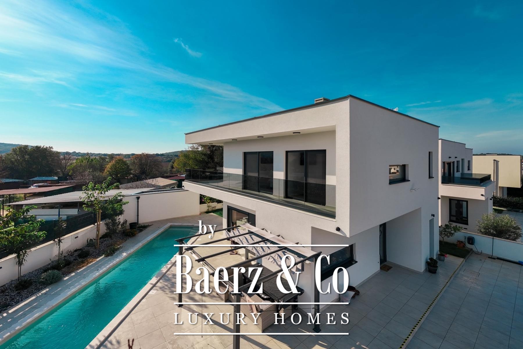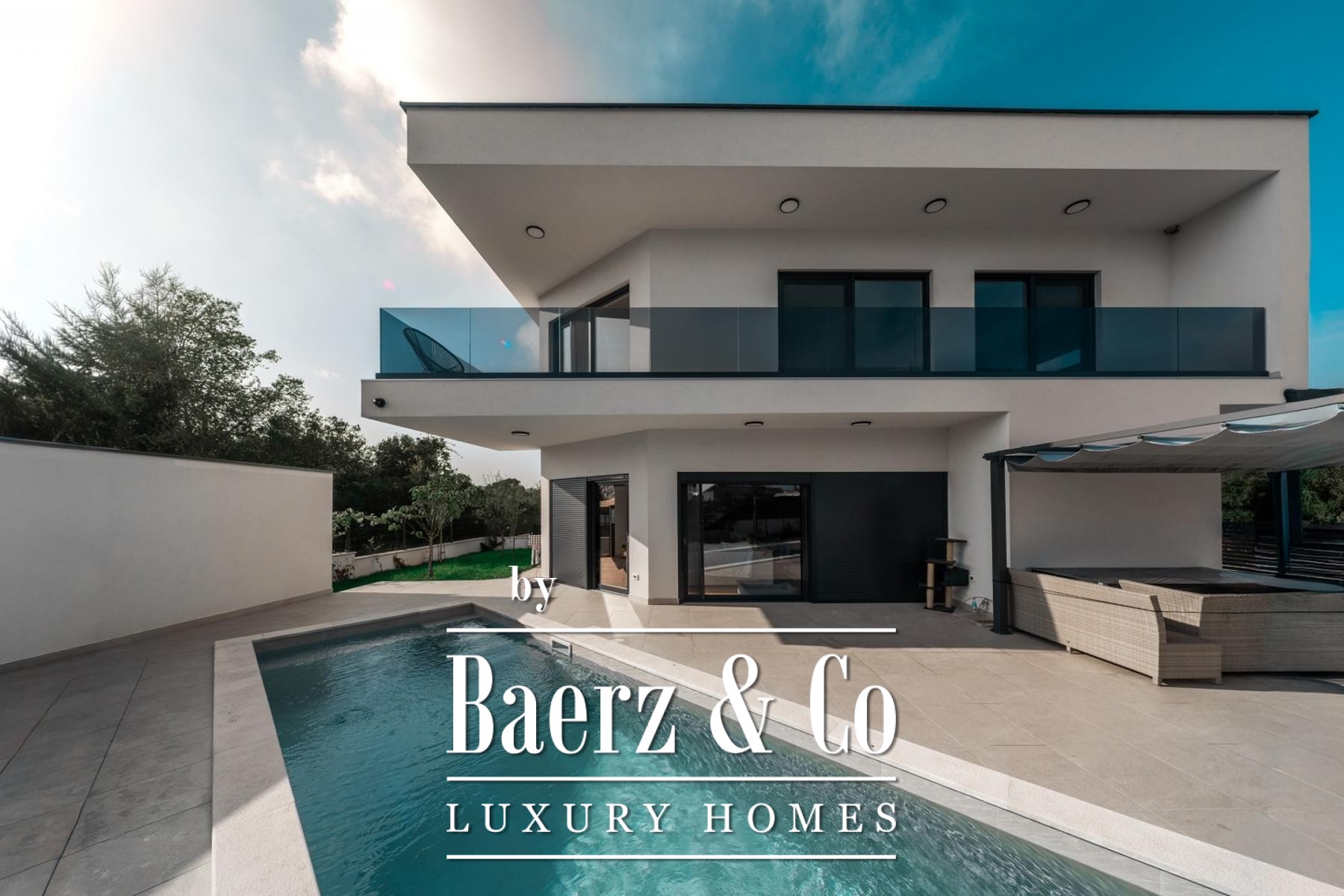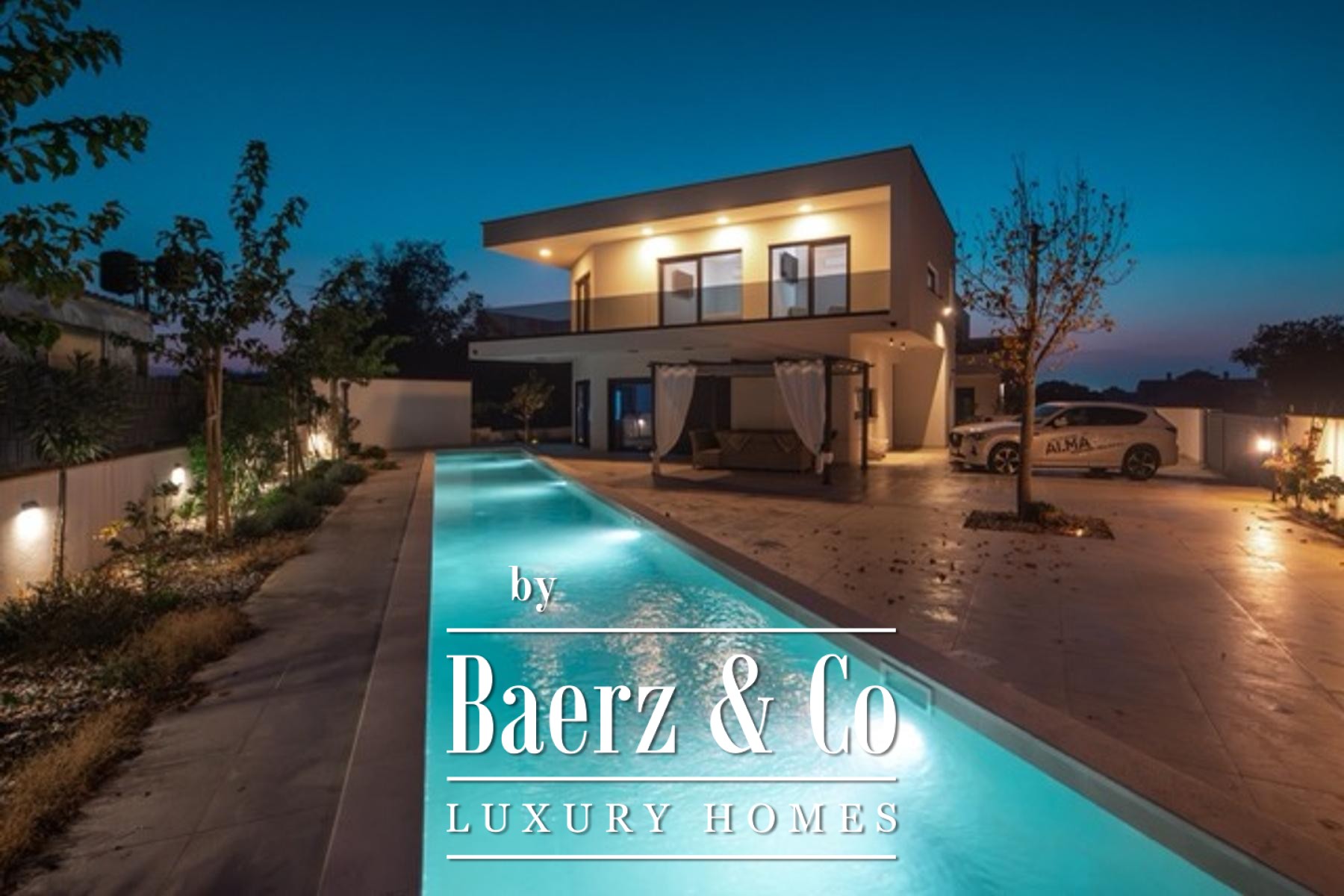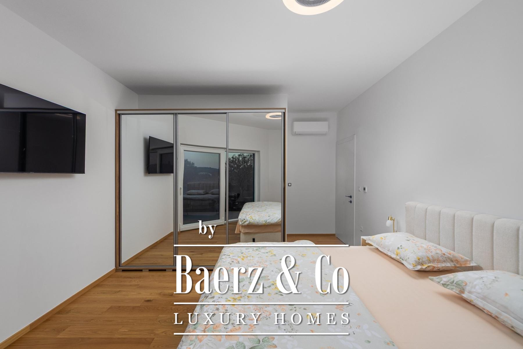Outdoors, a 4 by 4 meter pergola, summer kitchen, barbecue, and video surveillance invite relaxed gatherings and comfort, while smart home systems and parking for three to four vehicles ensure convenience and security. Modern villa Medulin stands as an exceptional offering for those seeking a luxurious residence or investment in a serene coastal setting.