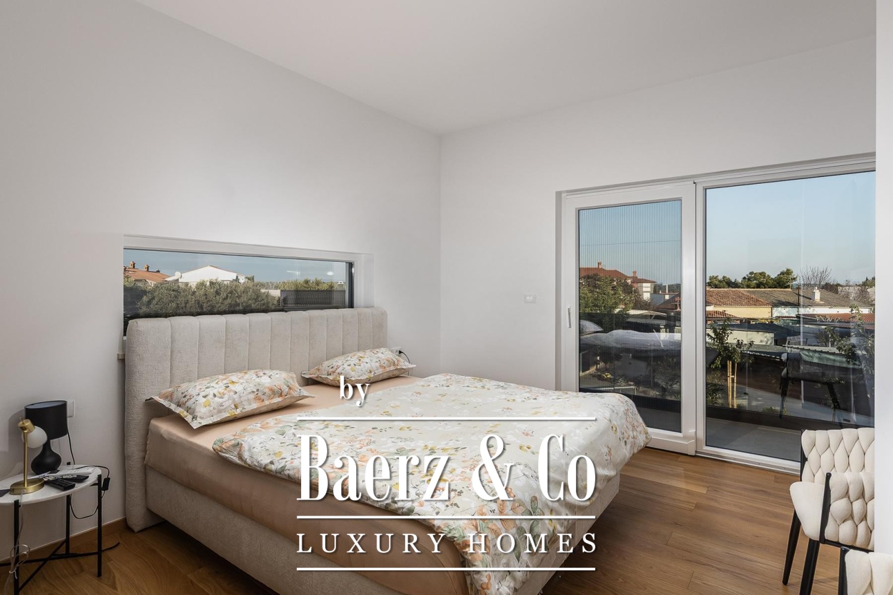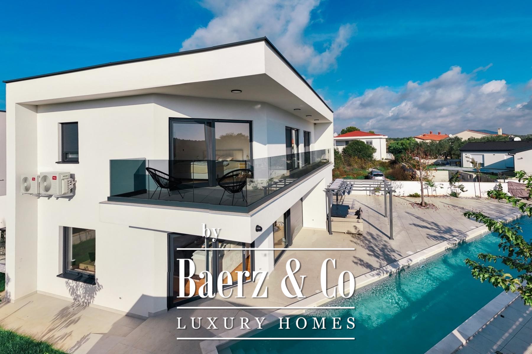 Modern villa Medulin blends contemporary design with Mediterranean tranquillity in the prestigious Volme settlement. Just a five-minute stroll from the crystal-clear sea, this new construction spans 190 m² within a 500 m² landscaped plot, offering an inspiring coastal lifestyle in Croatia.