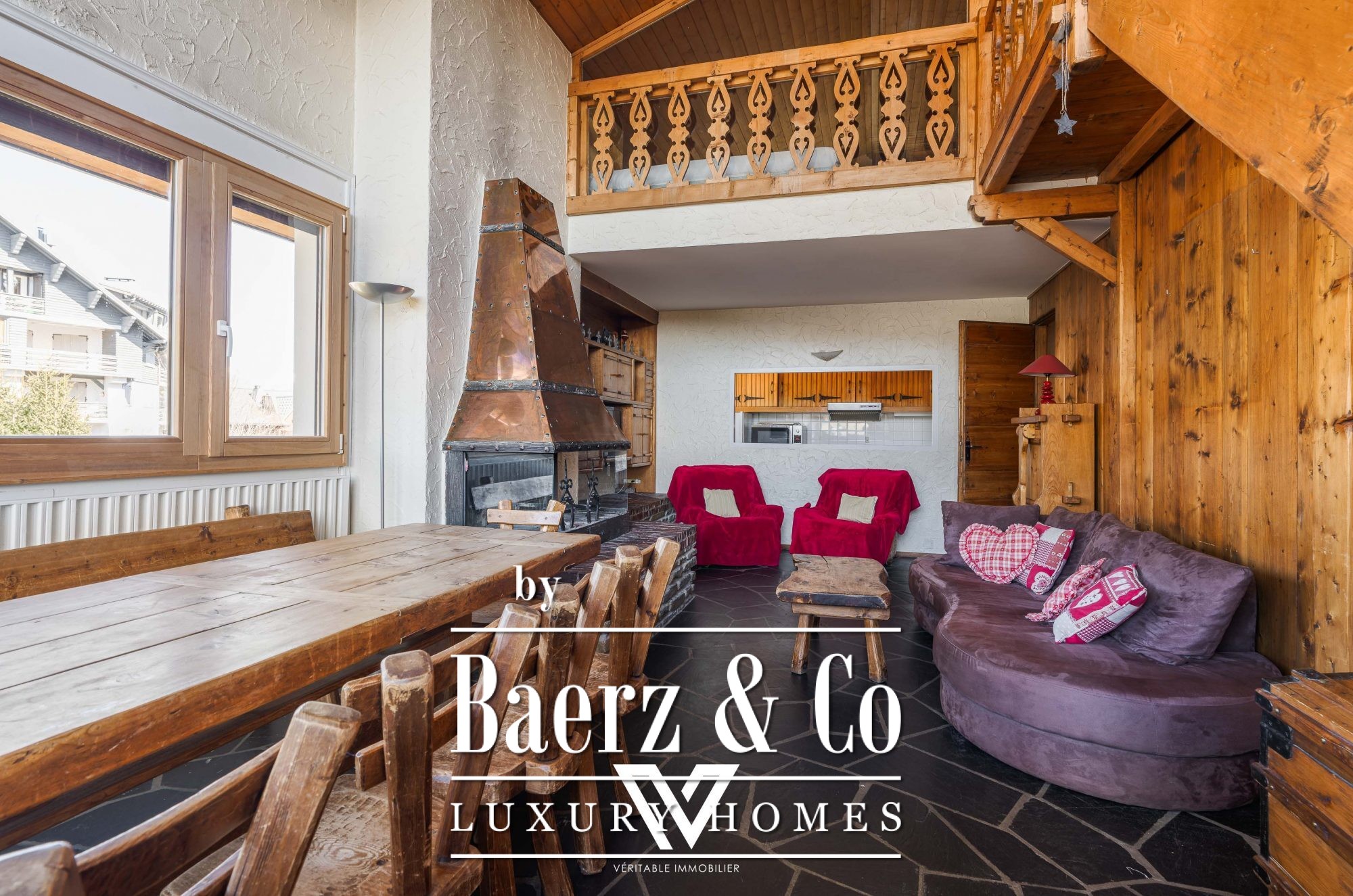 This duplex apartment Megève blends a coveted location with refined volumes and uplifting alpine light. Located steps from the village and the ski slopes, the 97 m² residence resides within a well-maintained building, offering an understated sense of arrival. Inside, three bedrooms accommodate family or guests, each drawing the mountain landscape into daily life. Two balconies, each thoughtfully oriented, open the living spaces to striking views, extending the interior atmosphere toward the peaks.