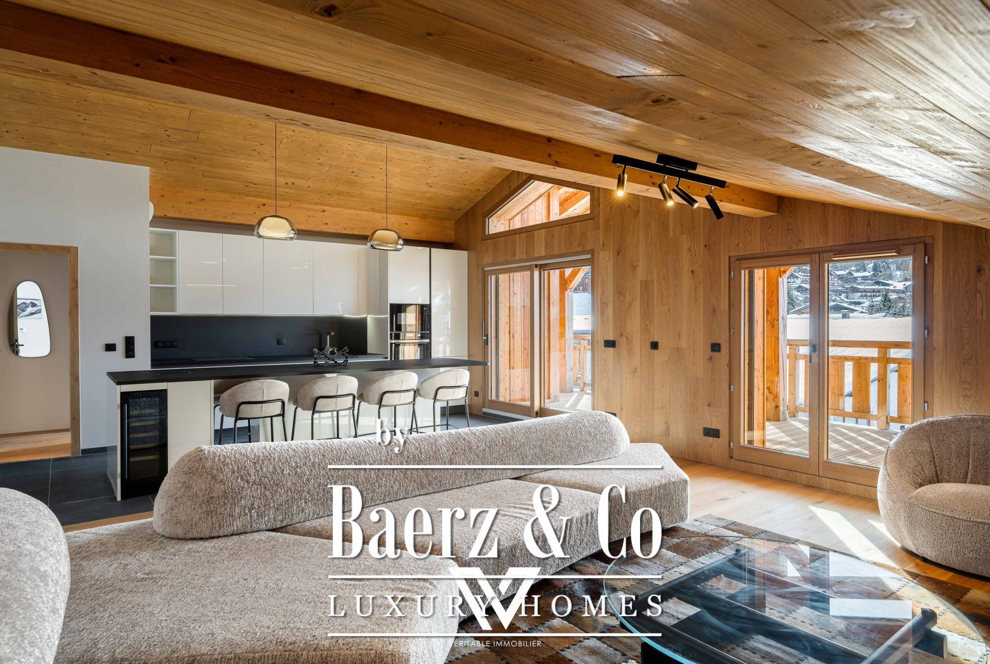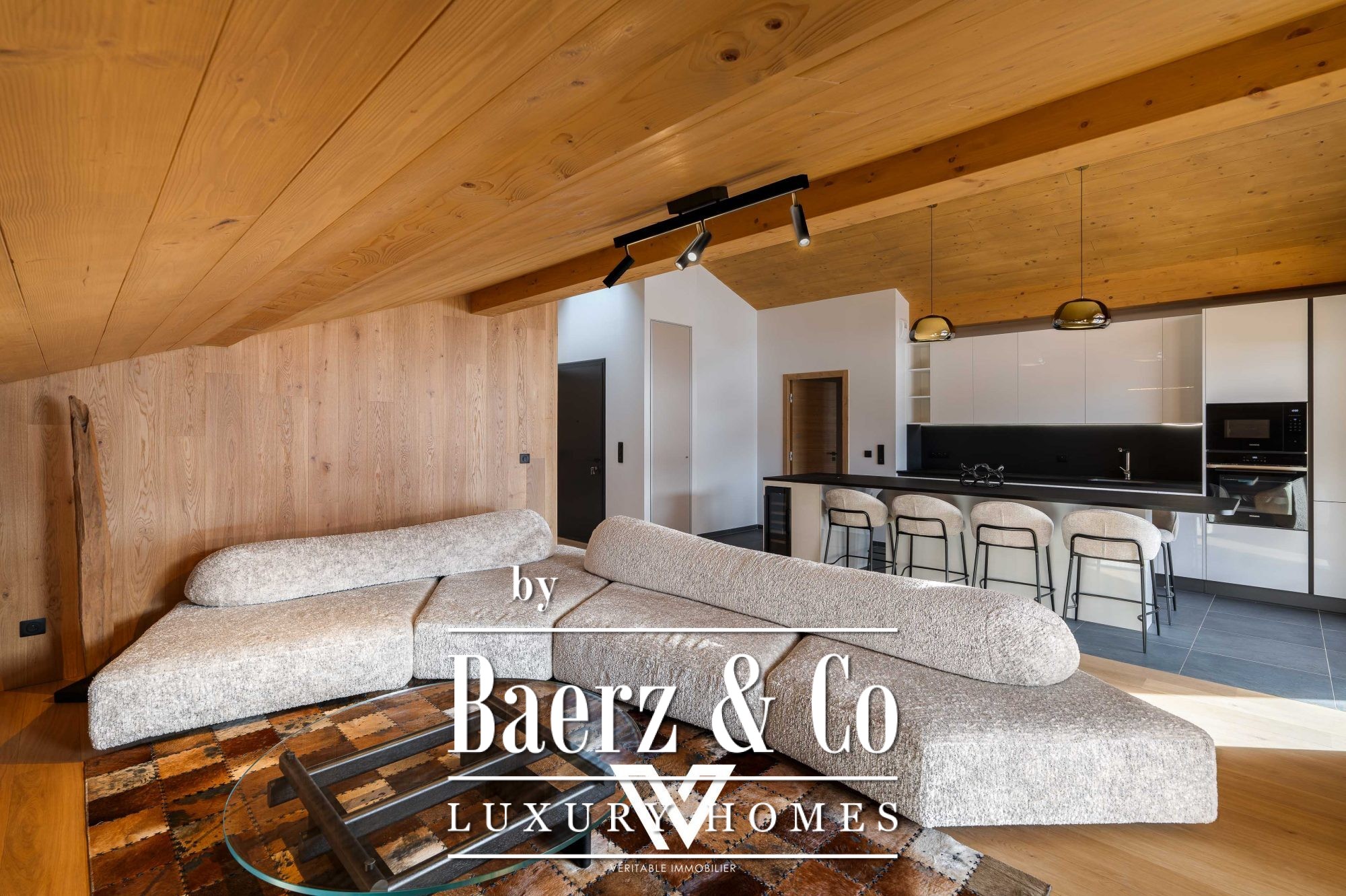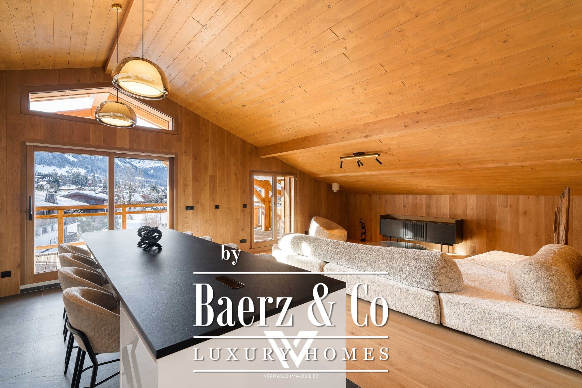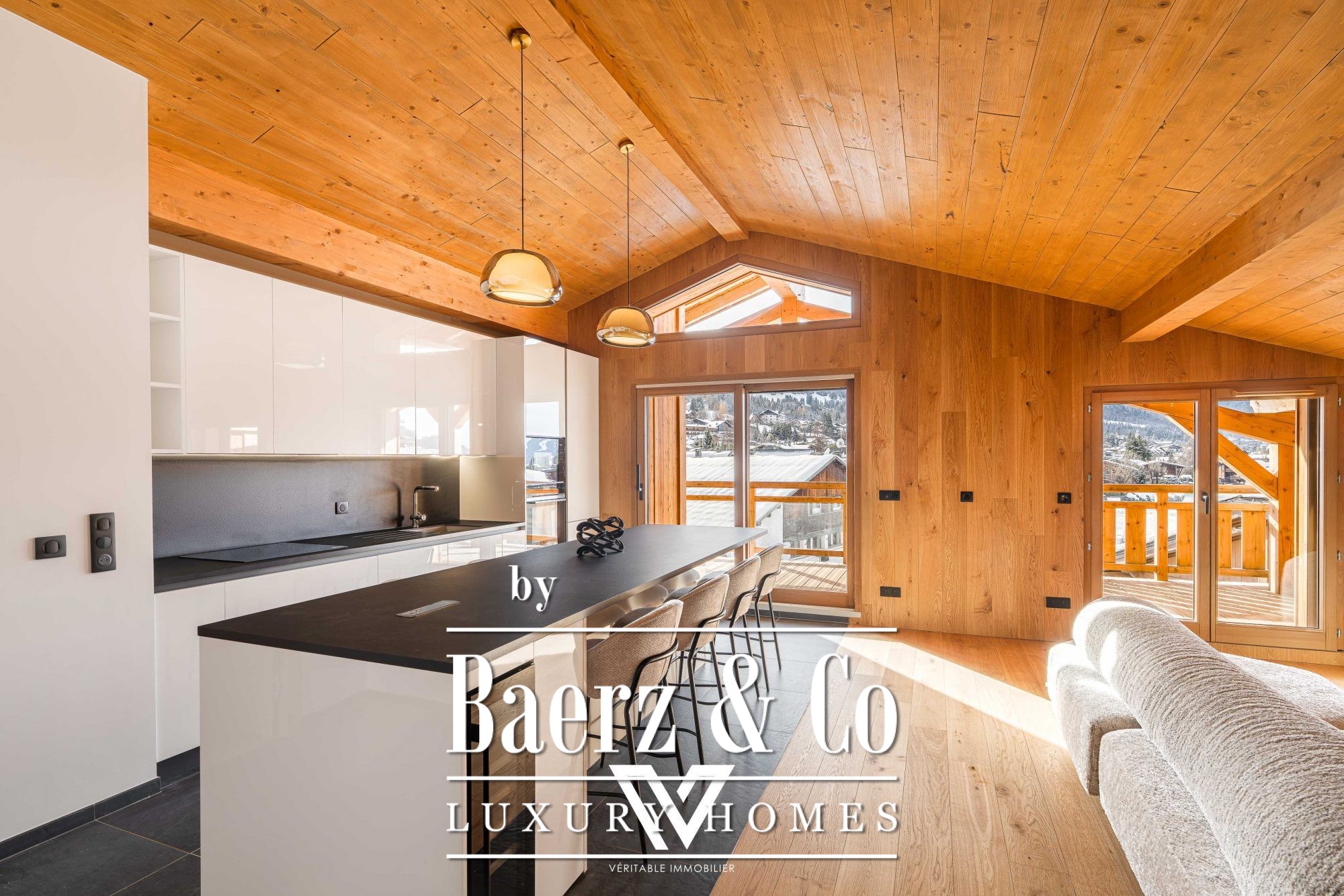 Apartment Megève stands as a refined alpine retreat, occupying the entire top floor of a discreet chalet just steps from the village centre and the ski slopes. This 126 m² property is immersed in natural light, with every window framing panoramic mountain views that invite a profound sense of place and calm.