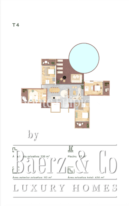 Villa Melides with private pool and nature views offers a calm fusion of refined living and effortless connection to its surroundings. This four bedroom villa encompasses 235 m² of interior space, balanced by generous outdoor areas spanning 112 m², and includes a private pool of 83 m². The thoughtful design encourages life outdoors, where terraces overlook the quiet rhythms of countryside, inviting private morning breakfasts or quiet swims at dusk.