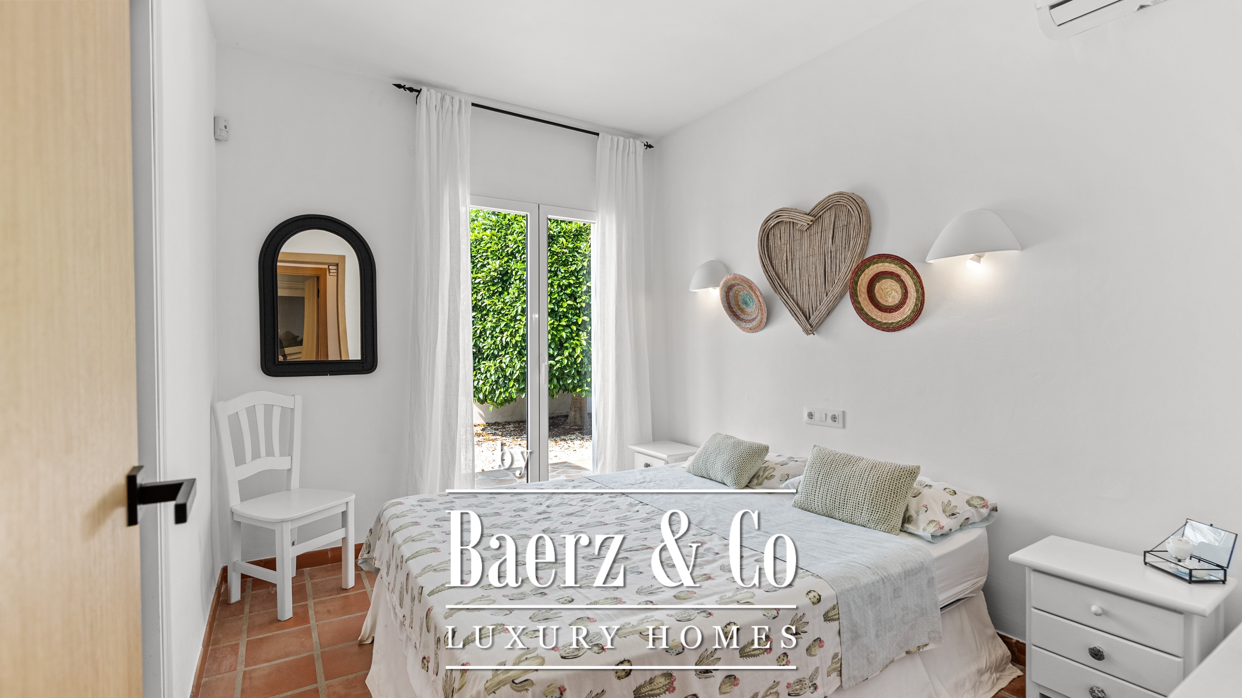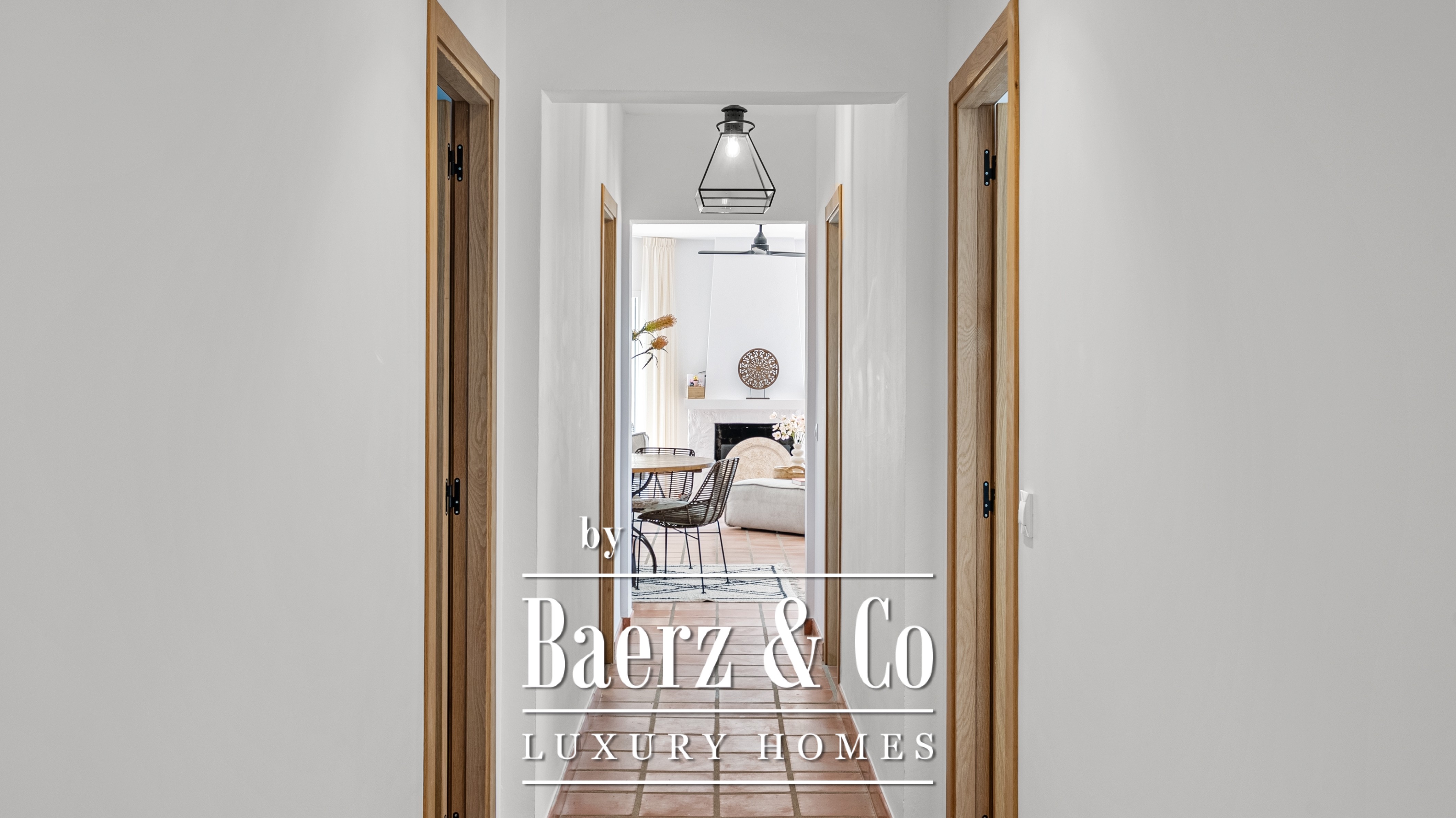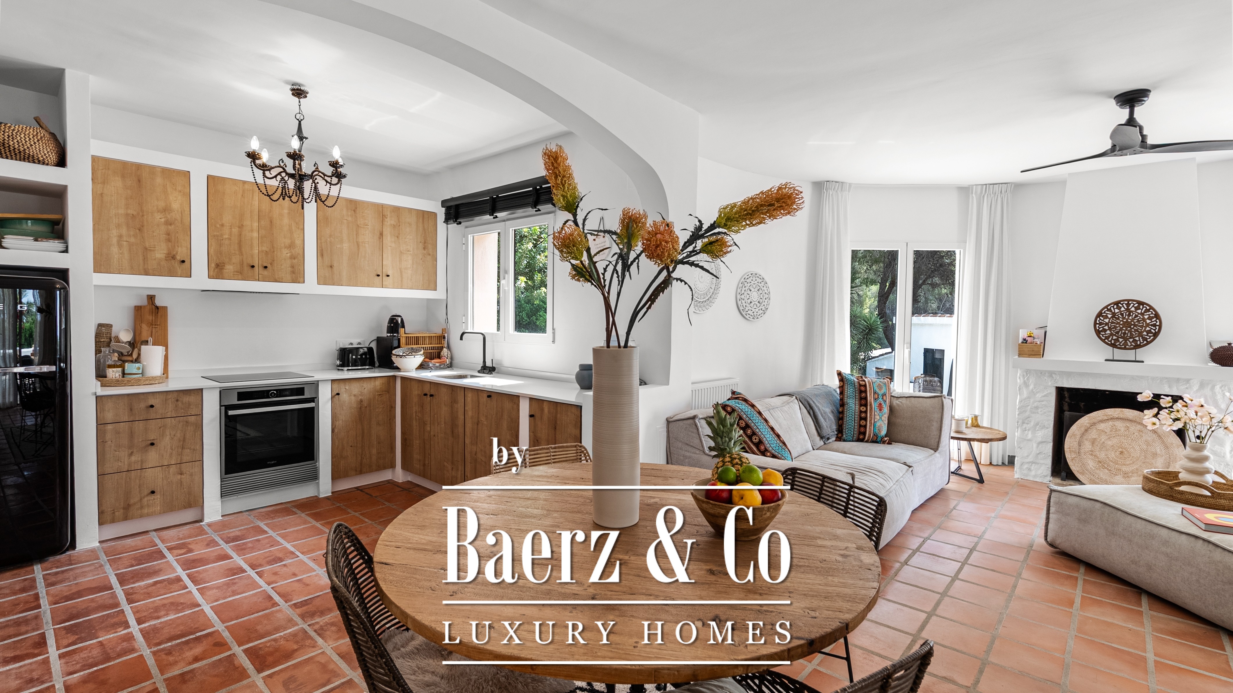 The open kitchen, seamlessly linked to the living area, creates an inviting rhythm of interior and exterior living. Natural light is ever-present, fostering a setting where daily rituals feel elevated. Doors unfold to a terrace that captures the pulse of outdoor Mediterranean life, ideal for long afternoons and evenings spent with family or guests.
