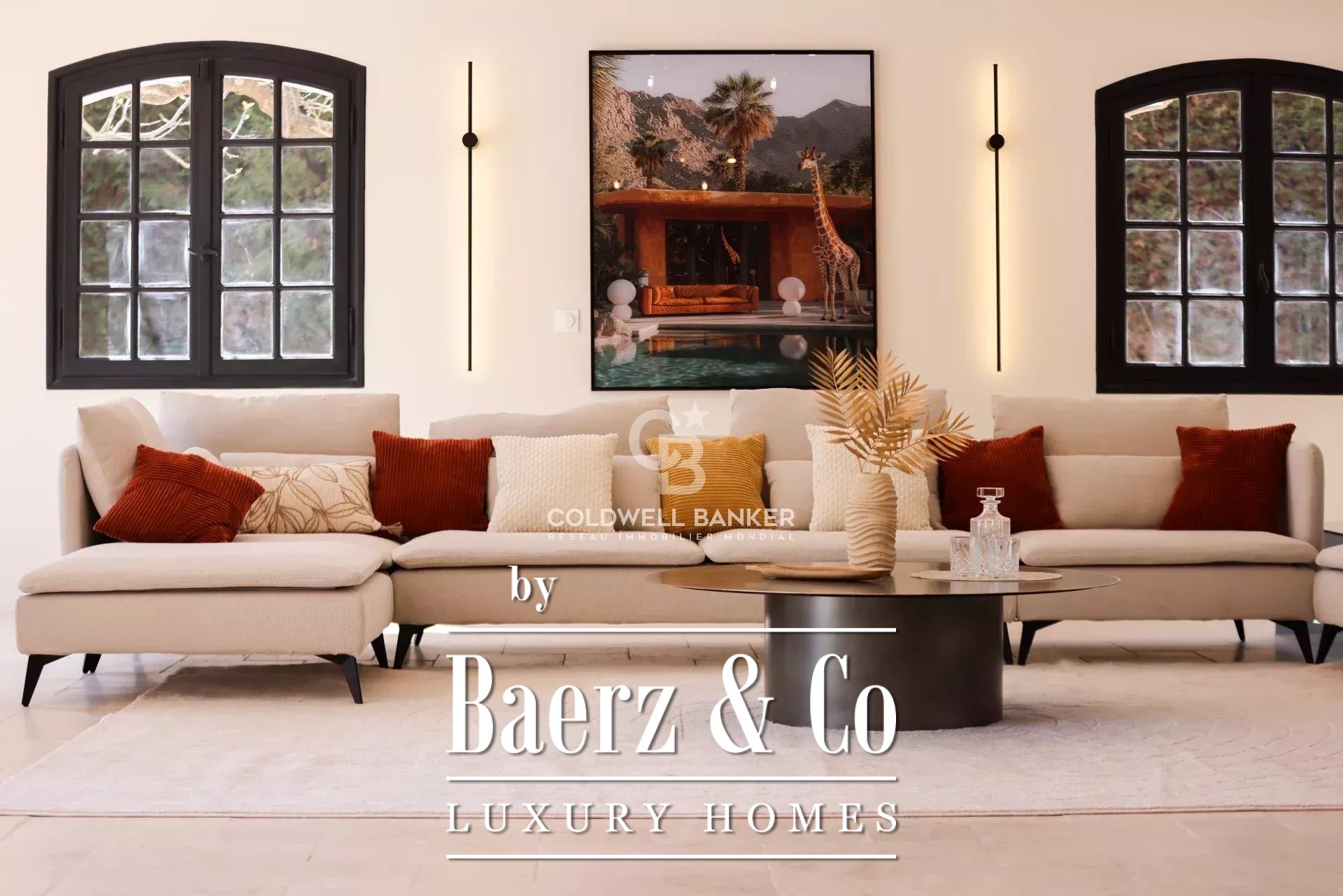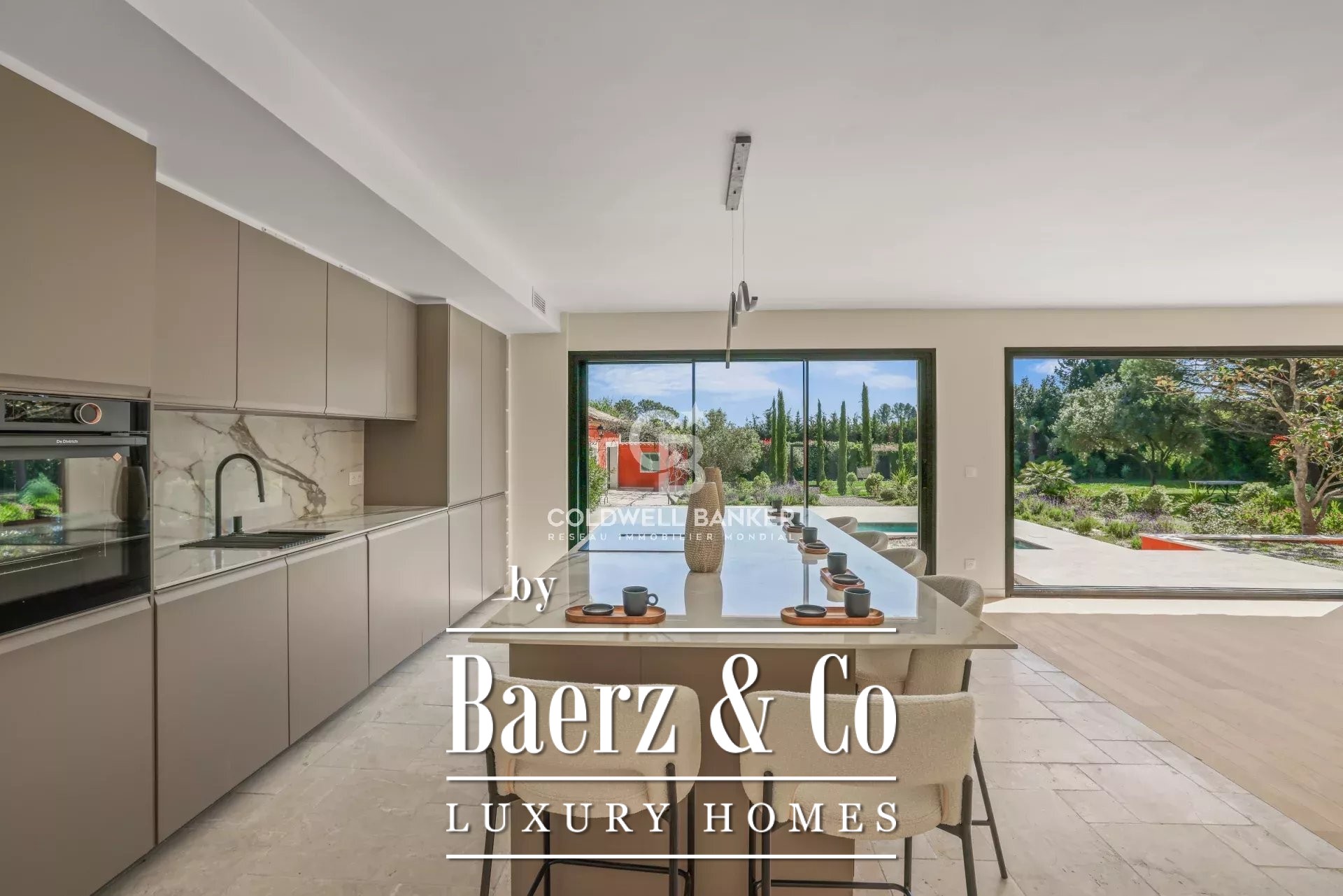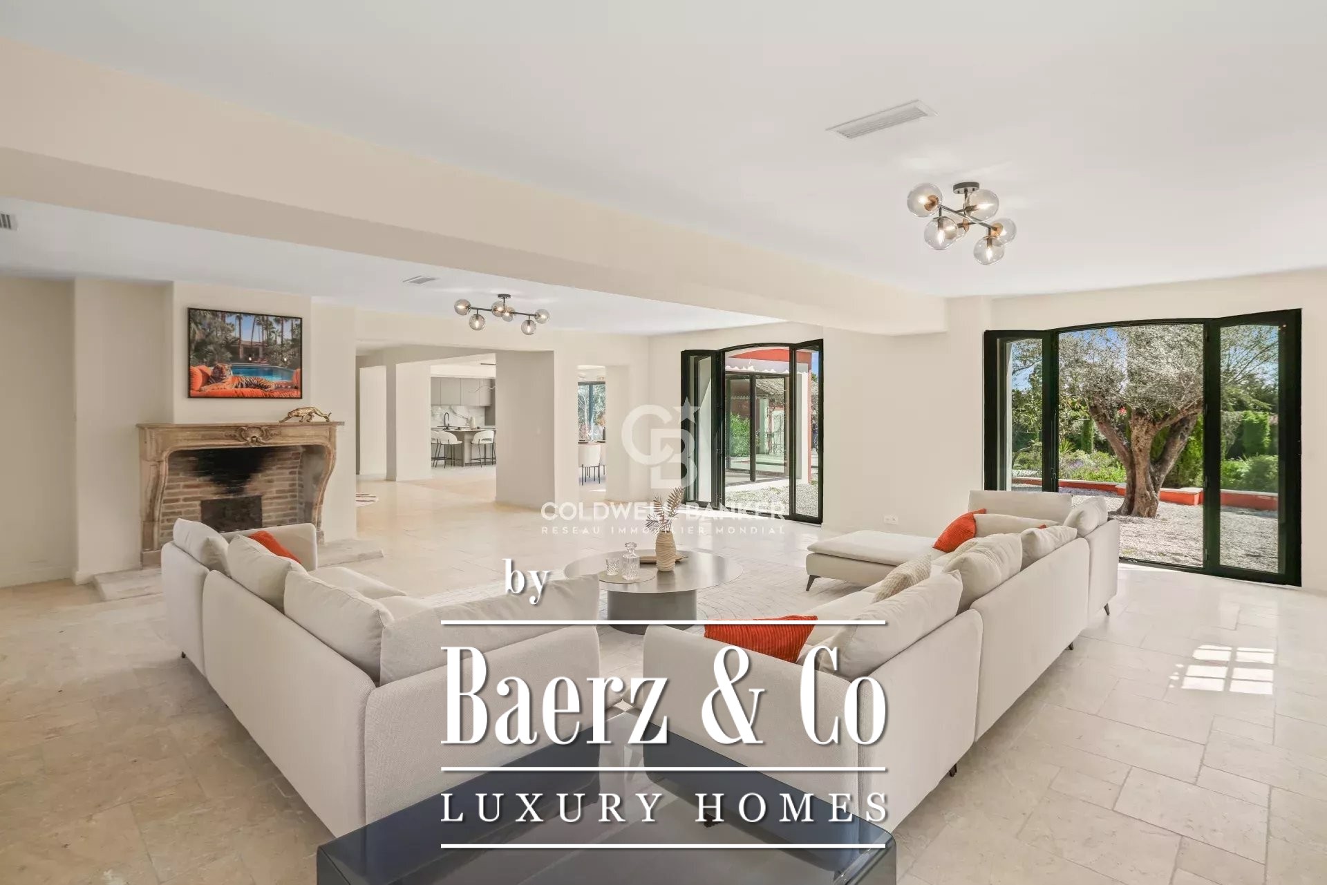 In a very sought after area, quiet and close to international schools, superb Tuscan property of about 400 m2 located on a landscaped plot of 5545m2 with swimming pool. Offering superb volumes, it consists on the ground floor of an entrance hall, a living room with fireplace, a dining room, a fully equipped kitchen, and two bedrooms en suite. On the first floor, a bedroom en