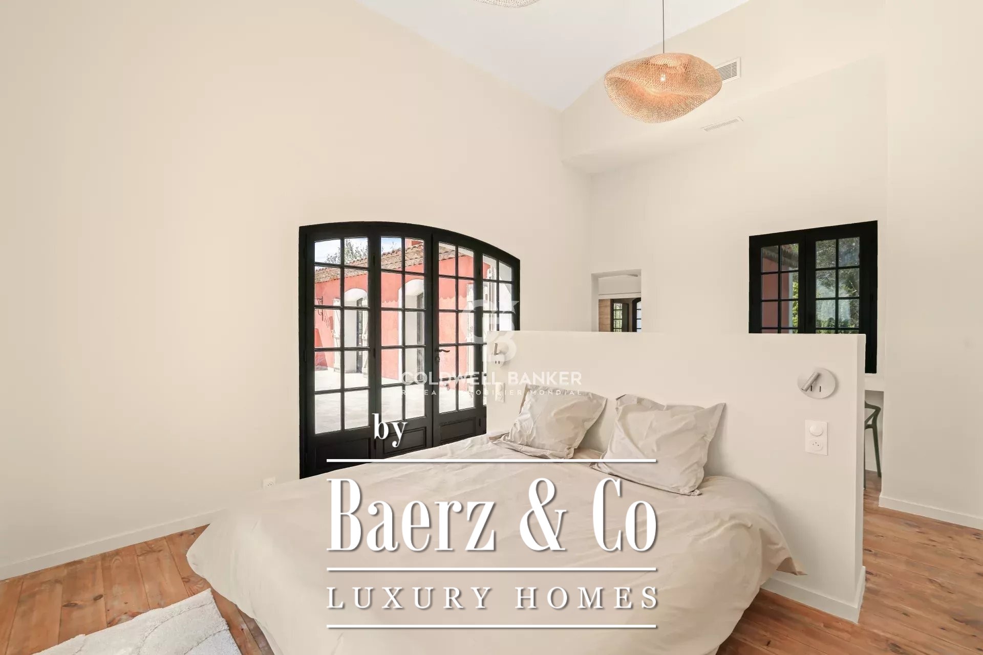 suite with dressing room opening onto a terrace and a master space with dressing room and full bathroom opening onto the terrace. Two guest houses, each with a bedroom and shower room, and possibility of an additional bedroom or gym. A play room with a cinema area, a laundry room, a wine cellar as well as a double garage and a garden shed complete this turnkey property!