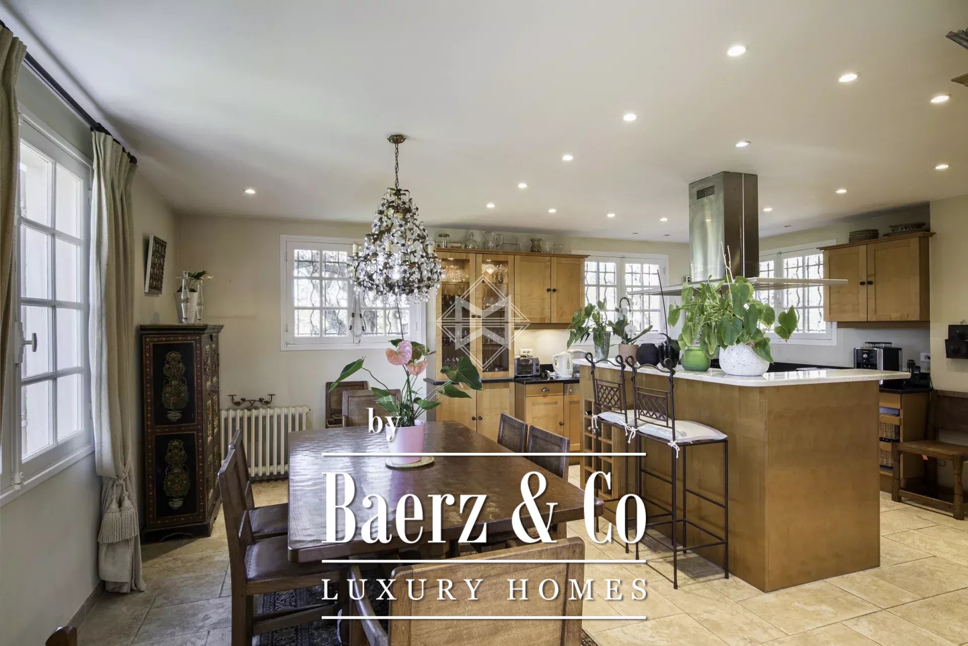 This charming villa is ideally located just steps from the picturesque village of Mougins, renowned for its gourmet restaurants and art galleries. Nestled atop a lush garden, it offers panoramic views of the verdant Esterel hills and stunning sunsets.