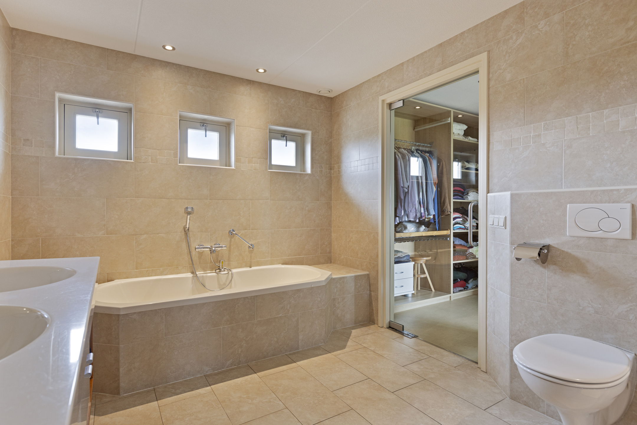 The master bedroom is at the head at the rear and has a beautiful view of the garden and the ash tree. Next to the room a large bathroom, complete with WC, double sinks, a shower with seat and a wonderful whirlpool. For your wardrobe there is a spacious walk-in closet.