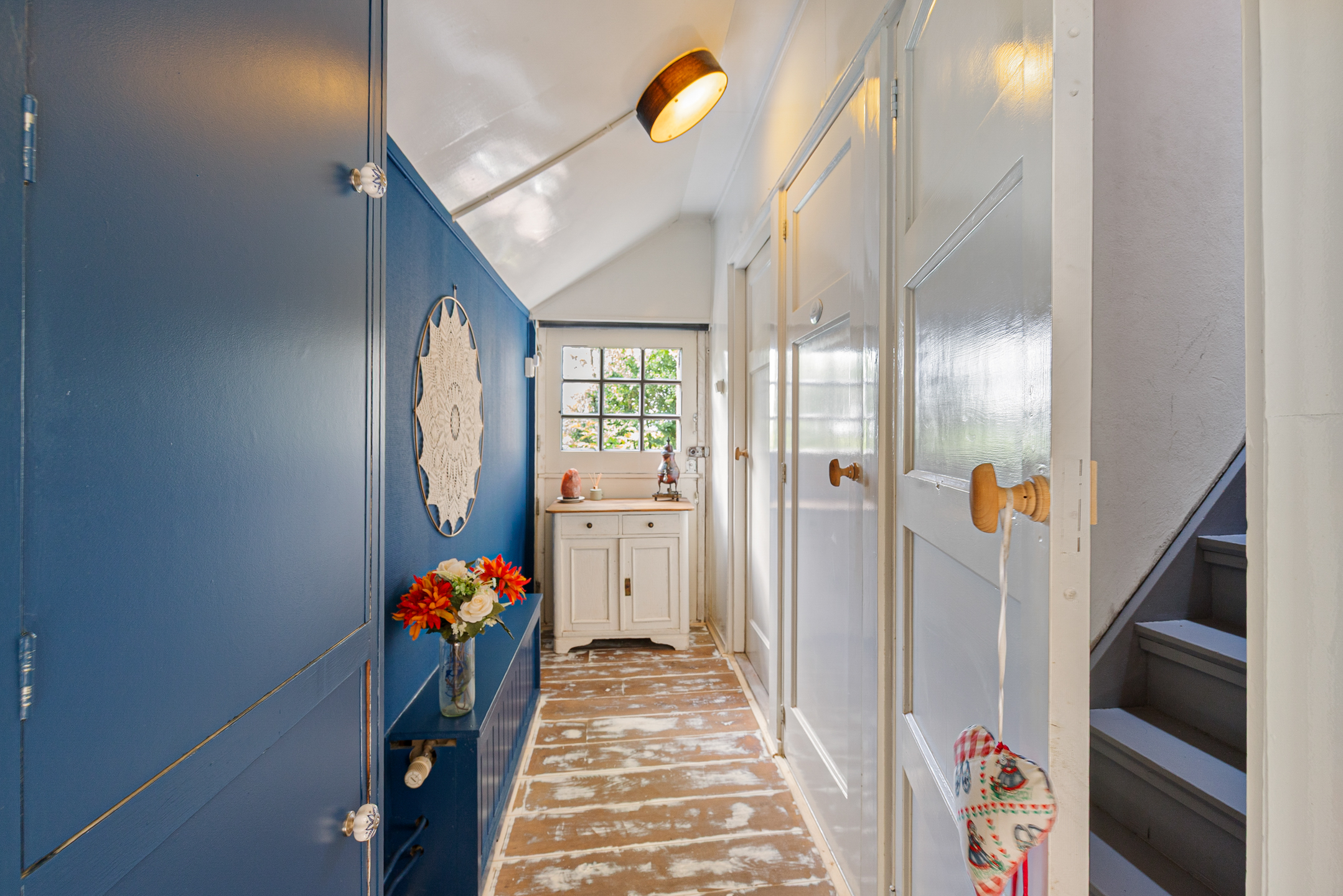 The rear part of the farmhouse contains a utility room with laundry connections, a garage and storage space, and offers excellent potential for extending the living area. Large timber stable doors at the back provide wide access – even for a car or camper.