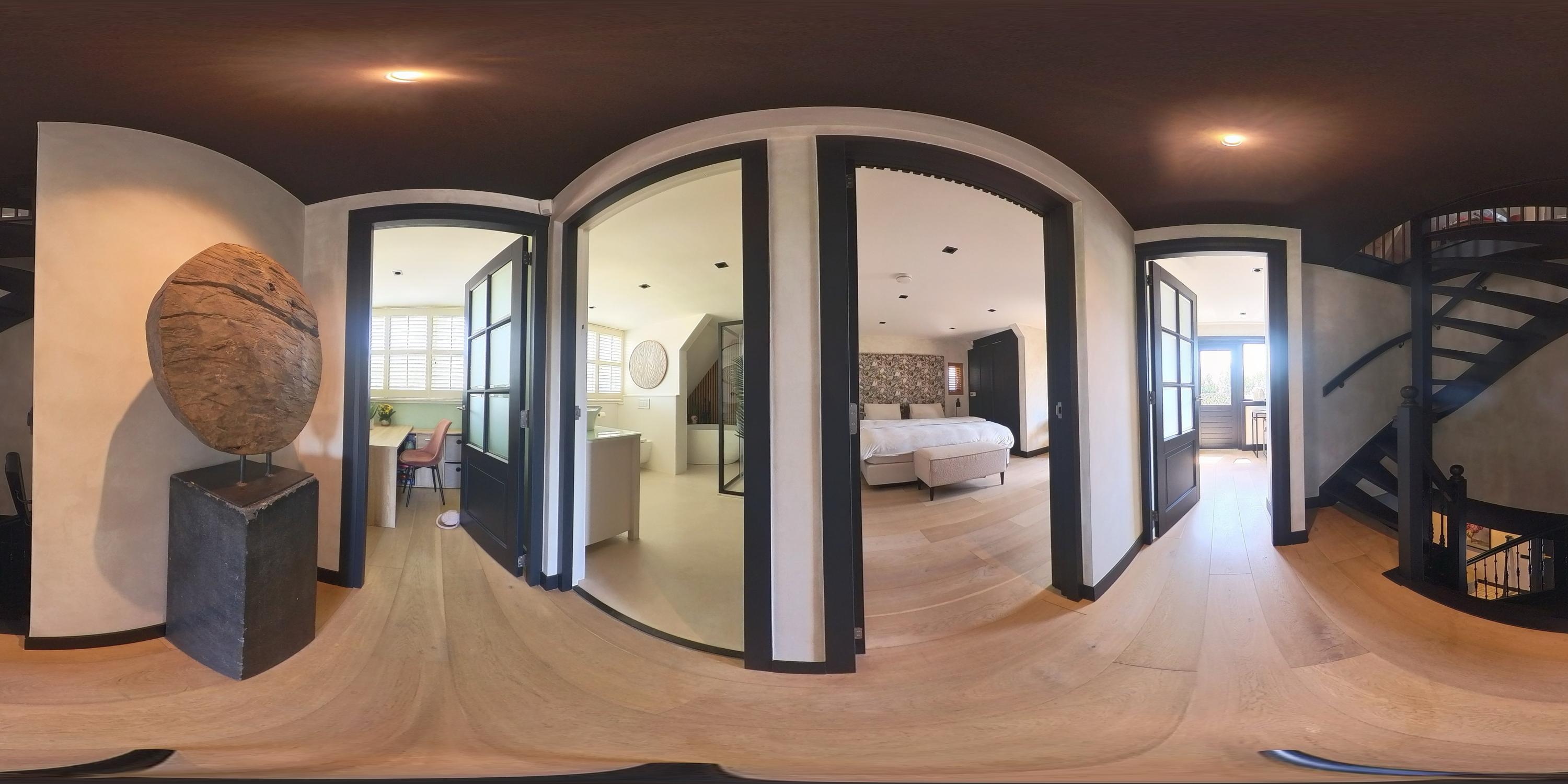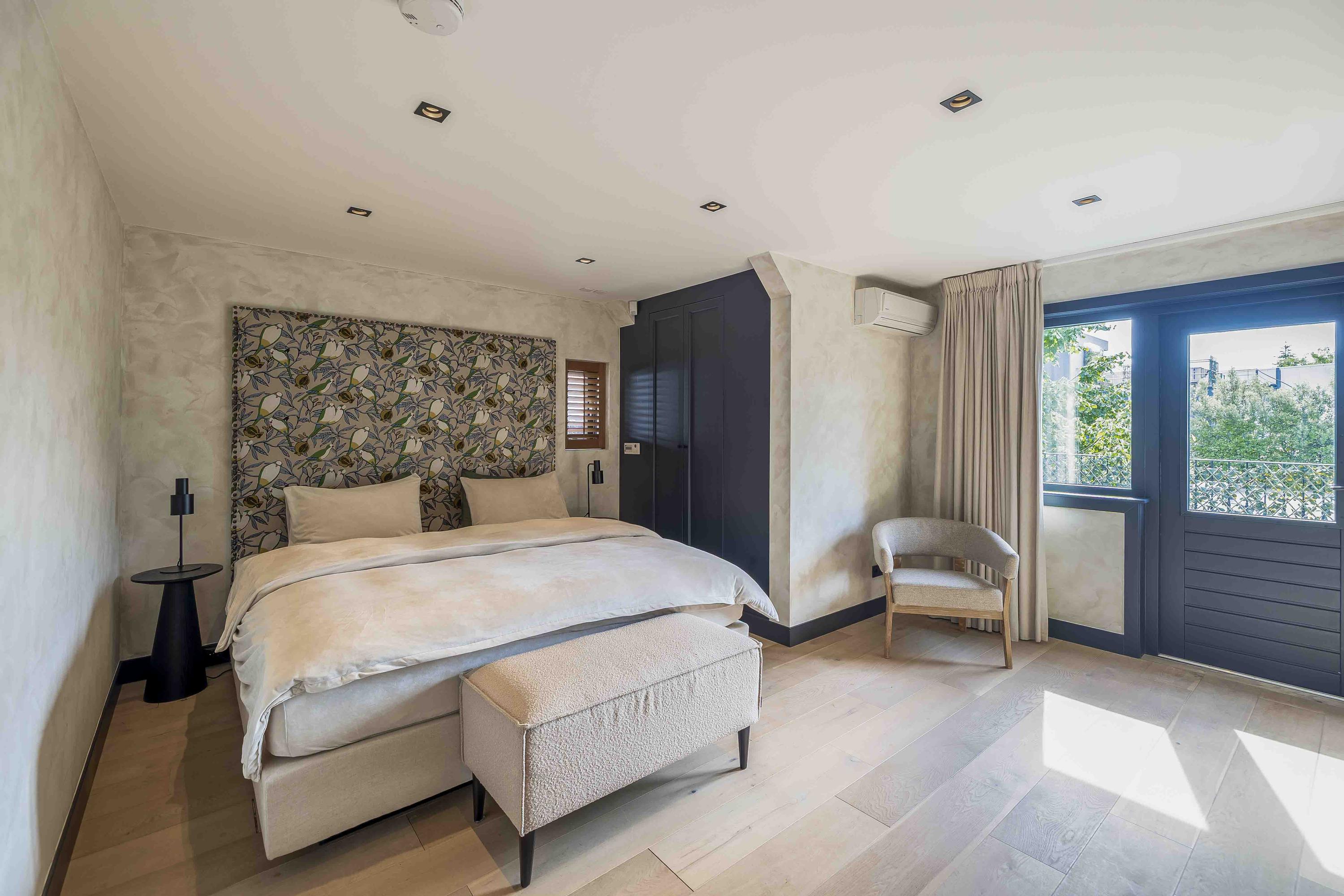 Drie slaapkamers met airco, houten vloerdelen en vloerverwarming. Twee slaapkamers bieden toegang tot het dakterras. De luxe badkamer uit 2023 is voorzien van een vrijstaand ligbad, dubbele inloopdouche, dubbel wastafelmeubel, 2e toilet en vloerverwarming. Nieuwe kozijnen aan de achterzijde (2023)