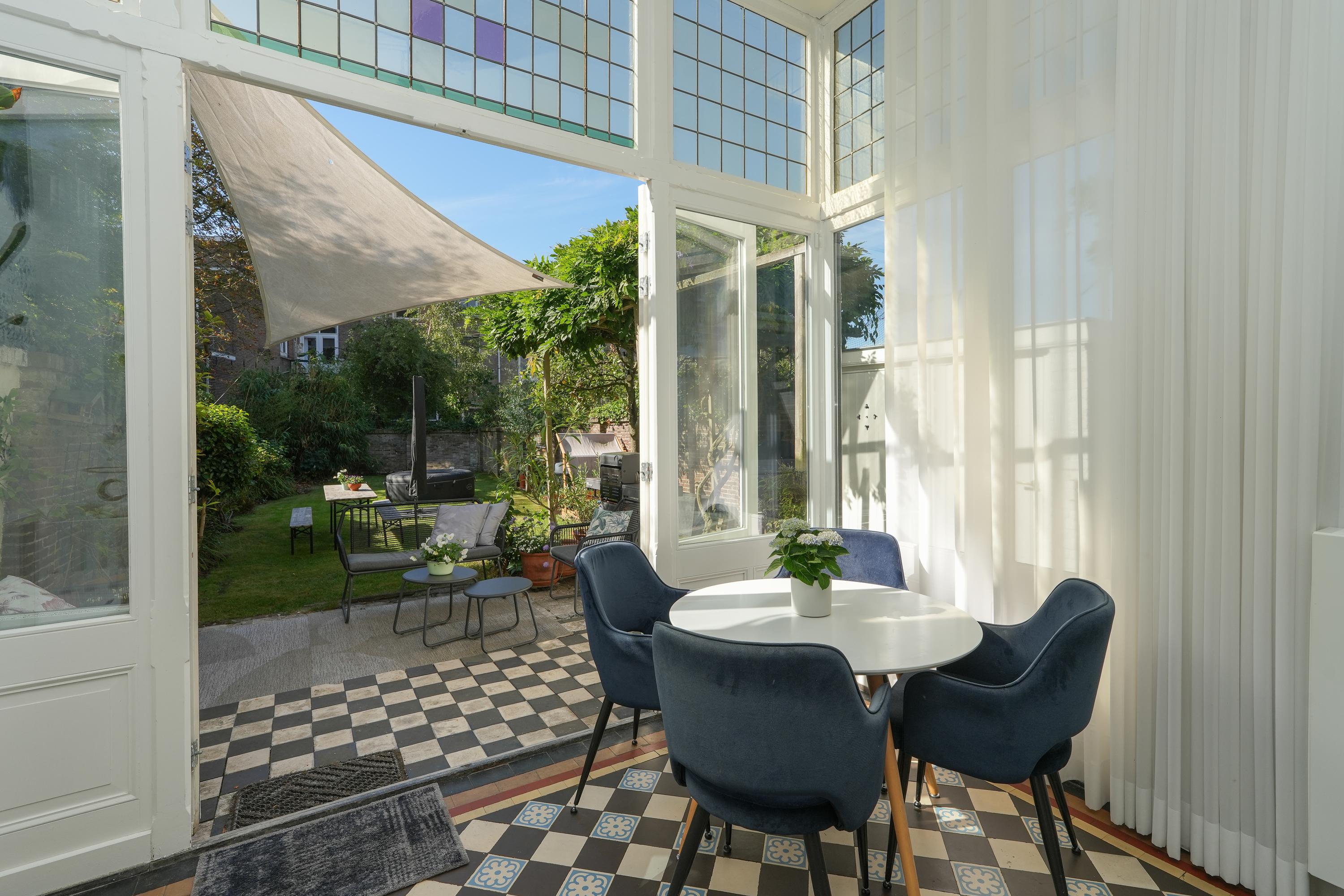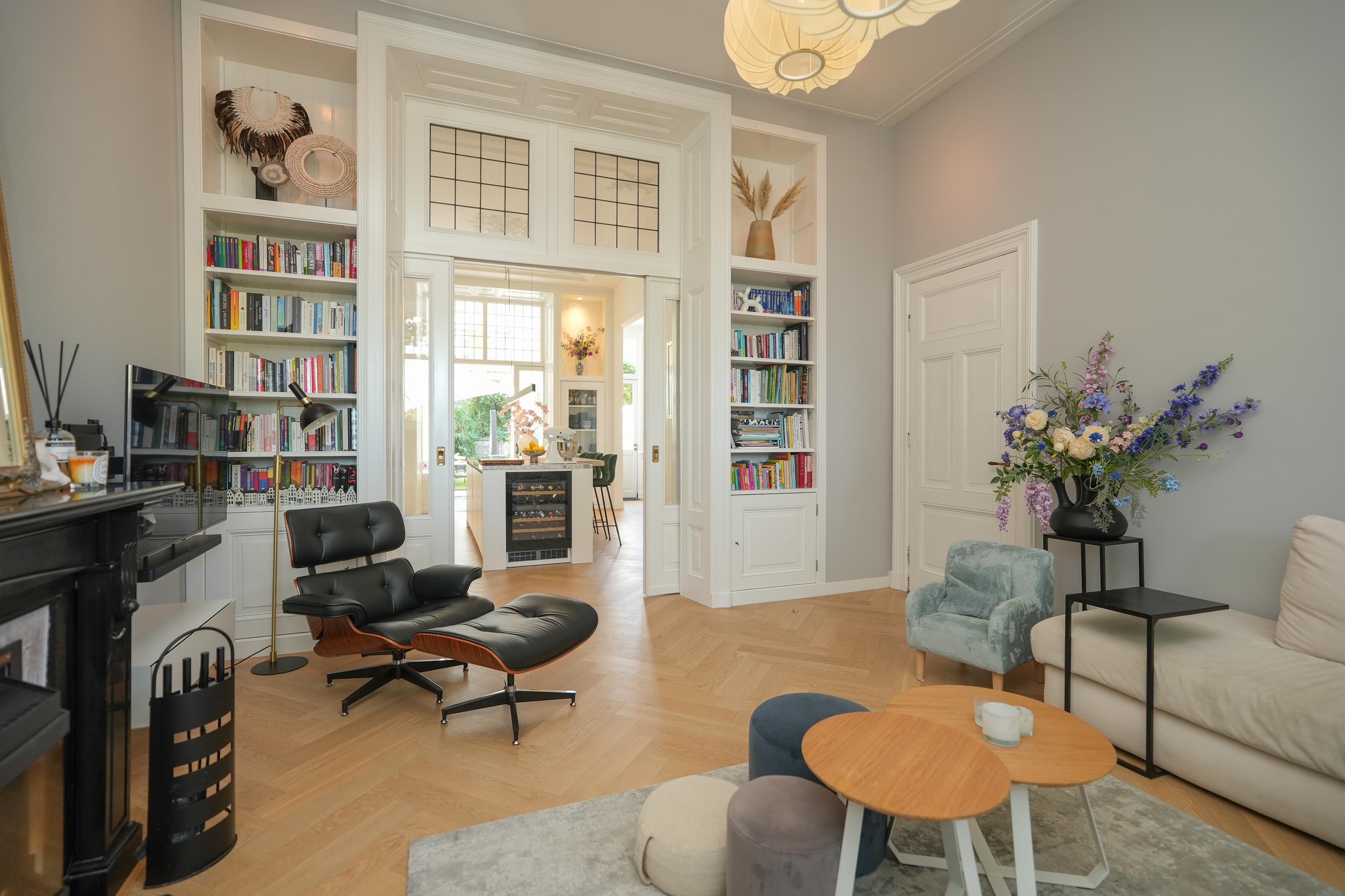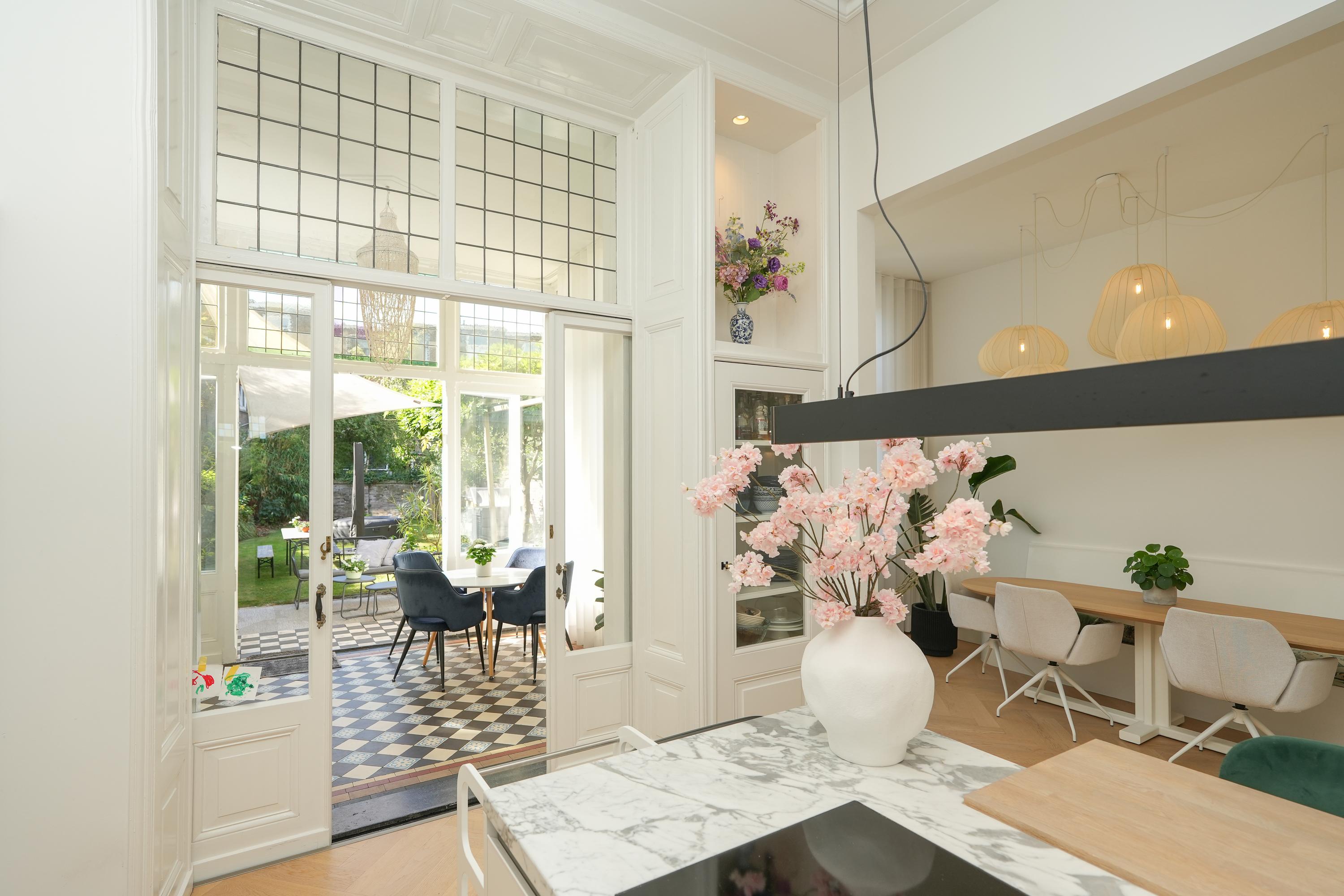 This beautiful and luxurious townhouse is a property that really makes an impression. The property was completely renovated in 2020, preserving and restoring many authentic details such as high ceilings with ornate mouldings, en-suite doors and stained glass. This house exudes atmosphere and elegance, while at the same time offering modern living comfort. With no fewer than five spacious bedrooms, the possibility for a sixth bedroom, two bathrooms, three toilets and a spacious basement, this house offers all the space a family could wish for. The stately double front door, the wide balcony at the front, the deep and quiet south-facing back garden and the excellent state of maintenance give this house an extra sense of grandeur and living pleasure. Thanks to its good insulation, the house has an energy label A and is energy efficient.