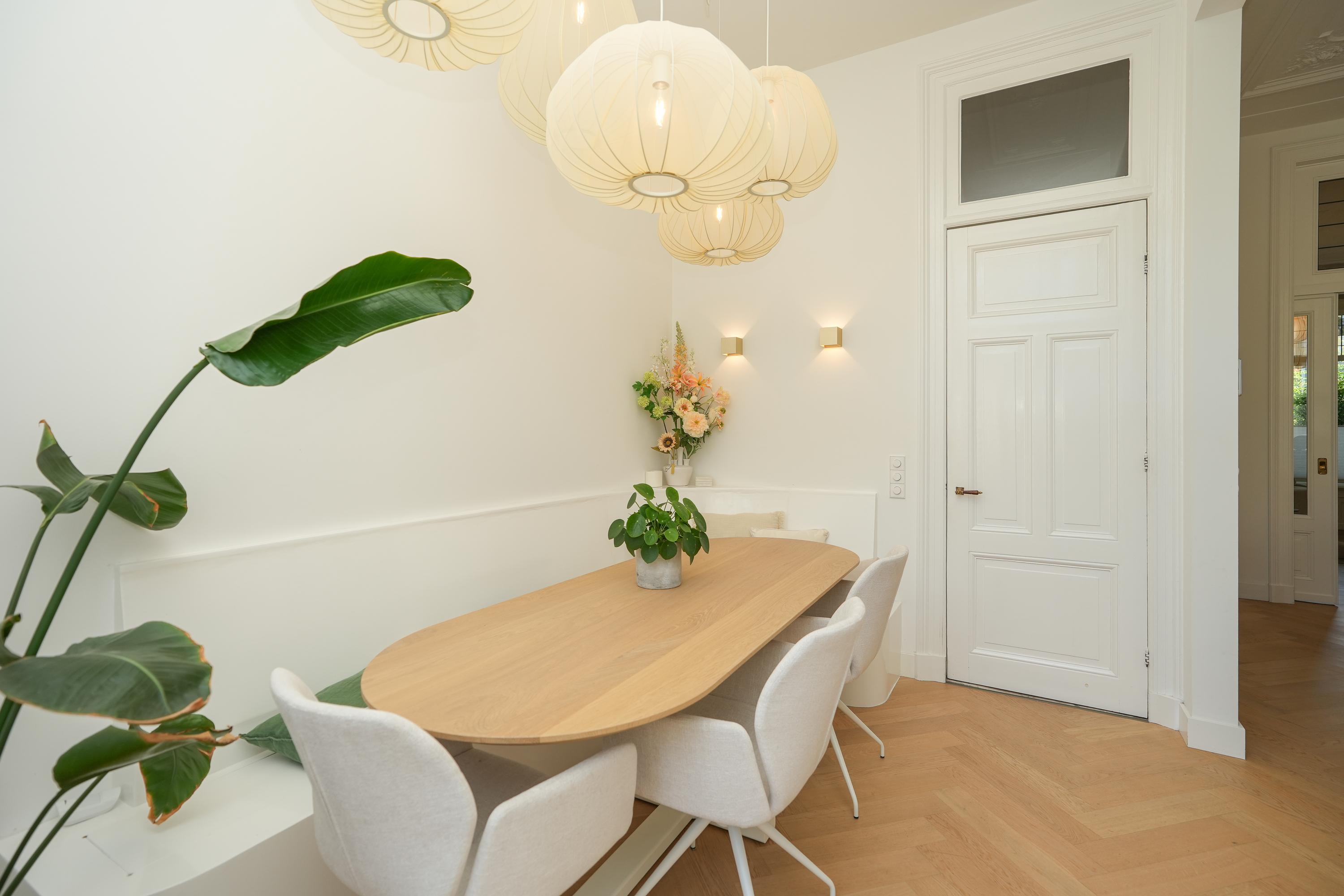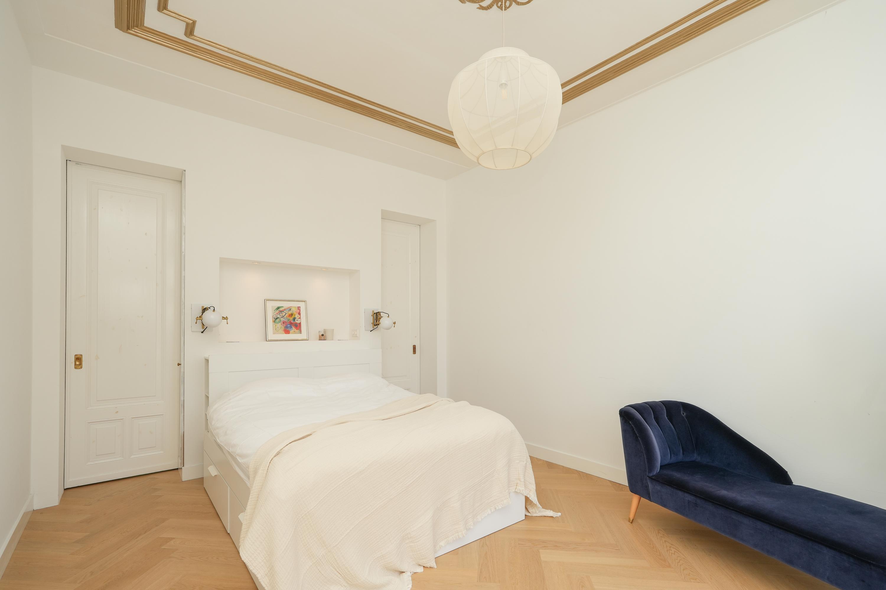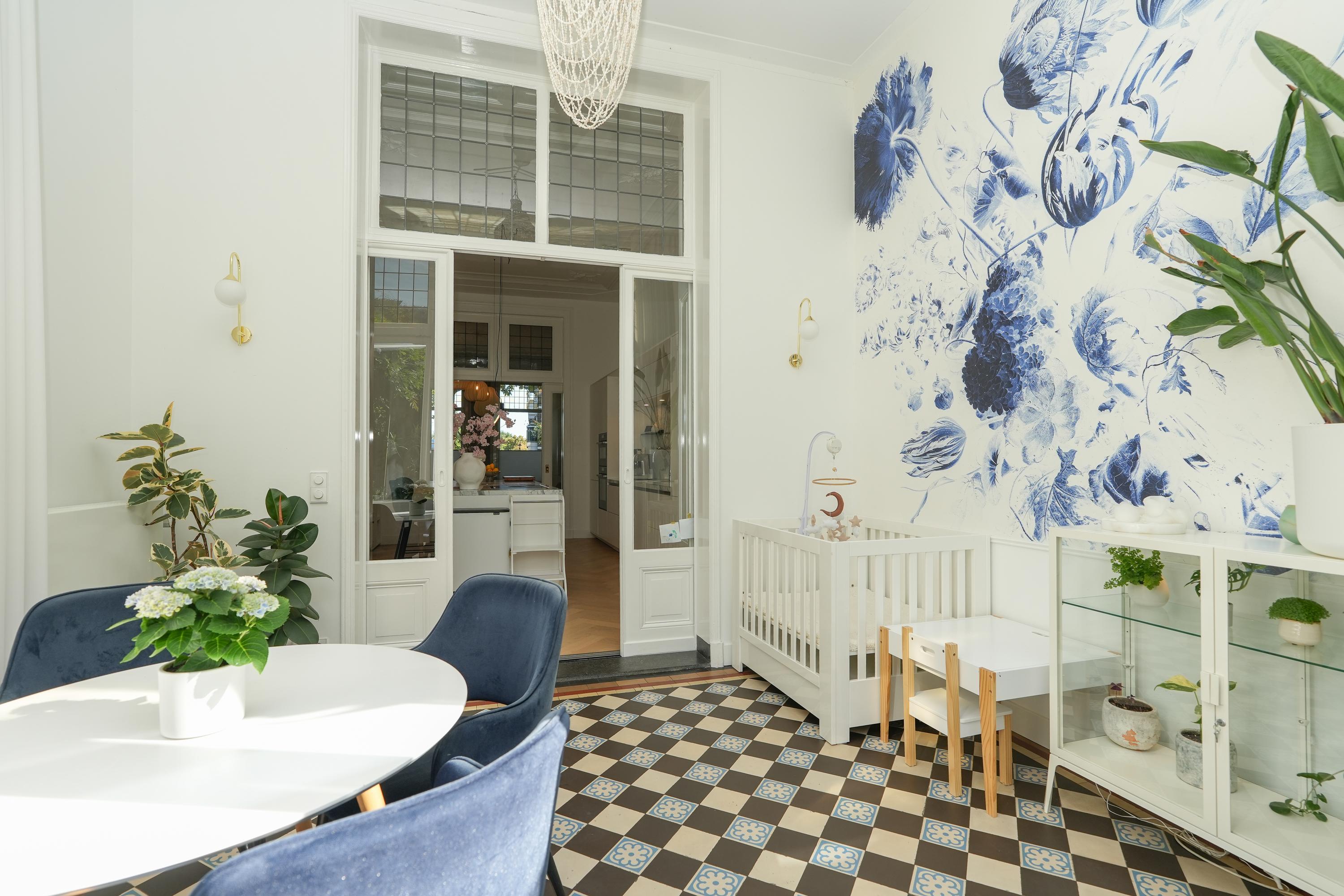 This beautiful and luxurious townhouse is a property that really makes an impression. The property was completely renovated in 2020, preserving and restoring many authentic details such as high ceilings with ornate mouldings, en-suite doors and stained glass. This house exudes atmosphere and elegance, while at the same time offering modern living comfort. With no fewer than five spacious bedrooms, the possibility for a sixth bedroom, two bathrooms, three toilets and a spacious basement, this house offers all the space a family could wish for. The stately double front door, the wide balcony at the front, the deep and quiet south-facing back garden and the excellent state of maintenance give this house an extra sense of grandeur and living pleasure. Thanks to its good insulation, the house has an energy label A and is energy efficient.