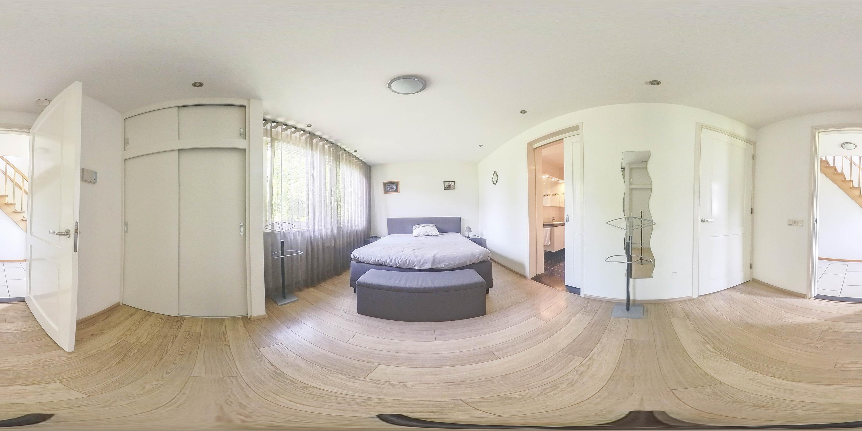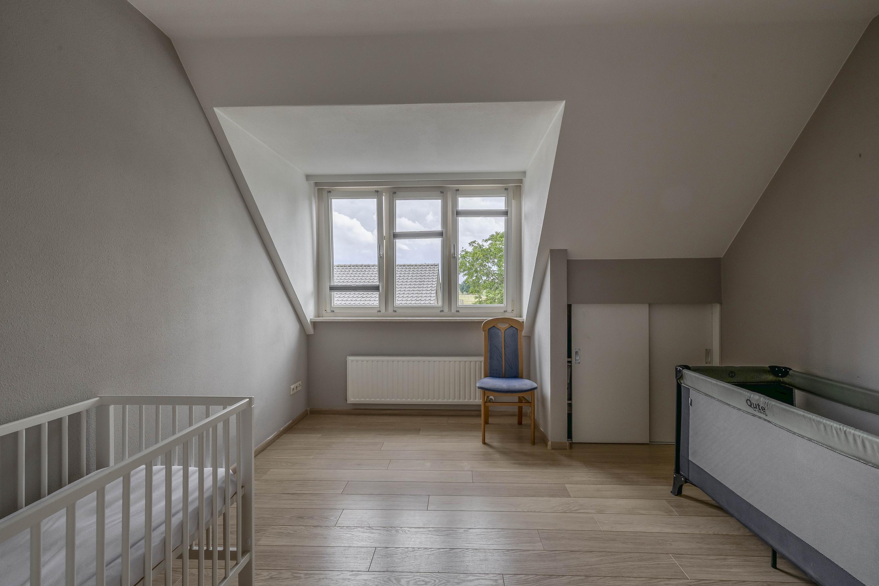 The spacious landing with mezzanine provides access to 3 bedrooms, a bathroom and a utility/boiler room. The technical room houses the vacuum cleaning system, the heat recovery unit and the boiler. Bedrooms I and III both have laminate flooring, spray-painted walls and a spray-painted ceiling. In both rooms, storage space has been created under the sloping roof by means of practical sliding cupboards. Two windows in the front wall provide natural light. Bedroom II also has laminate flooring, spray-painted walls and a spray-painted ceiling. A dormer window provides natural light and ventilation in the room. The spacious, fully tiled bathroom is equipped with a bath, washbasin with vanity unit, shower, toilet and a designer radiator. A practical bonus in this bathroom is the handy laundry chute. The chute opens into the kitchen, so dirty laundry ends up directly downstairs, close to the washing machine and dryer. This makes doing the laundry much more efficient and provides extra convenience.