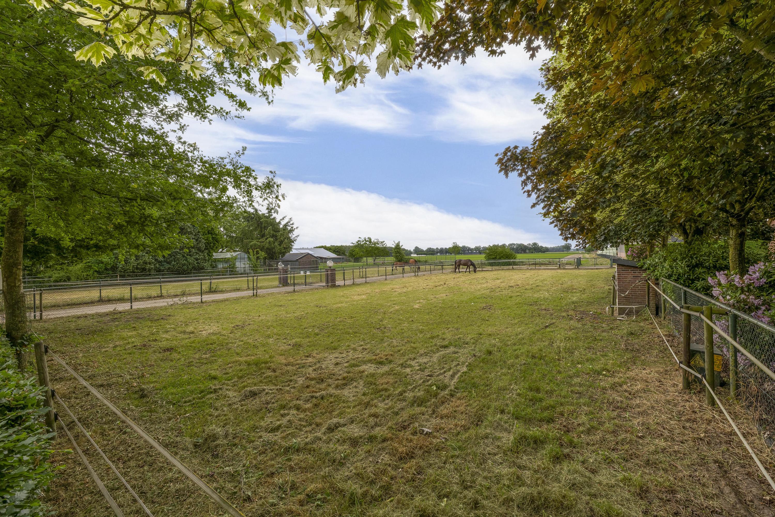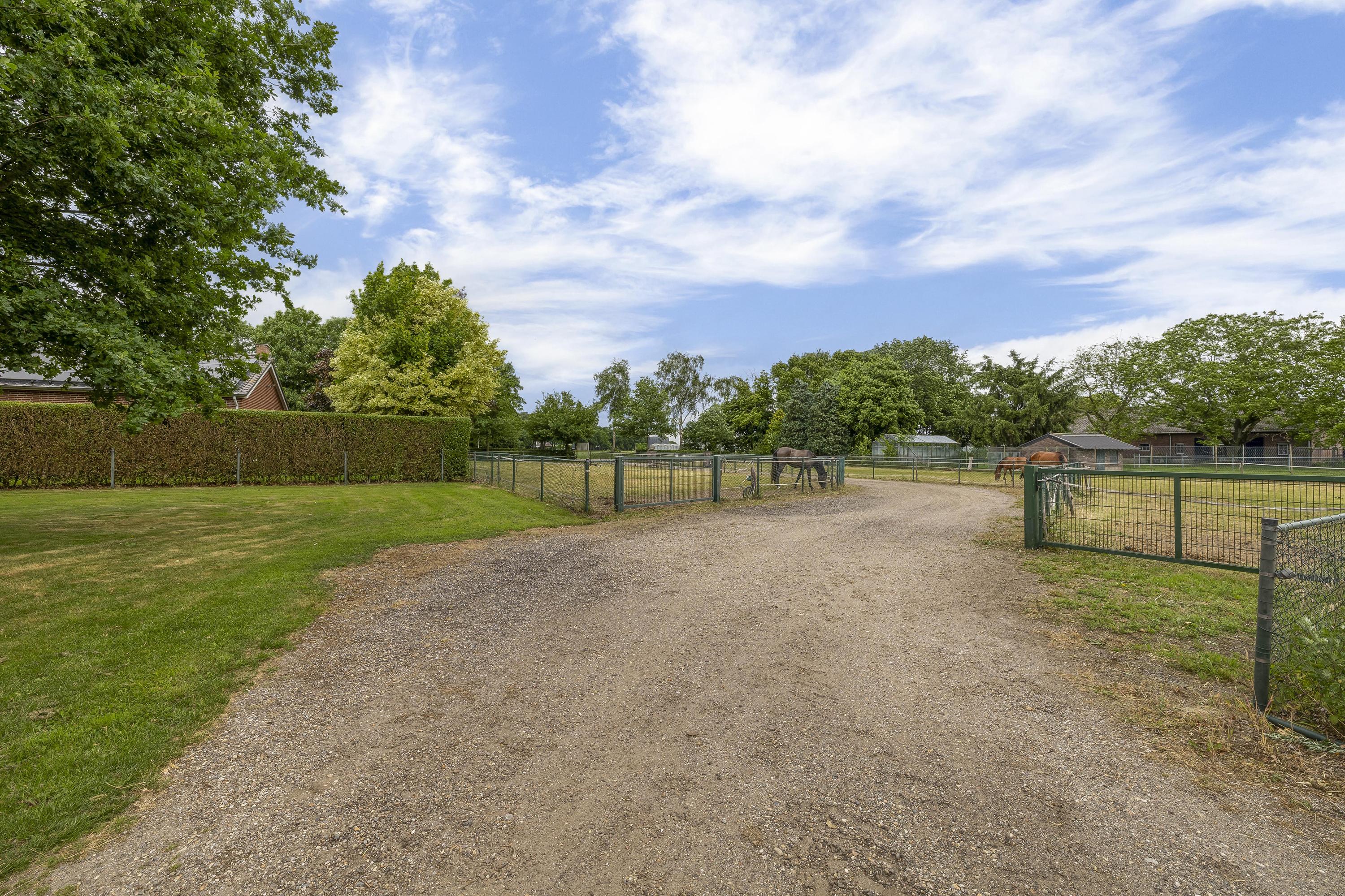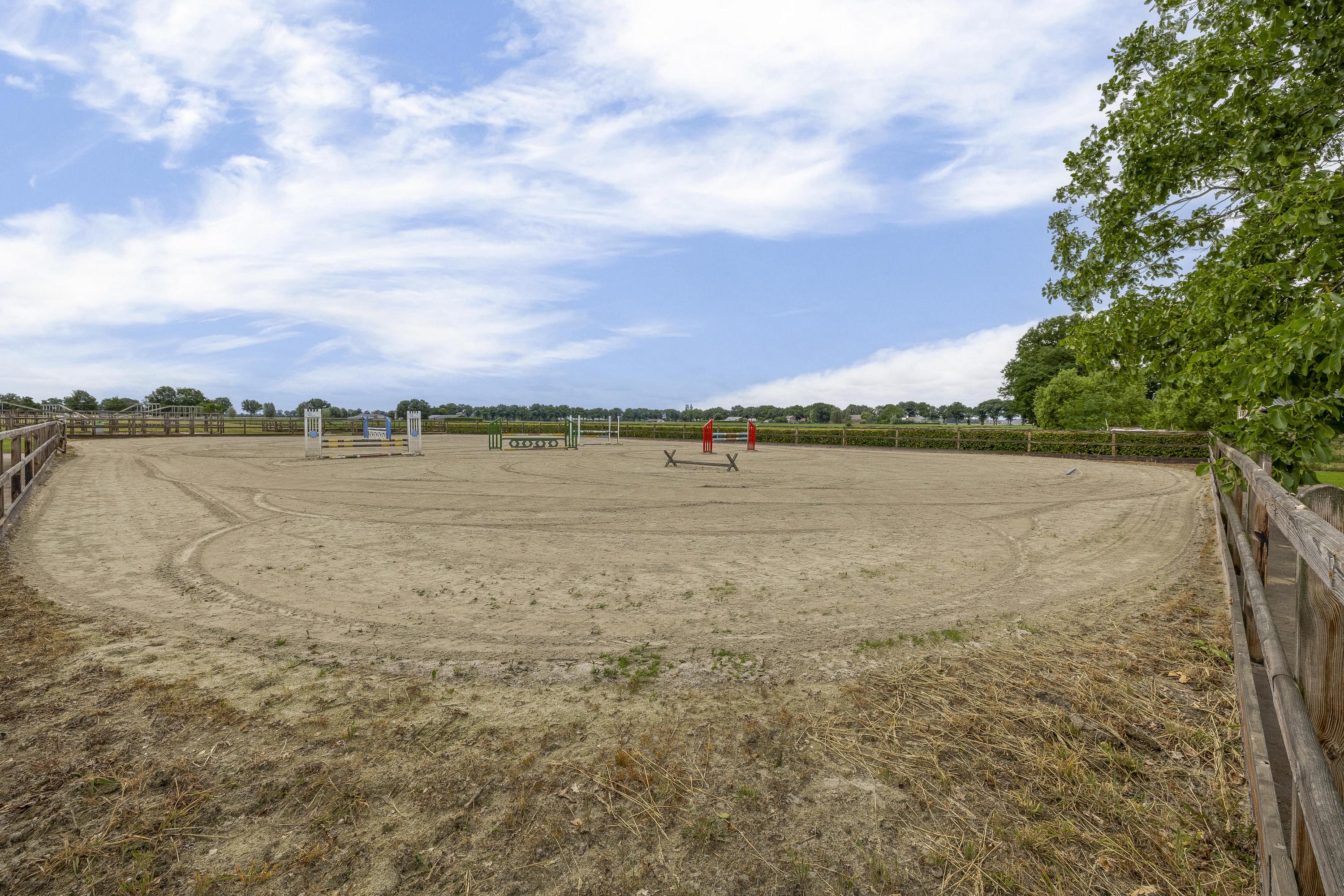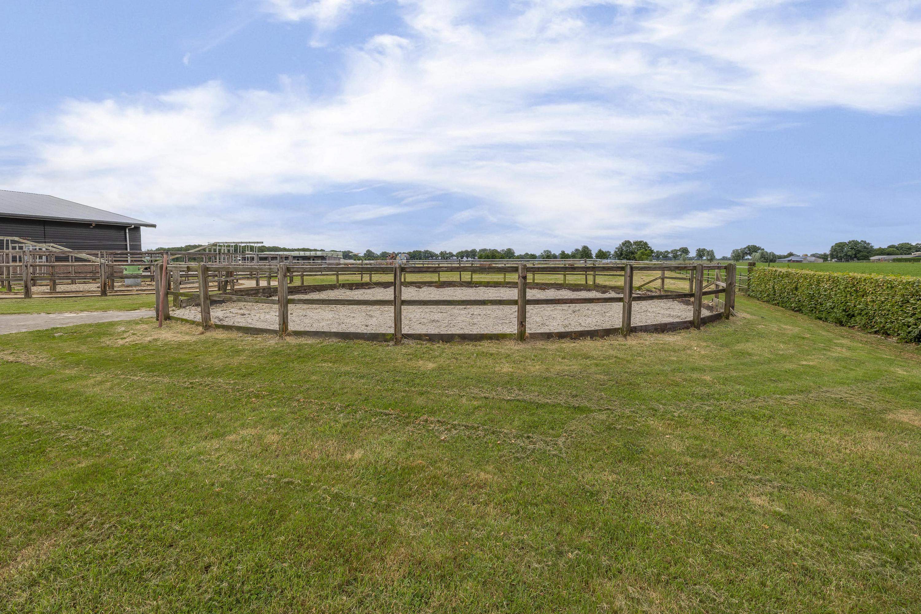 The yard is further equipped with an outdoor arena, a practical horse walker and a lunging circle. In addition, there are 6 outdoor stables, a manure pit and a storage room for straw. The property is further complemented by a spacious pasture divided into various paddocks. These extensive facilities ensure that the property offers plenty of opportunities for the (semi) professional horse lover! The outdoor arena measures approx. 50 m x 25 m and is equipped with an ebb and flow floor and wooden fencing. The lunging circle is fenced with wood and also has an ebb and flow floor. The horse walker is suitable for four horses and is equipped with a concrete floor and wooden fencing. There are 6 outdoor stables on the grounds. These stables are equipped with partly plastic/partly galvanised front walls with a sliding door. The roof is covered with sheet piling. The manure pit is recessed and equipped with a concrete floor and walls. Manure is removed via the manure chain. Access via the ramp. The pasture is divided into paddocks, which are fenced with wooden posts and tape. There is a central path so that you can easily reach the different paddocks.