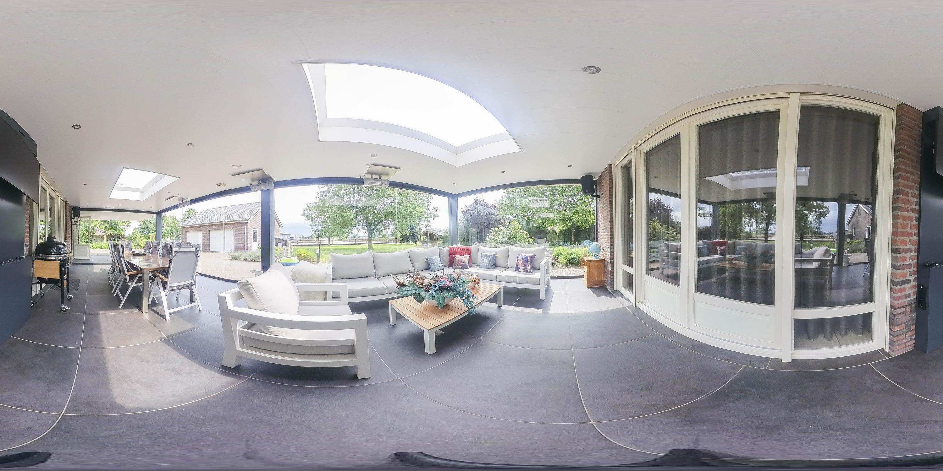 The garden has a spacious covered terrace with sliding glass walls, so you can enjoy the outdoors all year round. From the terrace, you have a beautiful view of the garden and even the outdoor track. There is also a garden shed, a large lawn and various mature trees and shrubs. For extra convenience, the garden has a sprinkler system.