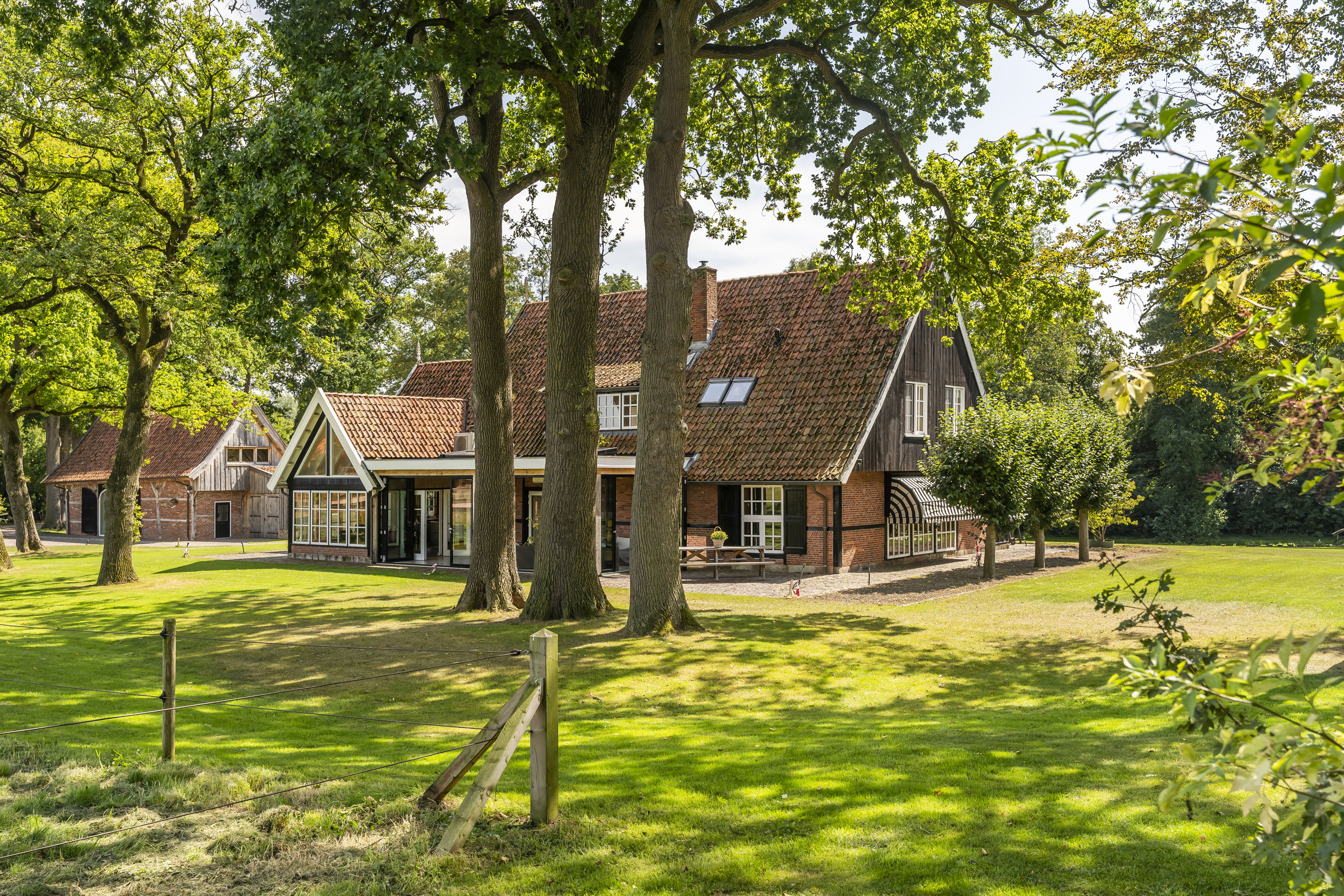 Enkele jaren geleden is een nieuwe multifunctionele schuur op het erf verrezen. Opgetrokken uit eikenhouten gebinten en wanden, sluit dit bouwwerk qua uiterlijk naadloos aan op het klassieke Twentse landschap en verbergt het de luxe en moderne voorzieningen die aanwezig zijn. Het gebouw is geheel onderkelderd en voorzien van een verwarmde hellingbaan, waardoor het geschikt is om werktuigen, groot of klein binnen te stallen. Bovendien is het volledig geïsoleerd zodat het dienst kan doen als atelier, stalling van oldtimers of andere ruimtevragende activiteiten. Maar ook een kantoor of stijlvolle herenkamer behoort tot de mogelijkheden.